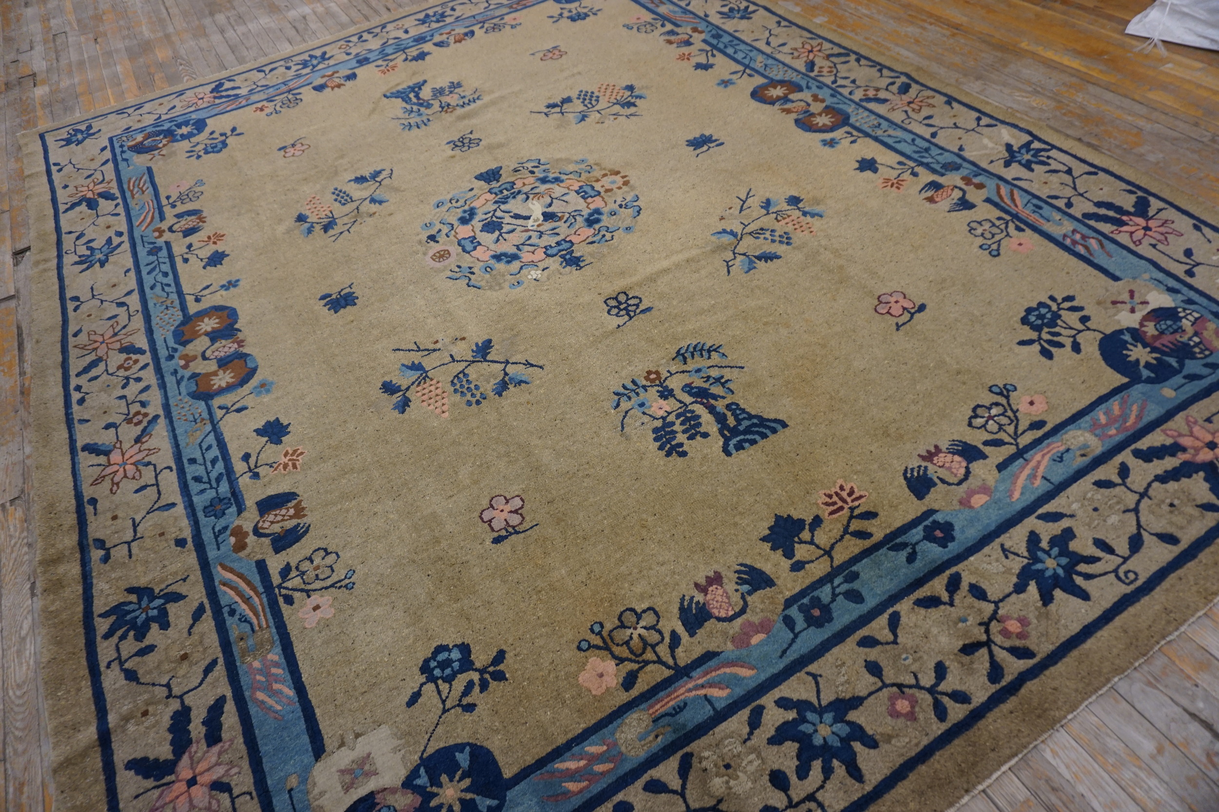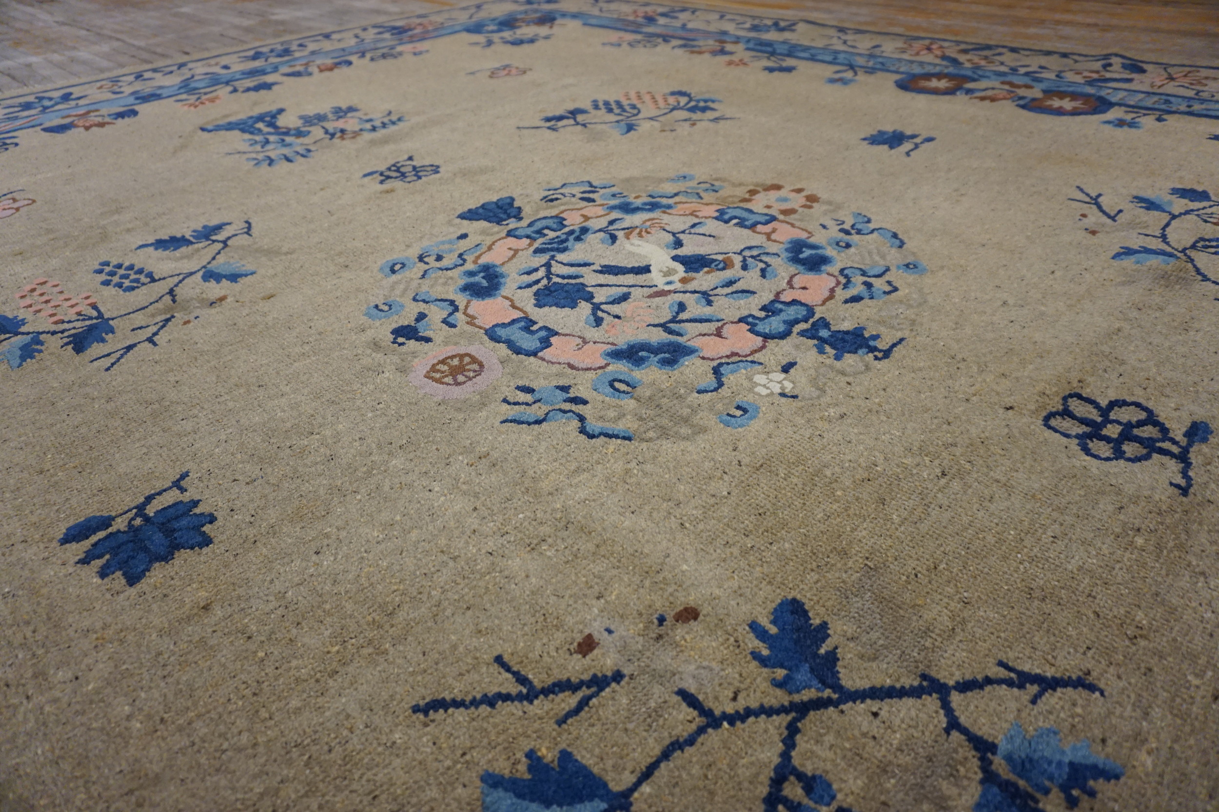 Antique Chinese Chinese – Peking Ivory 1920s Rug, Circa Date: 1920s. This exquisite Peking carpet, originating from the dynamic 1920s, showcases the refined aesthetic typical of the period. The expansive field is dominated by a warm, subdued tone, making this a quintessential example defined by its ivory and beige palette. The subtle shift in hue across the wool pile provides exceptional depth and texture.