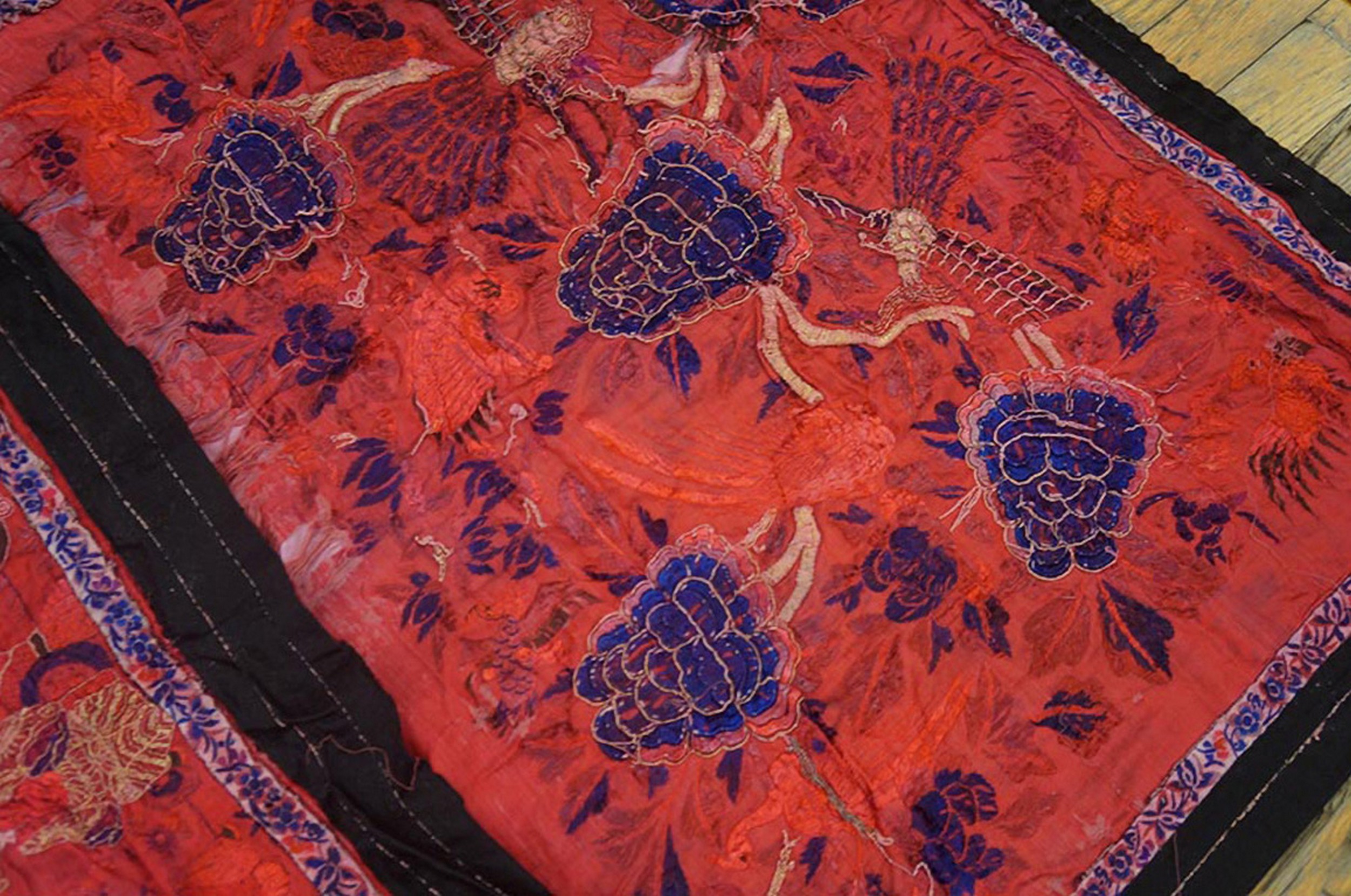 Antique Textile Chinese Floral Red 1890s Rug, Circa Date: 1890s. This exquisite piece is not a traditional pile carpet but a finely embroidered textile panel, representing a rare subset of antique rugs that prioritize silk work and needlecraft over knotting. Its construction speaks to the sophisticated textile traditions of late 19th-century China.