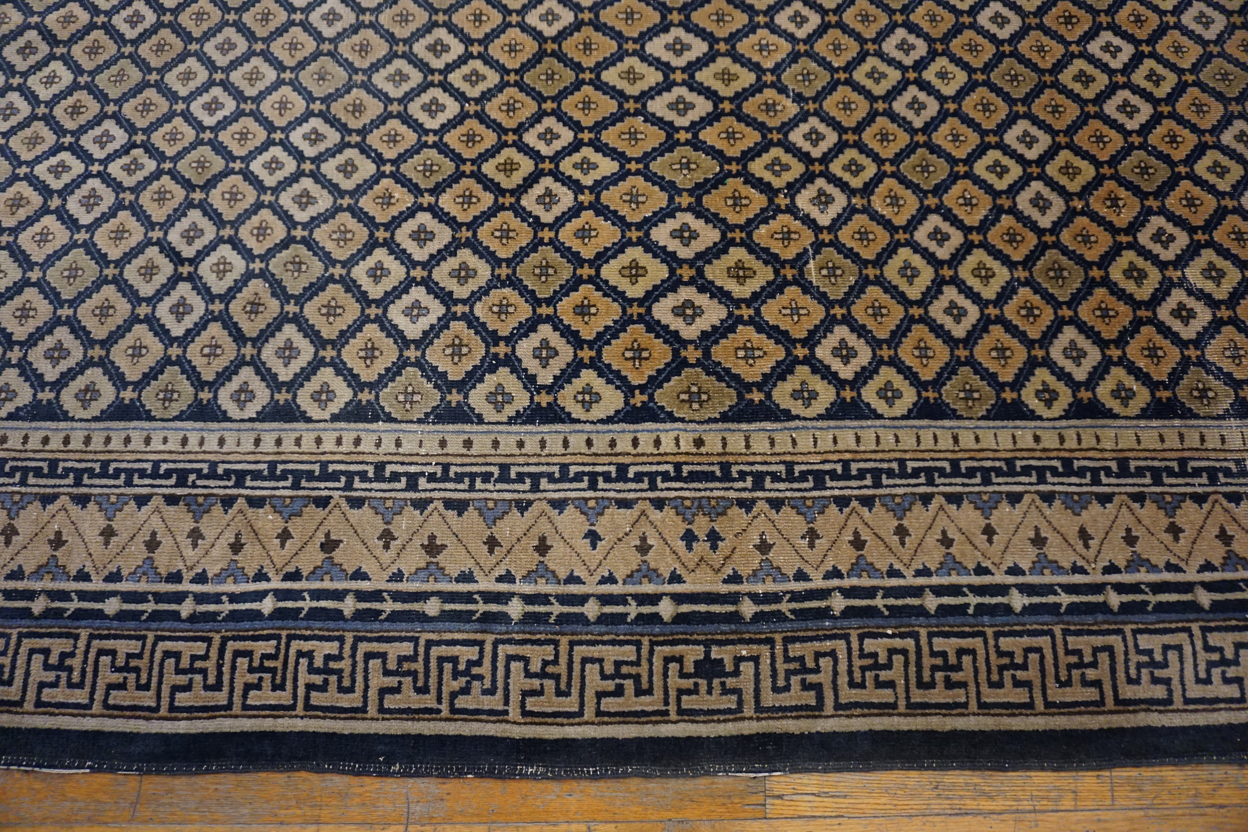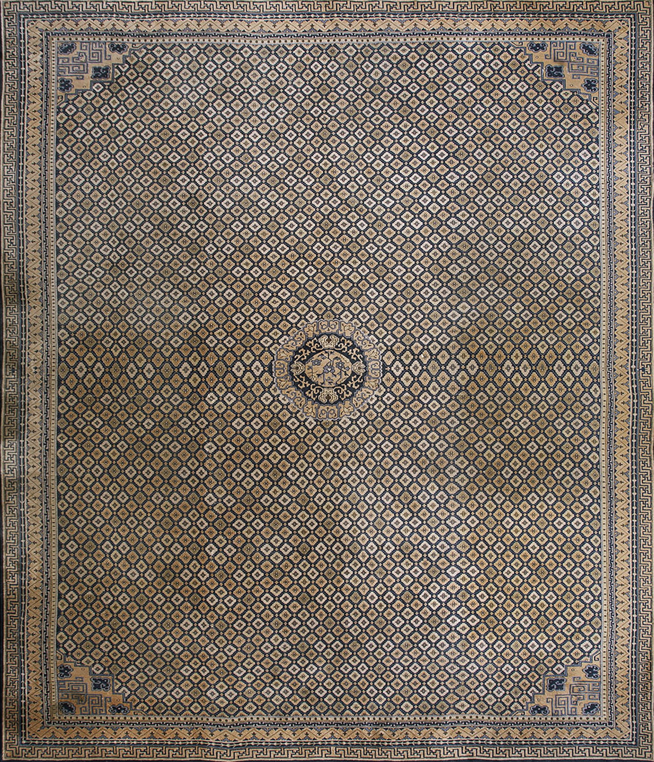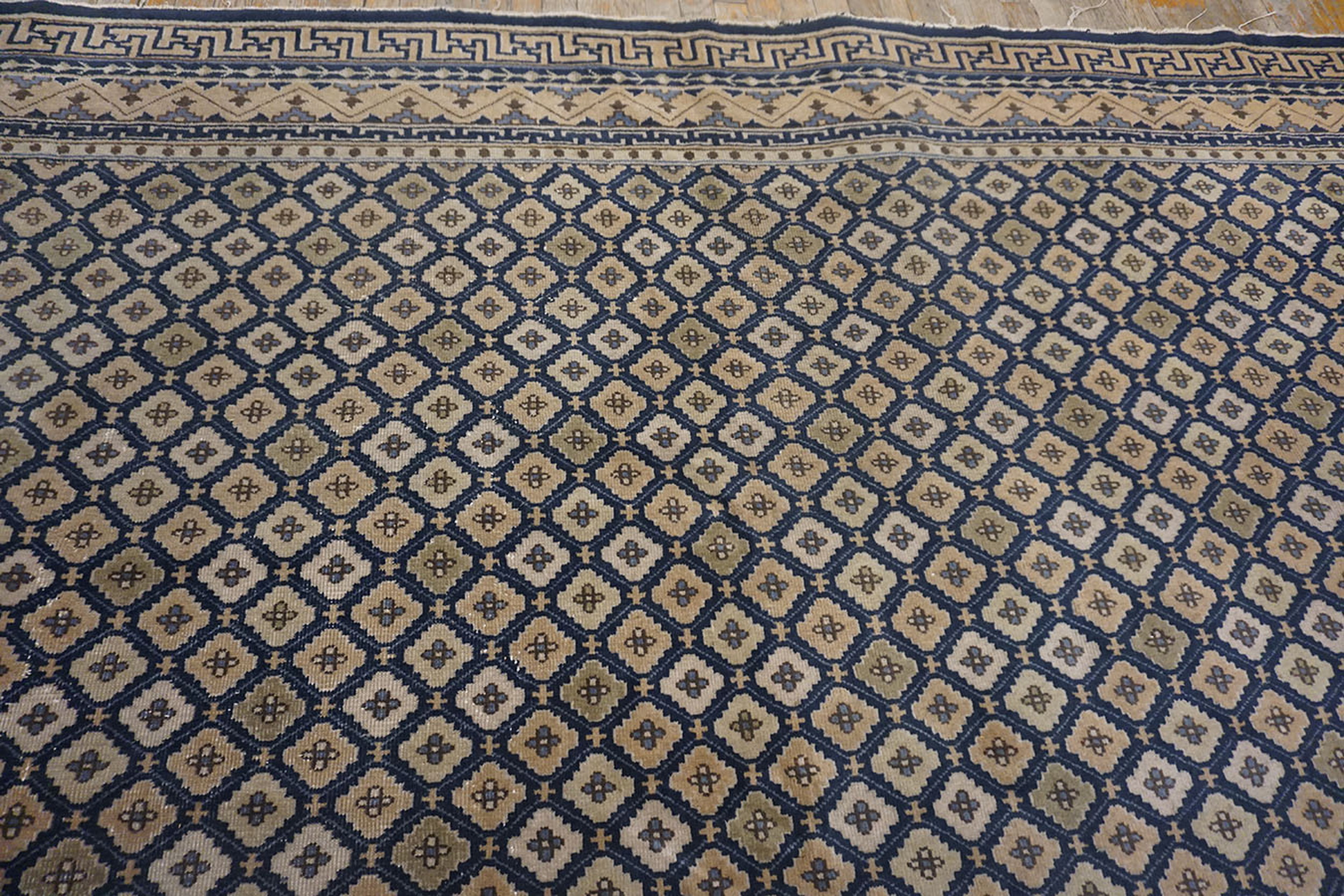 Rectangle Wool Allover Geometric Hand Knotted Pile 1920s Large Antique Blue Rug