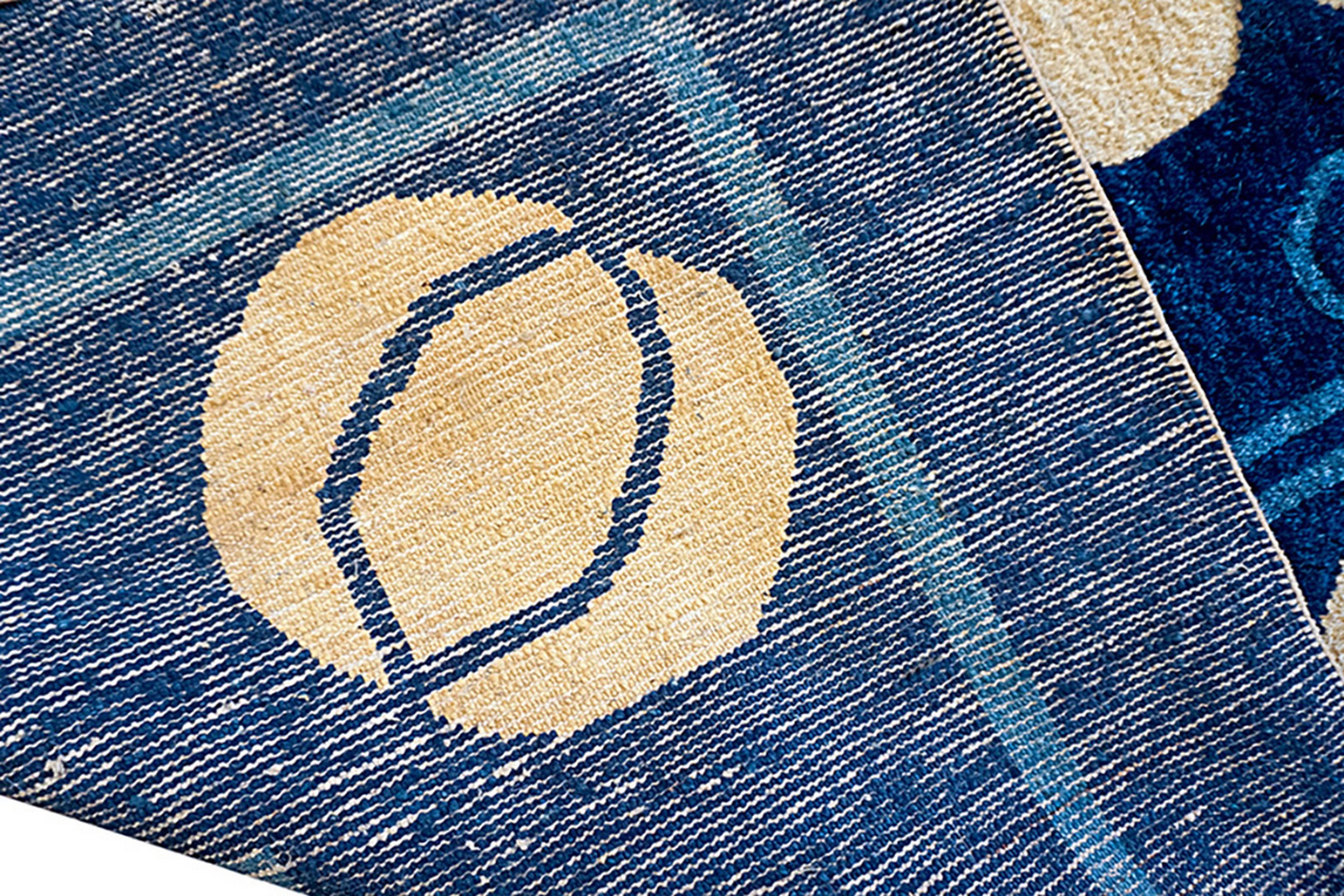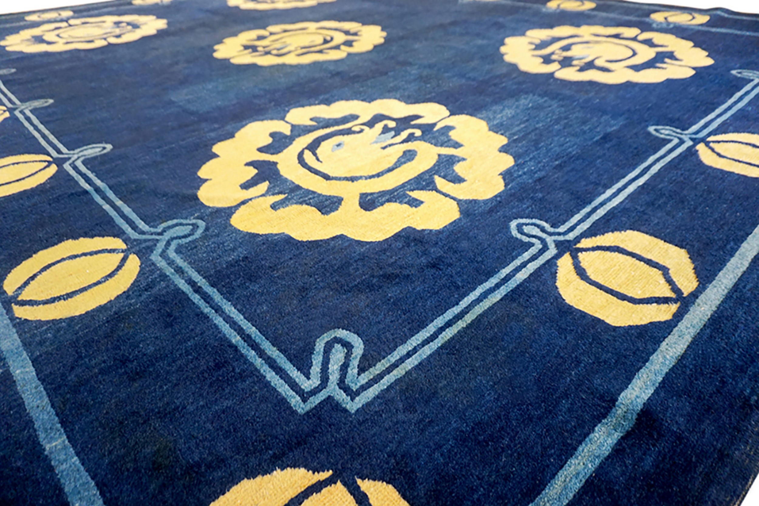 Woven to function as a substantial room size rugs, this piece offers significant coverage suitable for a formal dining area or large living space. It is a superb example of the transitionary period in Chinese weaving, appealing equally to collectors and enthusiasts of early modern design.