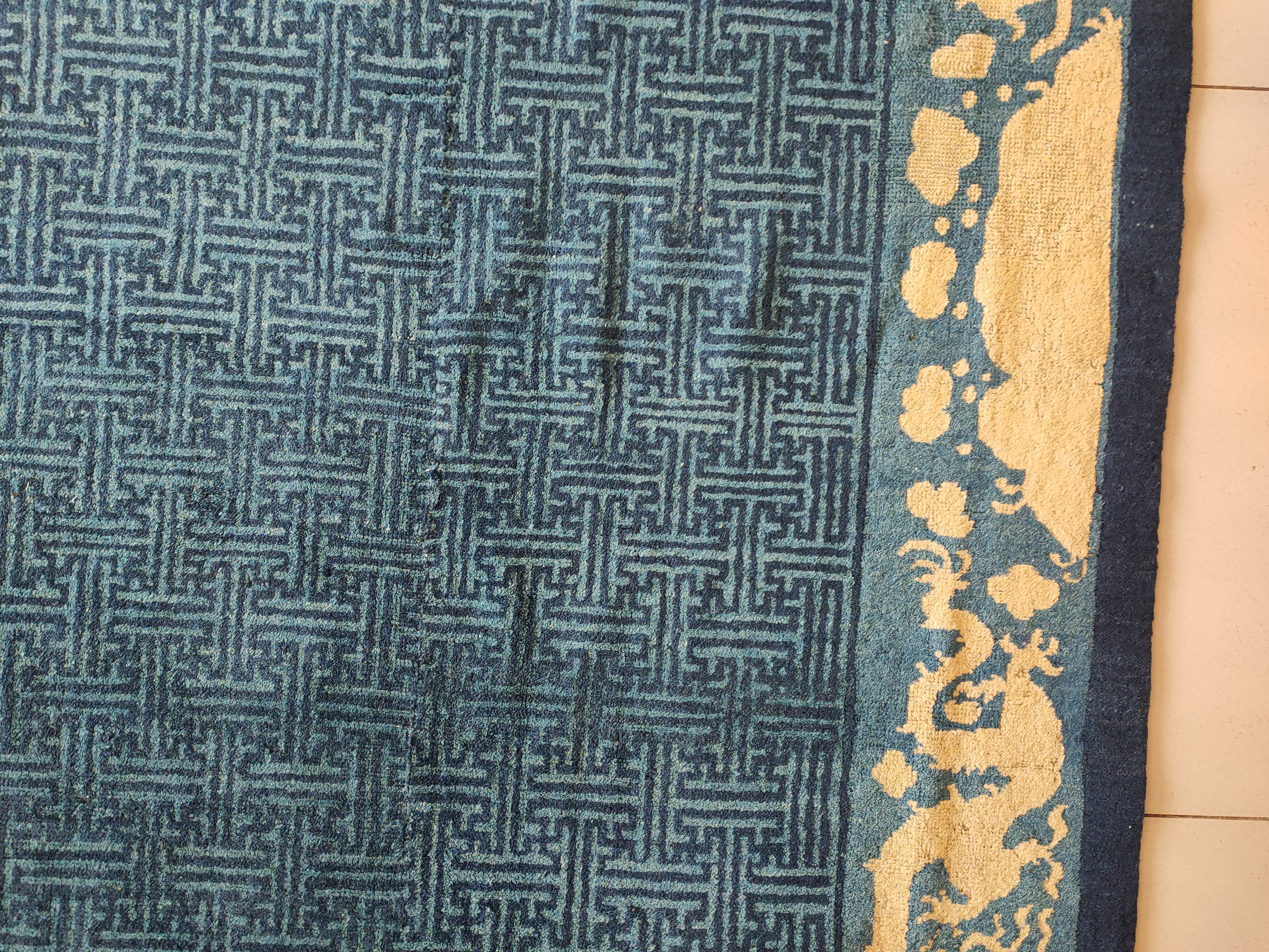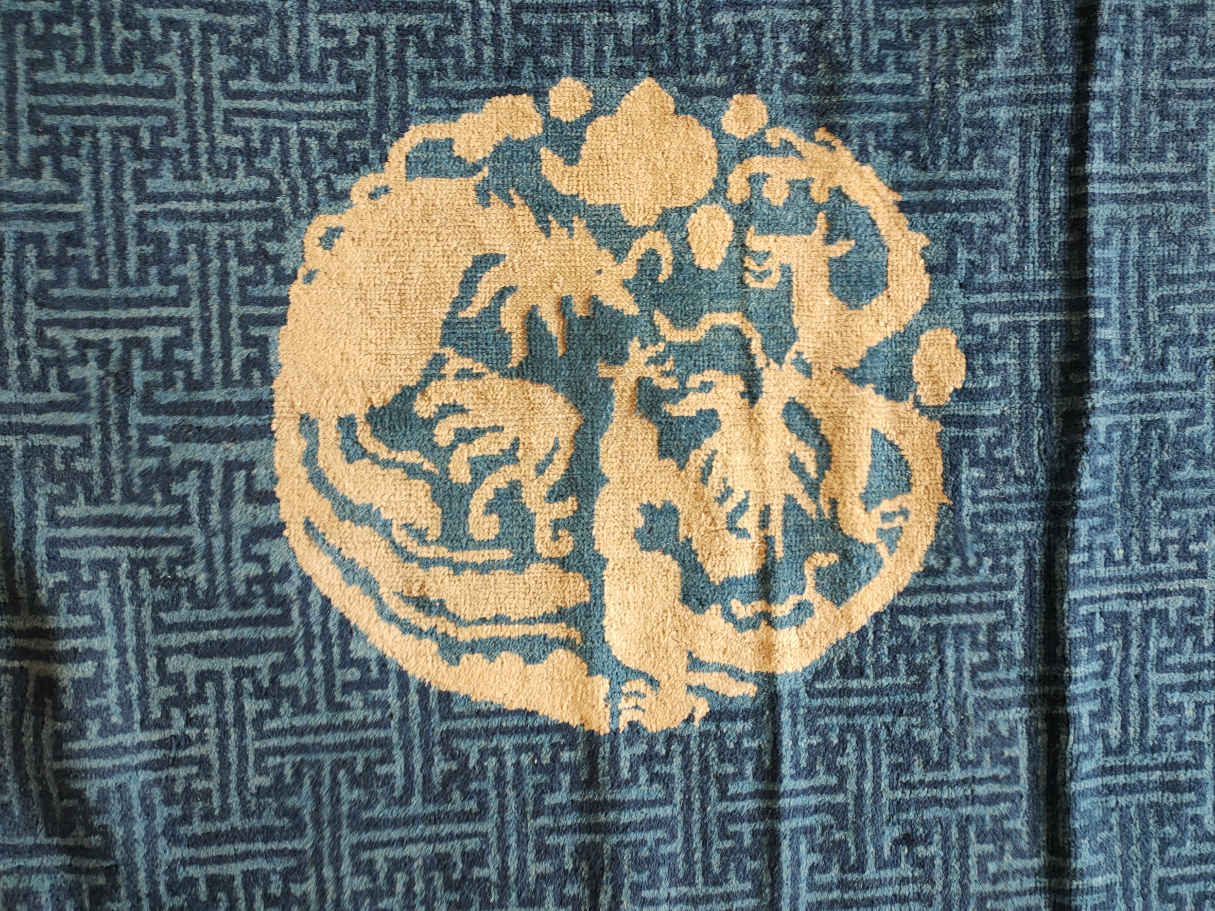 Woven entirely of high-quality wool, this textile represents the pinnacle of late 19th-century Chinese court weaving. Its remarkable preservation and deeply symbolic iconography make it a highly sought-after addition to any collection of important antique rugs, embodying both historical significance and timeless aesthetic appeal.