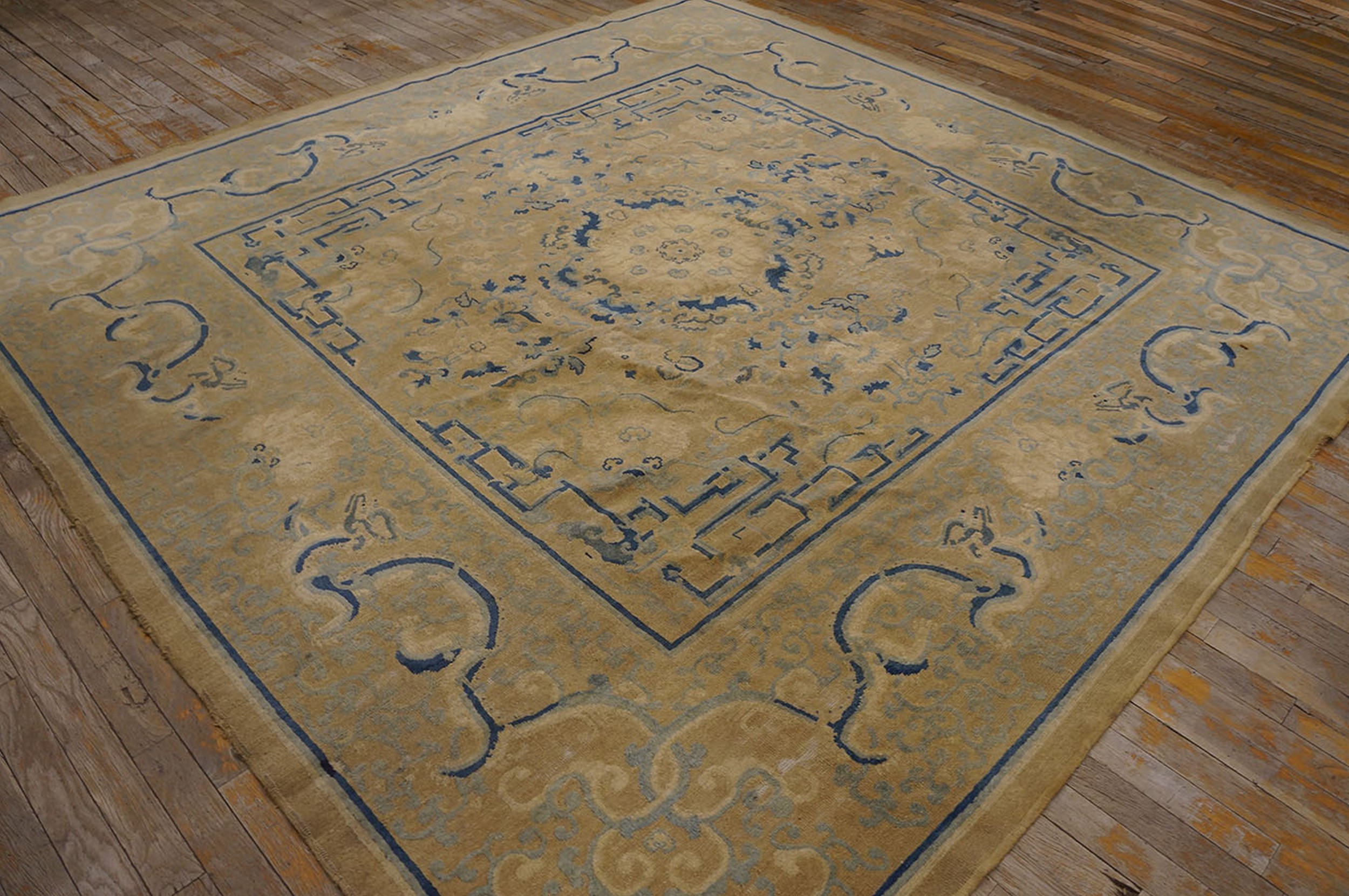Antique Chinese – Peking Chinese Medallion Ivory 1880s Rug, Circa Date: 1880s. This exceptional example of a late 19th-century Peking weaving showcases the refined taste characteristic of the period. The composition is defined by a striking central medallion and precise geometric borders, placing it among the most desirable antique rugs available today.