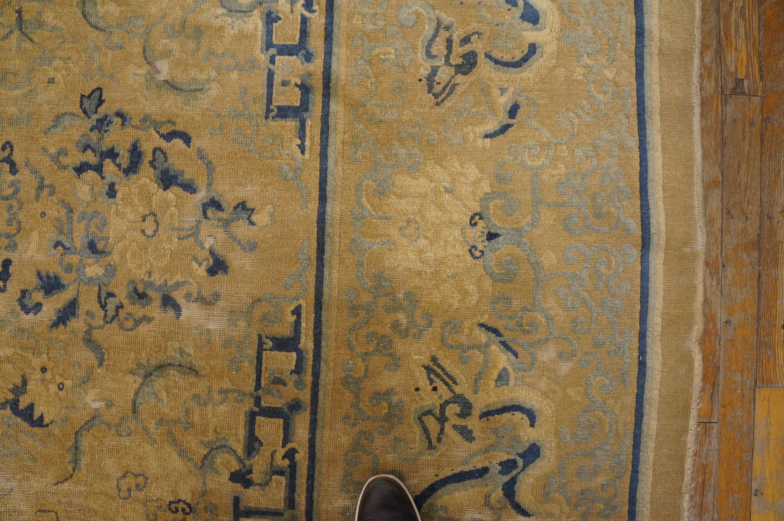 Retaining its remarkable clarity of design after more than a century, this piece is a testament to the quality of late Qing Dynasty craftsmanship. Its substantial dimensions make it an ideal room size rug, capable of anchoring a formal drawing-room or a spacious library with its historical presence and subtle coloration.