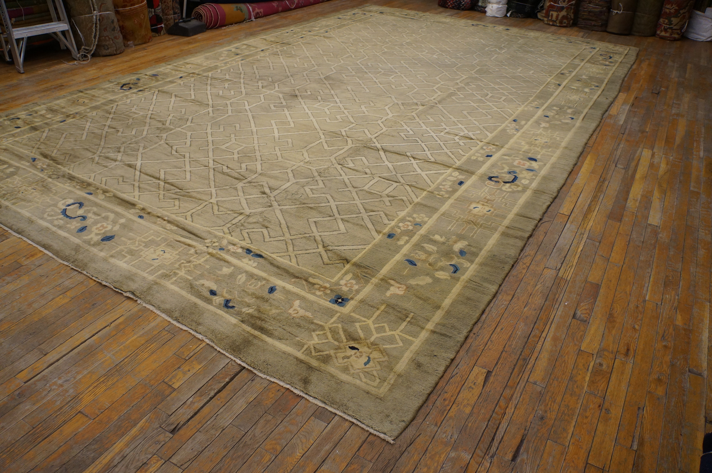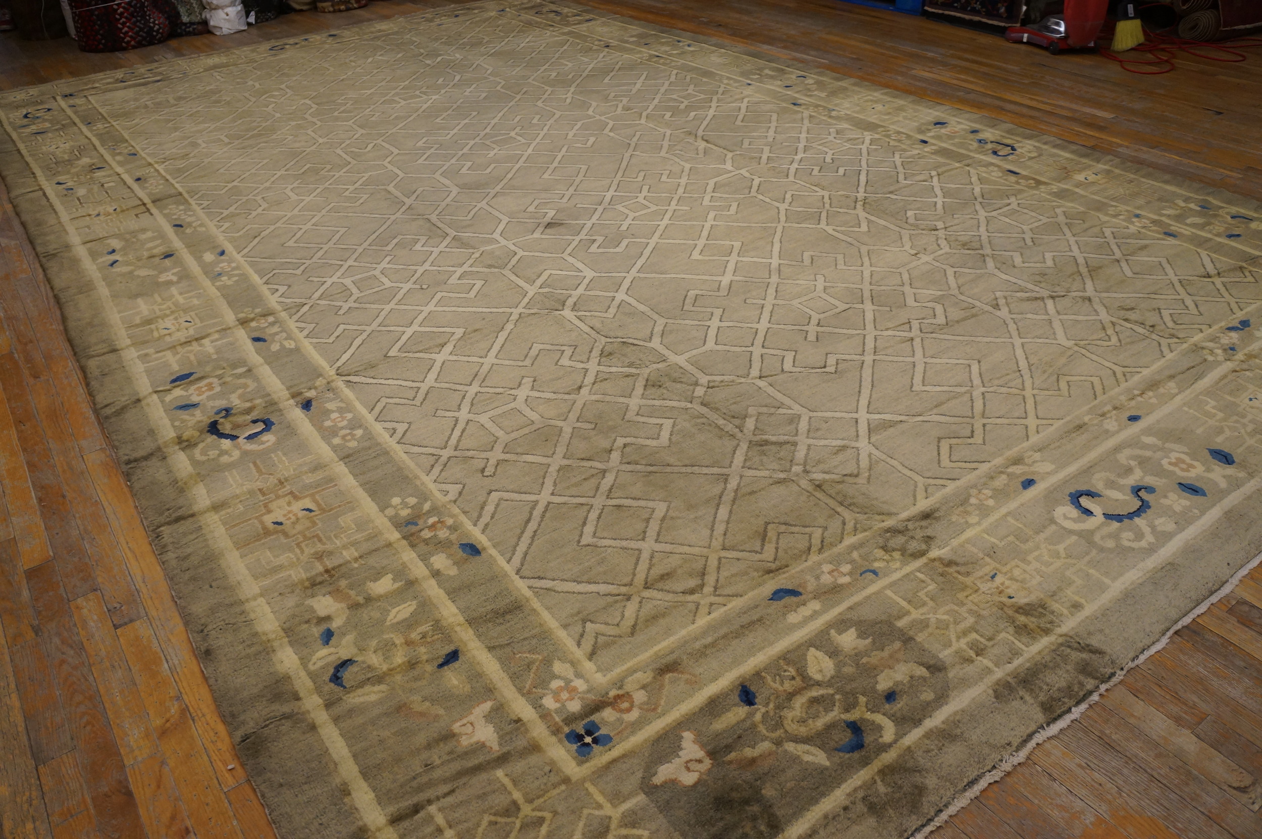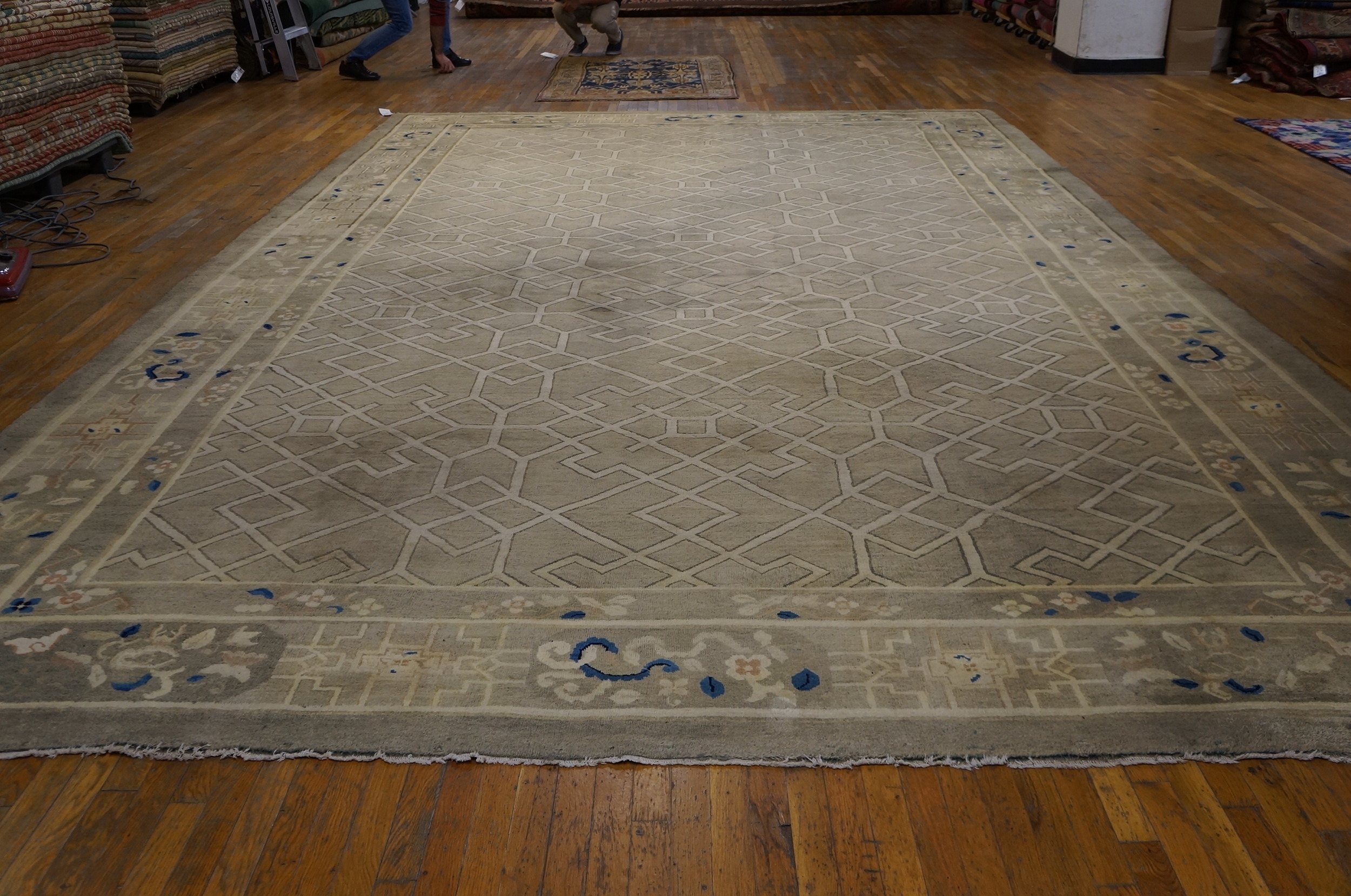 The monumental scale of this piece ensures it commands attention in any grand interior, falling squarely into the category of large oversized big rug. The central field is dominated by a complex, interlocking geometric lattice, creating a subtle yet dynamic allover pattern that draws the eye without overwhelming the composition. This architectural approach to design is highly sought after.