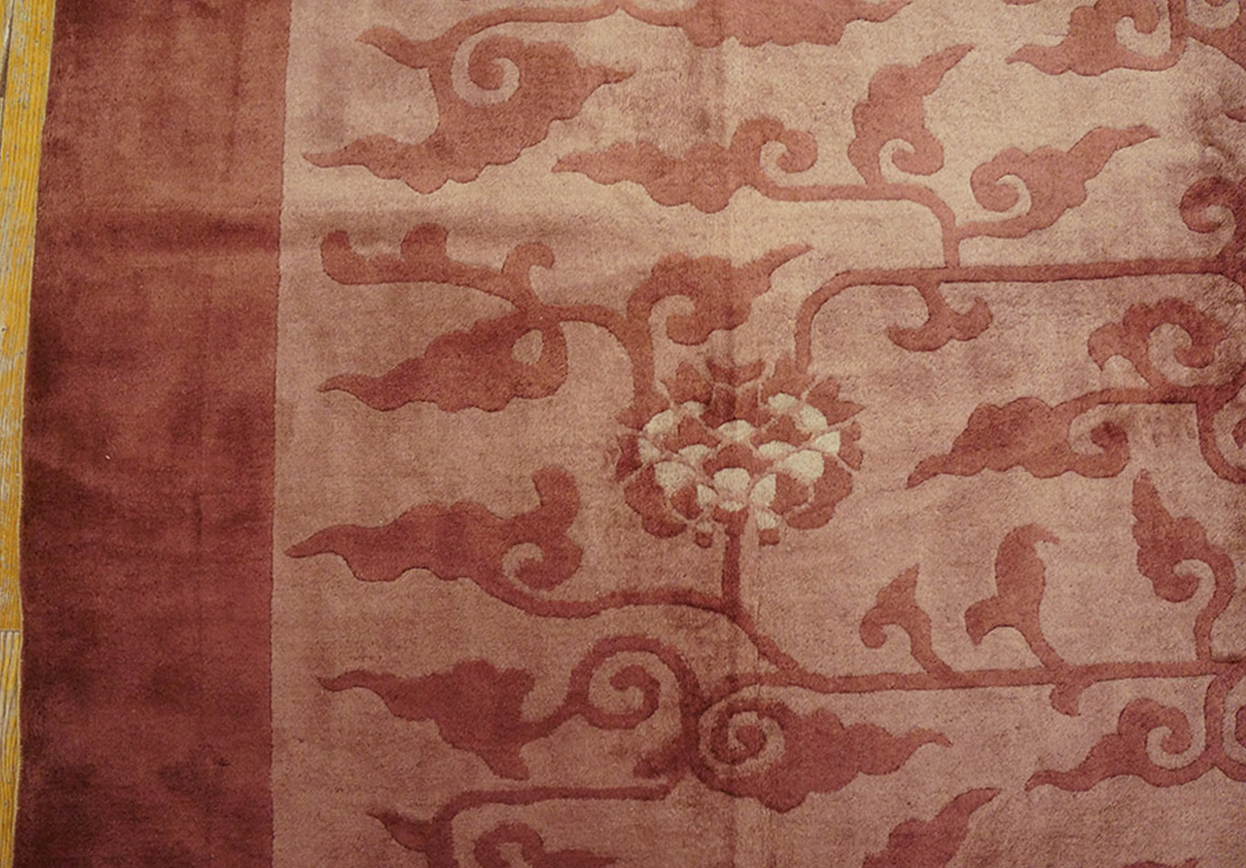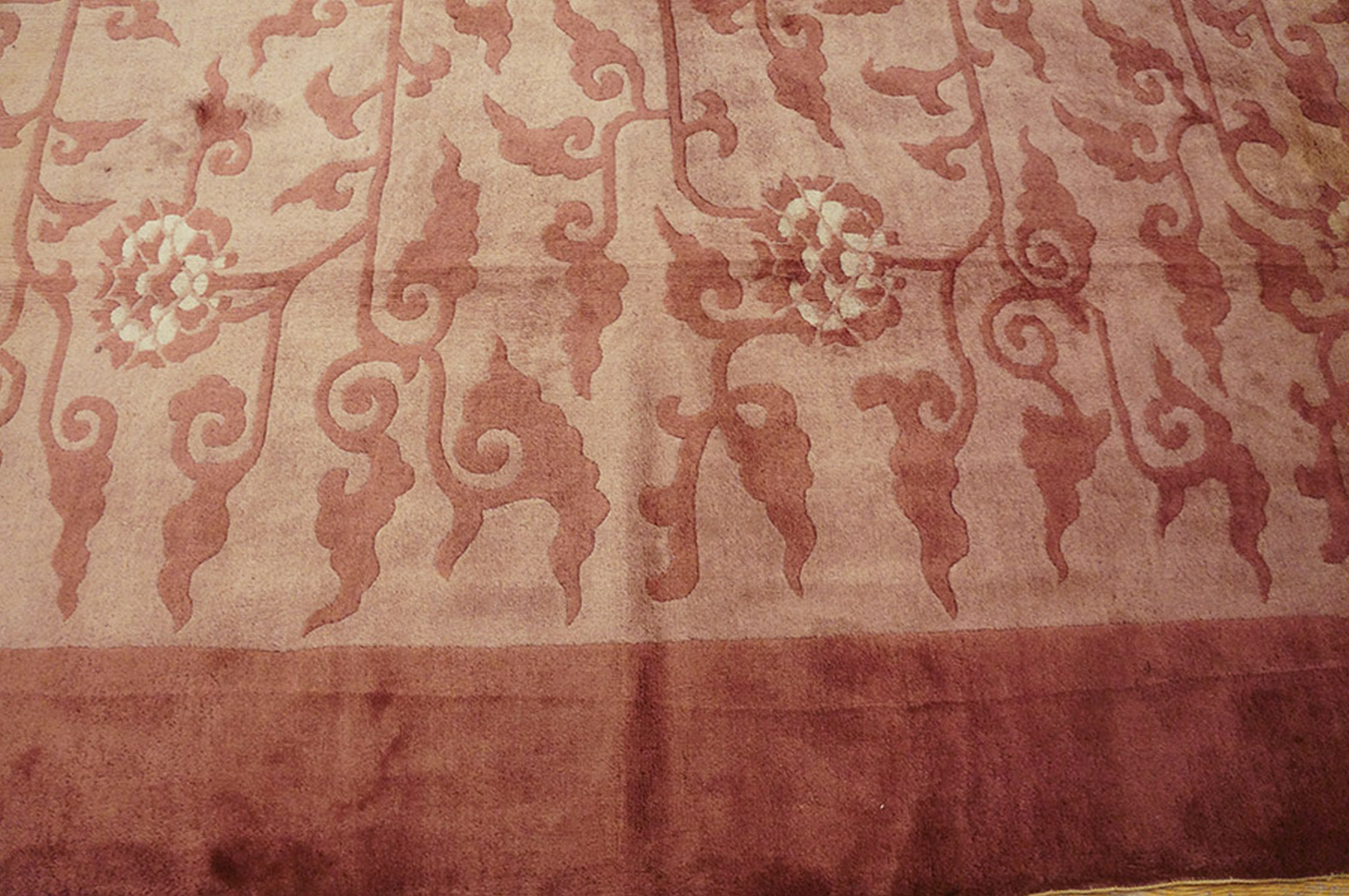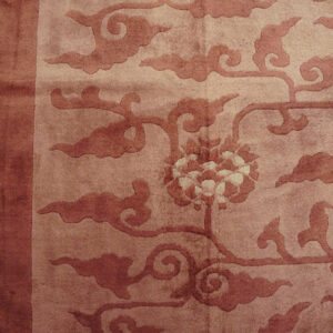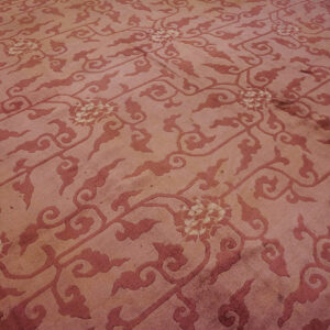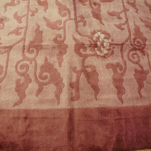 The coloration is particularly noteworthy, utilizing a nuanced palette of faded rose and subtle taupe tones that shift beautifully across the surface. The dominant hue is a sophisticated lavender Mauve color, characteristic of the softer, decorative palettes favored during the early 20th century.