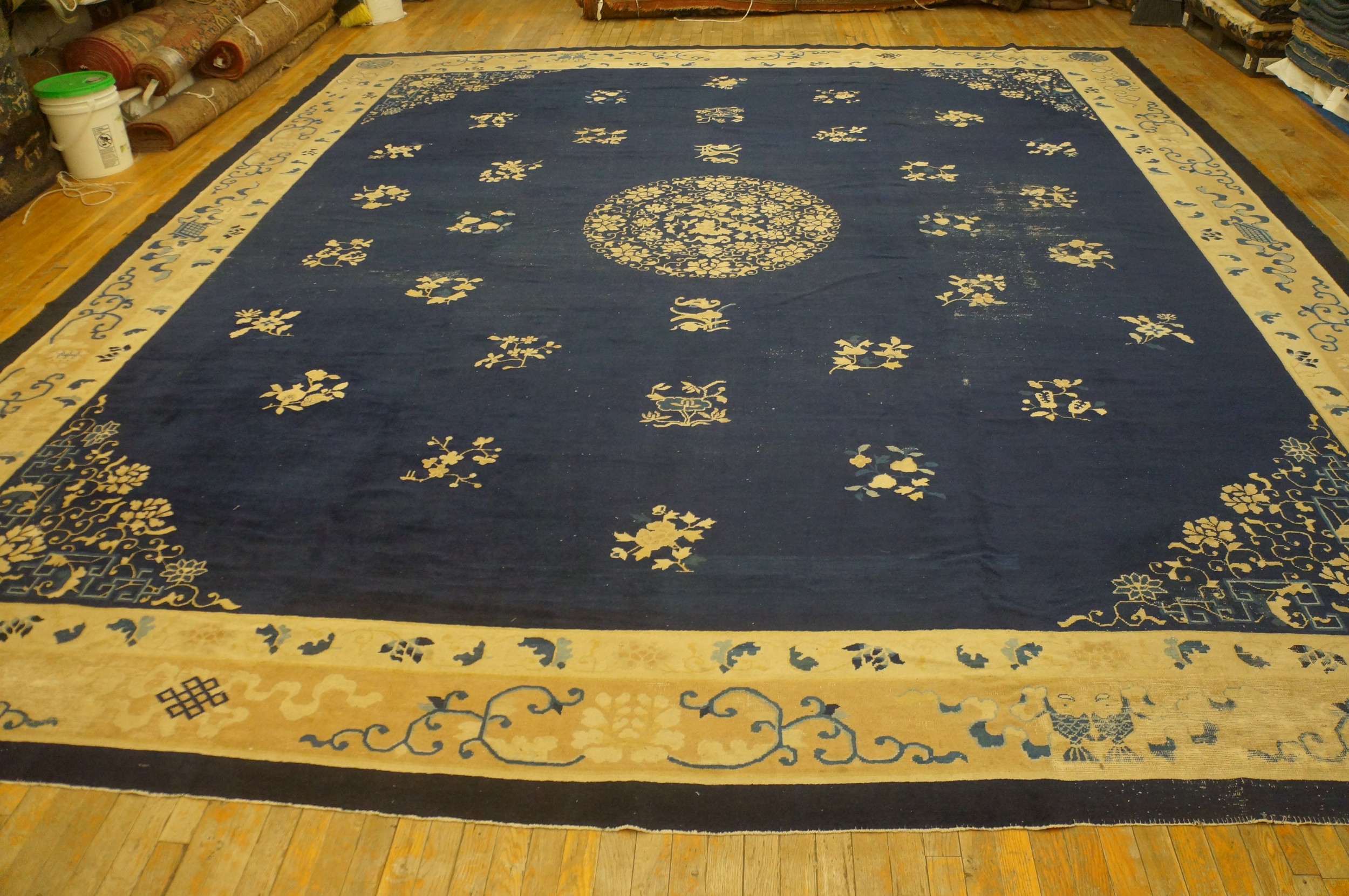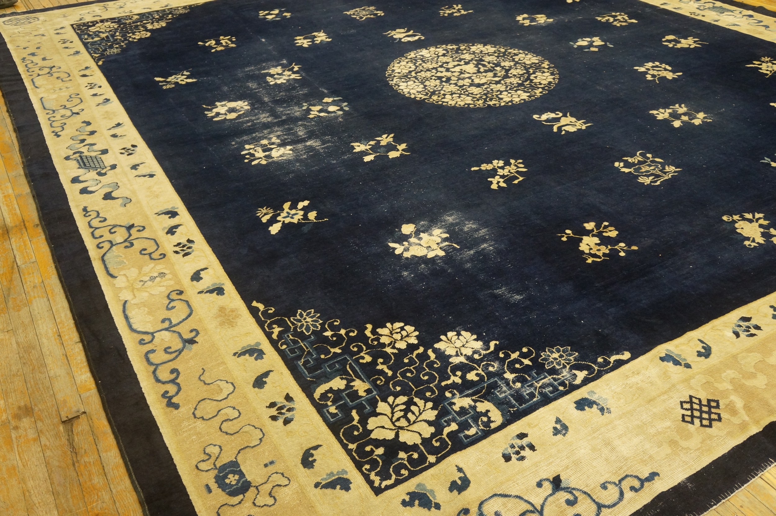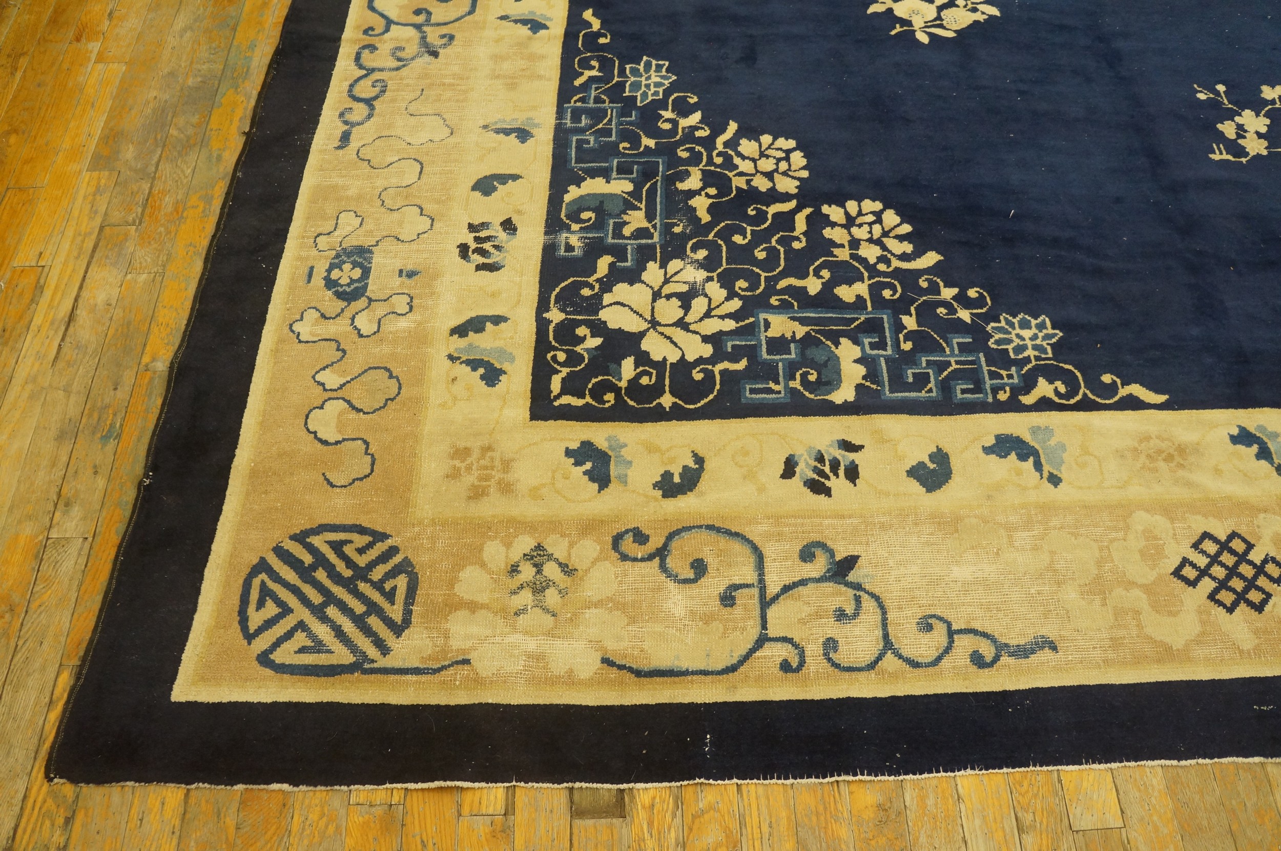 Beyond its artistic merit, the generous dimensions of this weaving ensure its suitability for expansive formal rooms, a hallmark of the grand scale often associated with Peking production. Pieces of this scale and visual impact are rarely preserved in such condition, offering a unique opportunity to acquire a truly large oversized big rug capable of defining a major space.