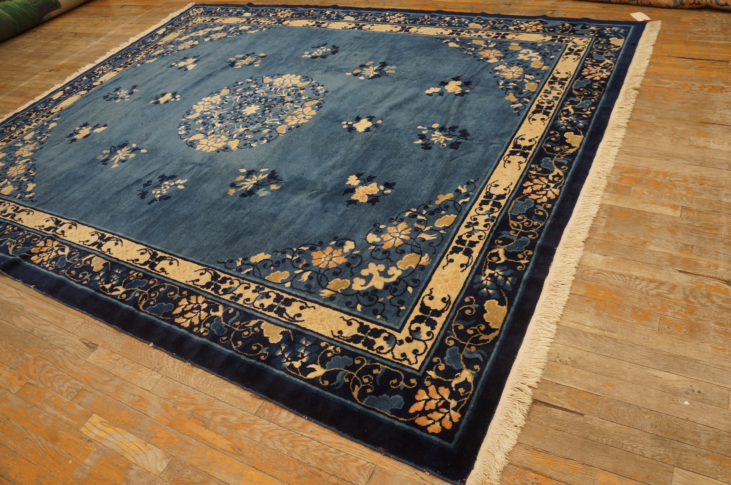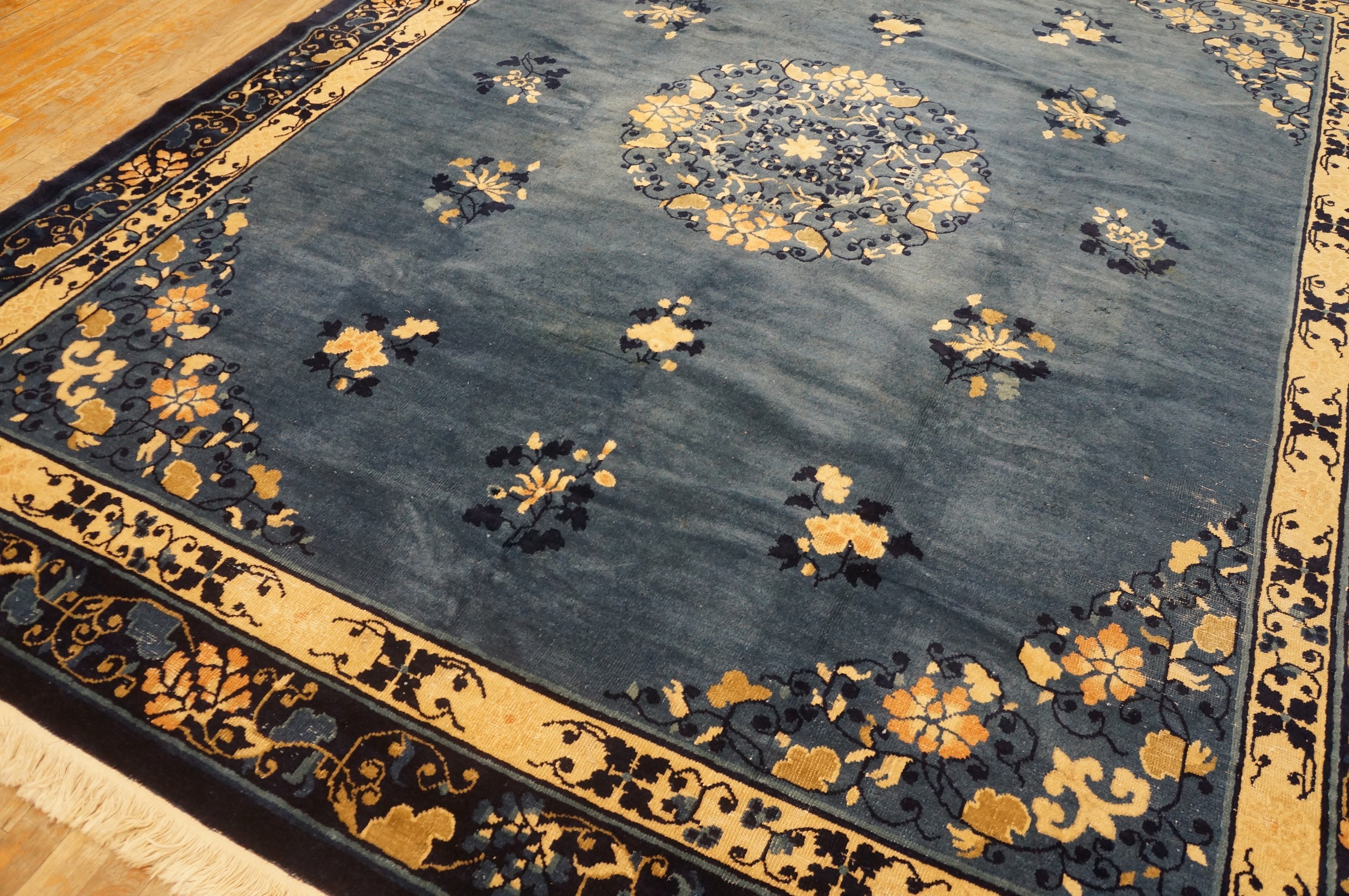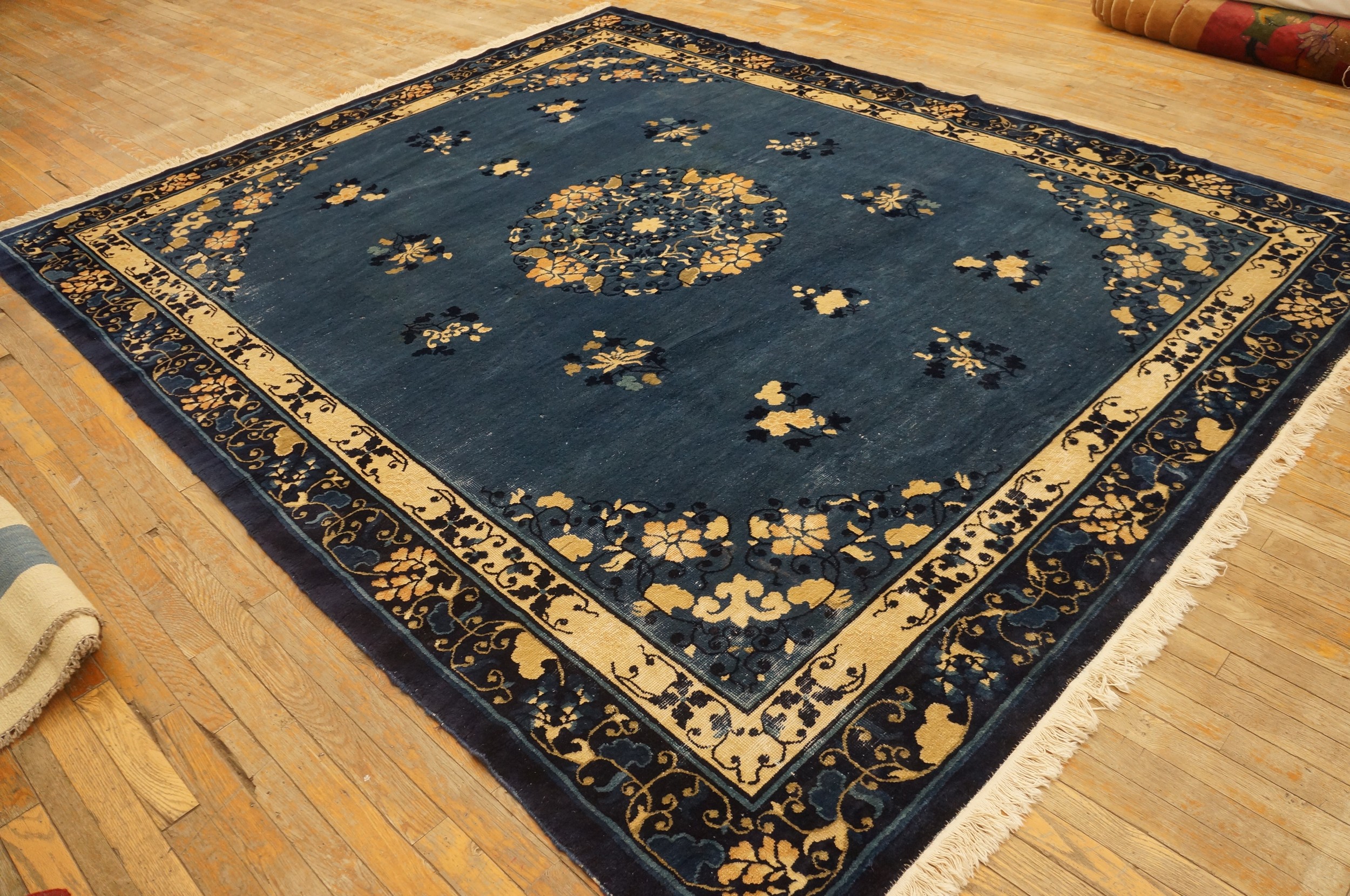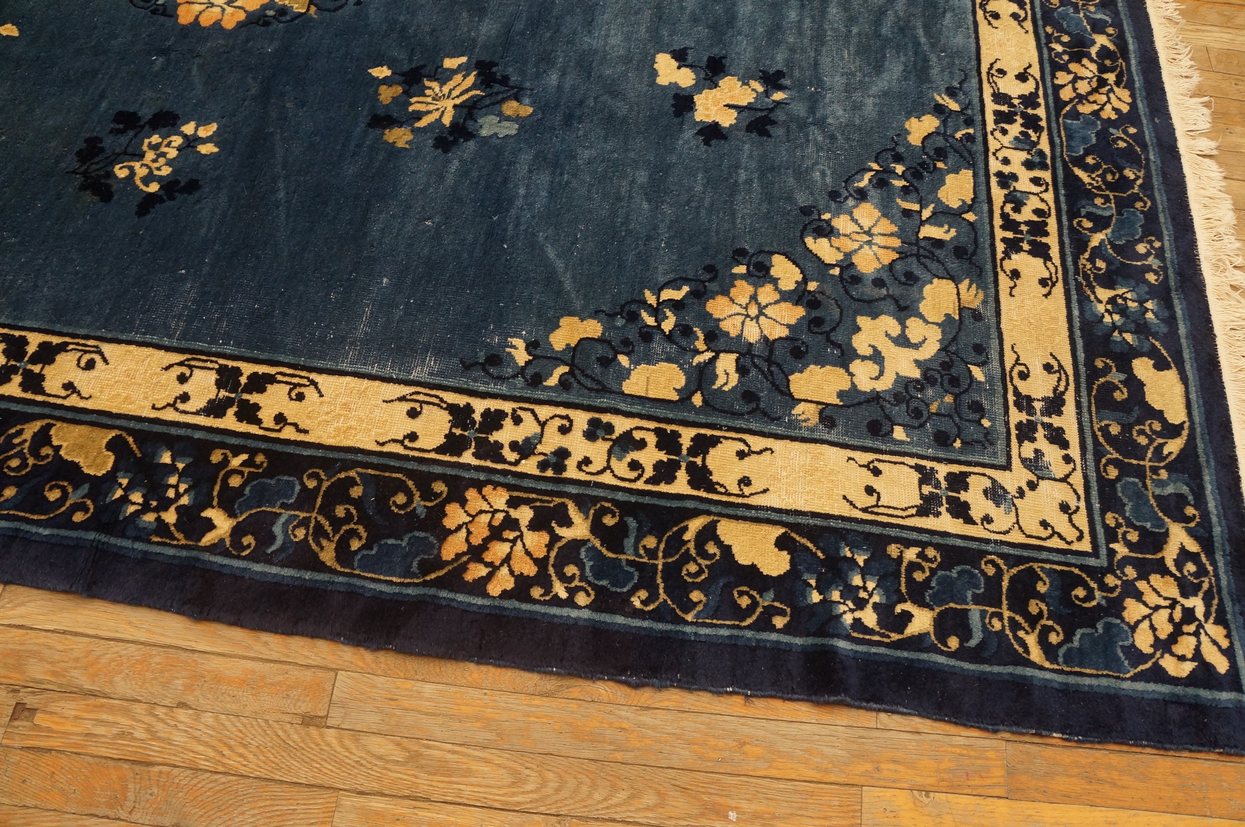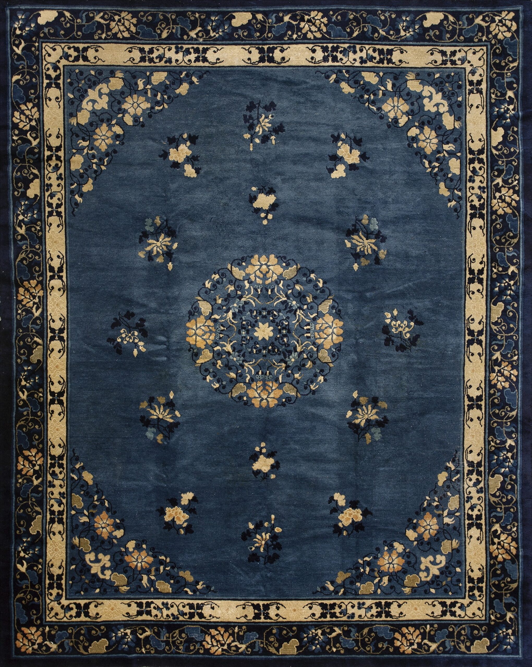 Wool Hand Knotted Pile Blue Rectangle 1920s Antique Rug, Circa Date: 1920s. This exquisite hand-knotted piece exemplifies the restrained elegance of early 20th-century Chinese weaving. The field is dominated by a rich, saturated indigo, making it a superb example among blue color rugs of the era.