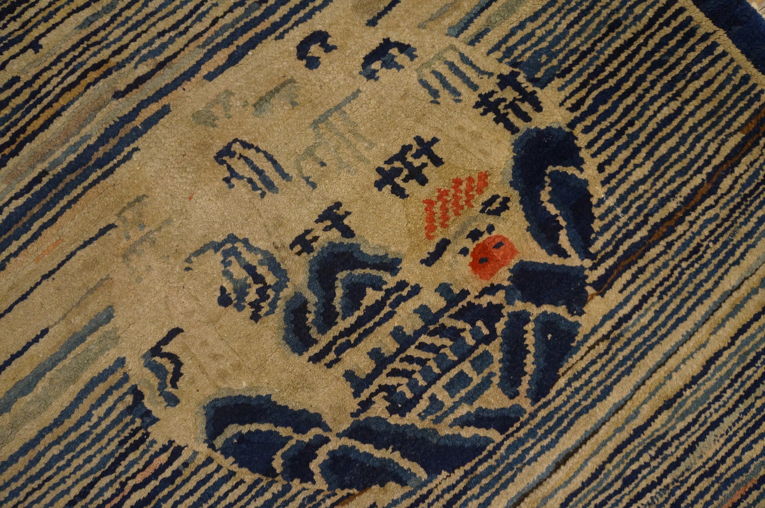 Dating to the 1900s, this Peking rug serves as a testament to the period’s willingness to blend ancient Chinese iconography with emerging Western Art Deco sensibilities. Its unique visual rhythm and high-quality wool construction ensure it remains a striking, enduring decorative element suitable for both traditional and contemporary interiors.