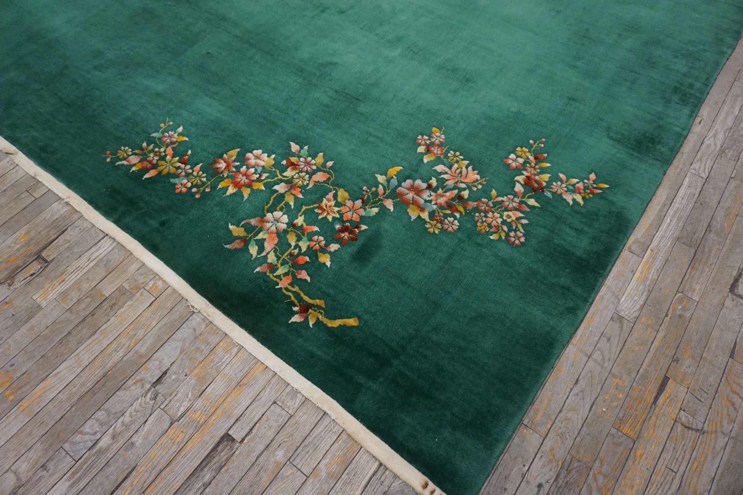 Antique Chinese Room Size Knotted Wool 1930s Rectangle – Art Deco Rug, Country of Origin: China, Circa Date: 1930s. This exceptional piece represents the pinnacle of early 20th-century design, offering a striking blend of traditional Eastern craftsmanship and Western aesthetic sensibilities. It is a superb example within our collection of antique rugs, showcasing the unique artistic evolution of Chinese rugs during this transitional period.