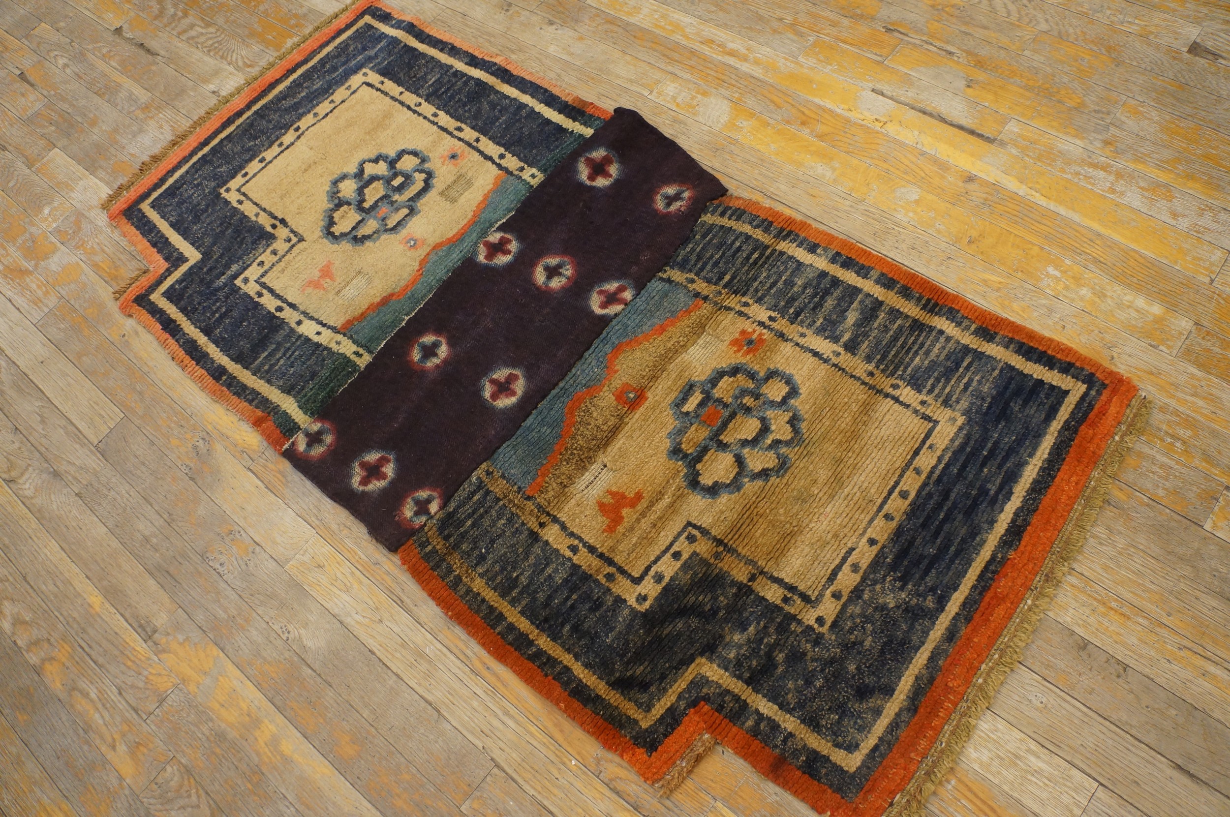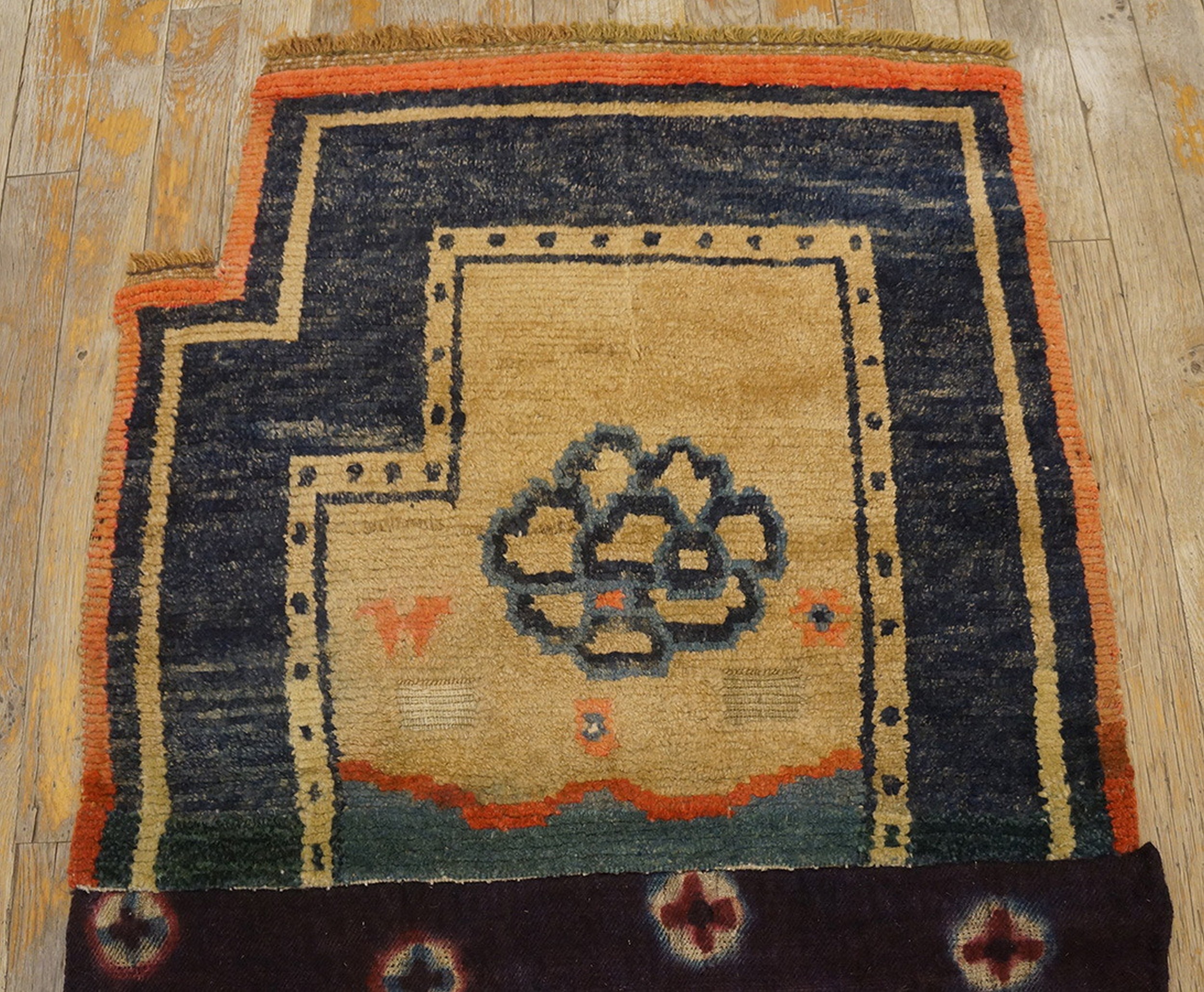 Antique Chinese Small Saddle Rug Horse Cover Wool Blue Navy, Ivory Carpet, Circa Date: 1920s. This compelling textile exemplifies the transitional design period of early 20th-century China. Its unusual dimensions classify it as a small scatter size, perfect for adding a concentrated burst of color and history to a hallway or intimate space.
