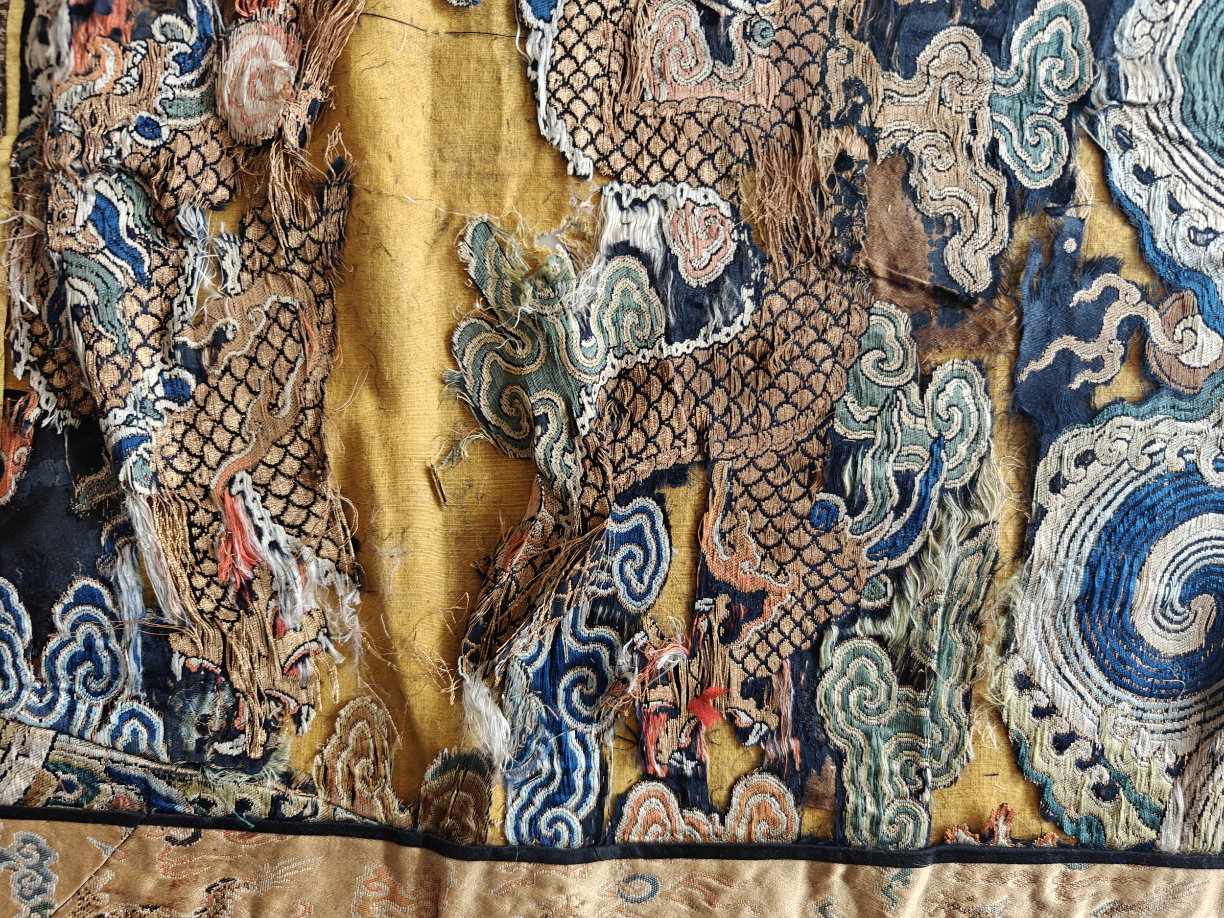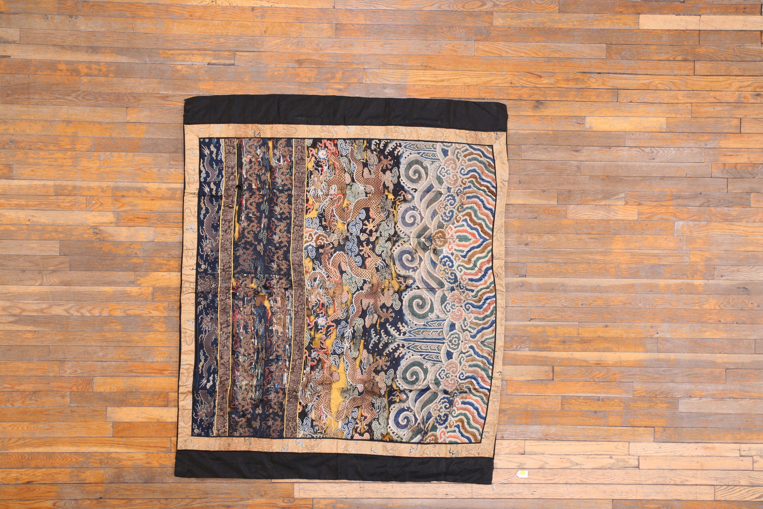 Antique Chinese – Textile Chinese Blue 1800s Rug, Circa Date: 1800s. This exceptional textile piece, originating from the Qing Dynasty, transcends the typical definition of a floor covering, presenting instead a magnificent example of 19th-century court artistry. Its intricate needlework and profound symbolic motifs place it among the most desirable antique rugs available today, offering a tangible connection to imperial history and traditional craftsmanship.