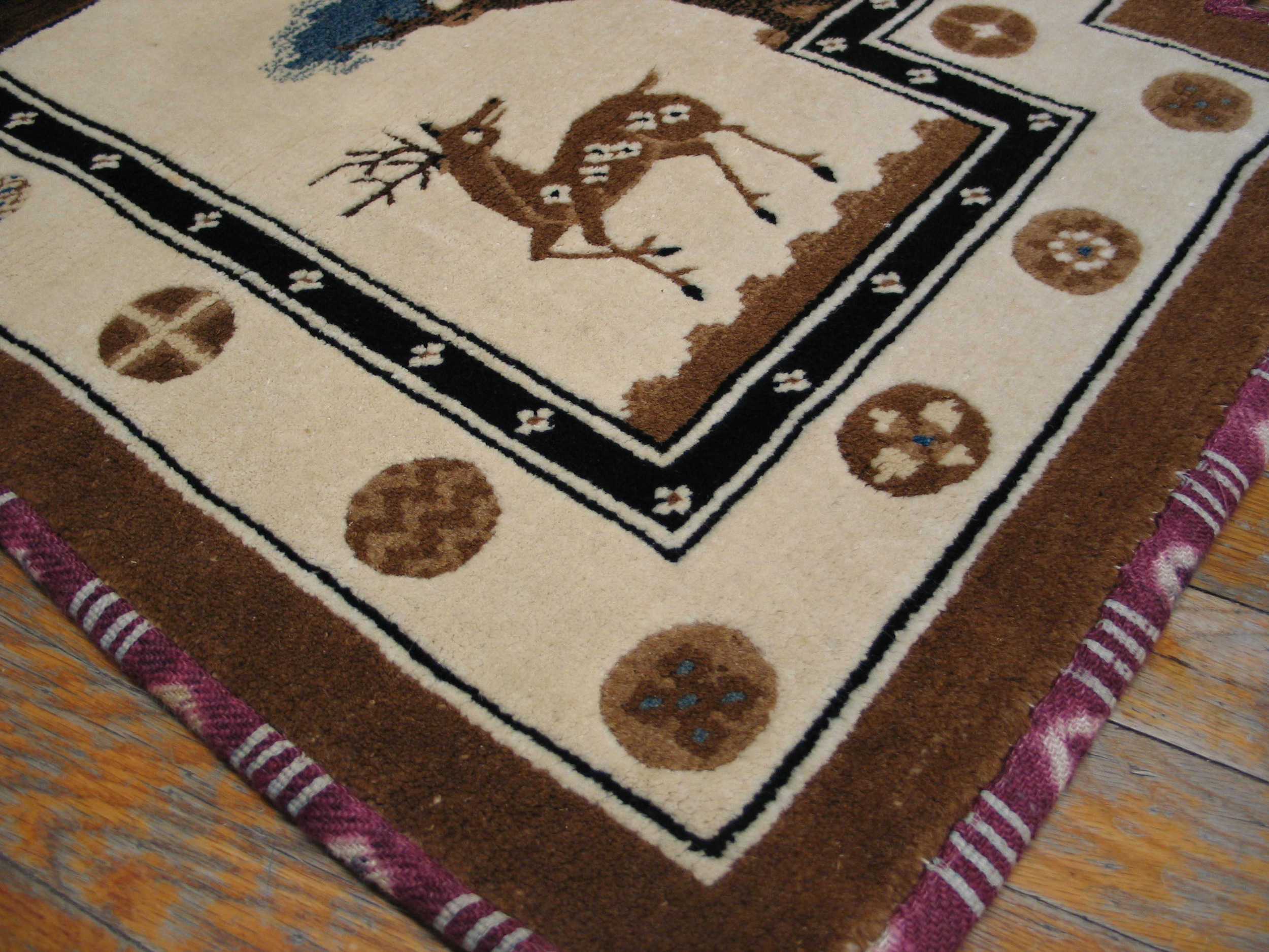 Hand-knotted with meticulous precision, this piece represents a sophisticated departure from traditional court designs, reflecting the influence of export tastes during the Republican period. It remains a rare and highly desirable example among discerning collectors of antique rugs.