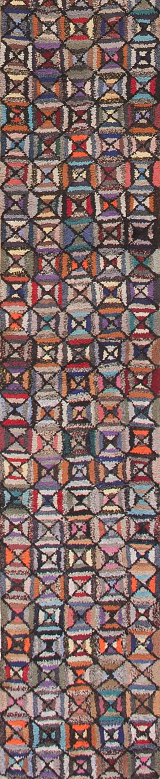 Antique Oversized American Hooked Rug American Geometric Hooked, Country of Origin: American USA Rugs, Circa Date: 1930s. This exceptional piece exemplifies the robust, folk-art tradition of American USA Rugs craftsmanship, utilizing the distinctive hooked technique that was popular during the early 20th century.