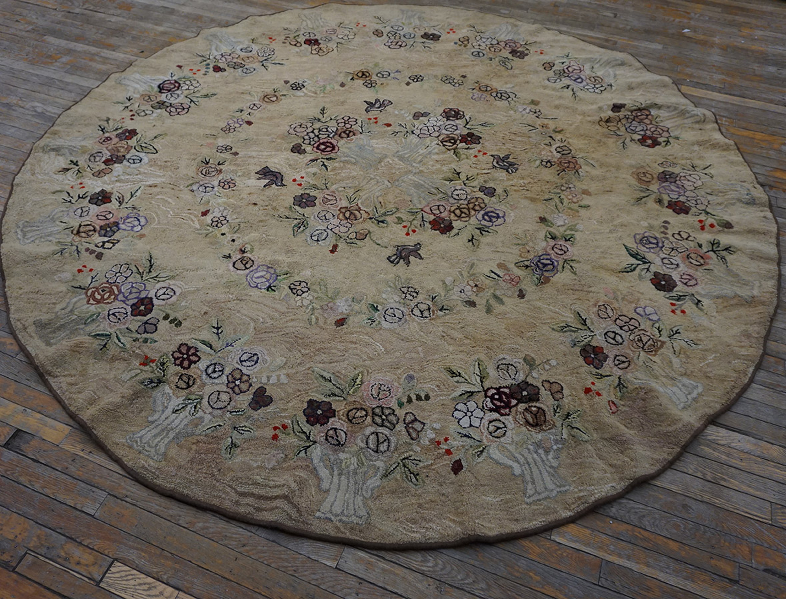 Its unusual circular dimension and generous scale make it a commanding focal point, capable of defining a seating area or anchoring a grand foyer. This piece transcends typical floor coverings, offering both the durability of cotton and the artistic merit expected of an oversized room-size textile from the early 20th century.
