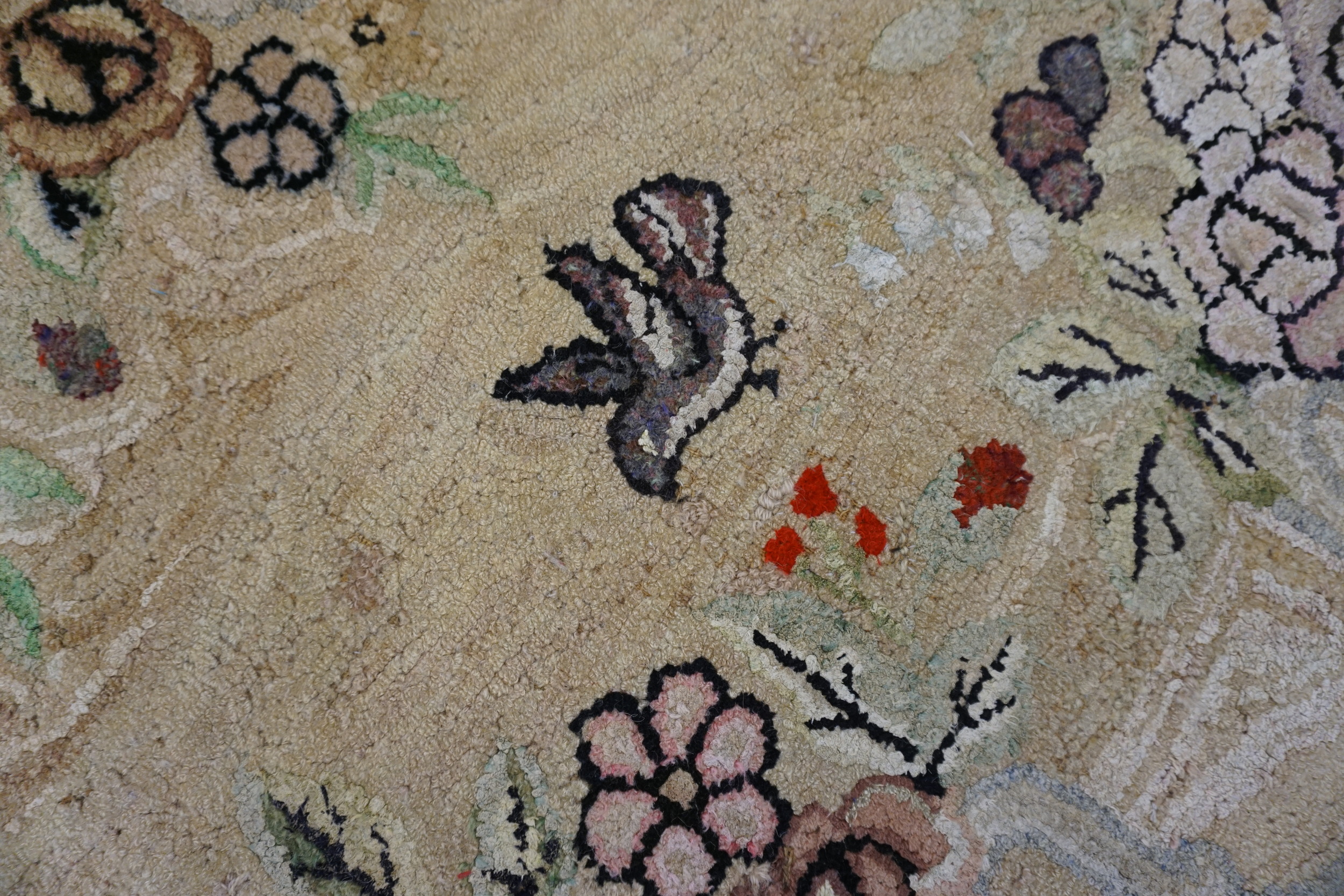Antique Cotton Ivory Beige Cream White Hooked – Loop Pile Rug, Circa Date: 1920s. This exceptional piece, likely American in origin, represents a charming departure from traditional woven textiles. Crafted using a meticulous hooked technique, the cotton pile provides a soft, textural depth rarely seen in standard antique rugs.