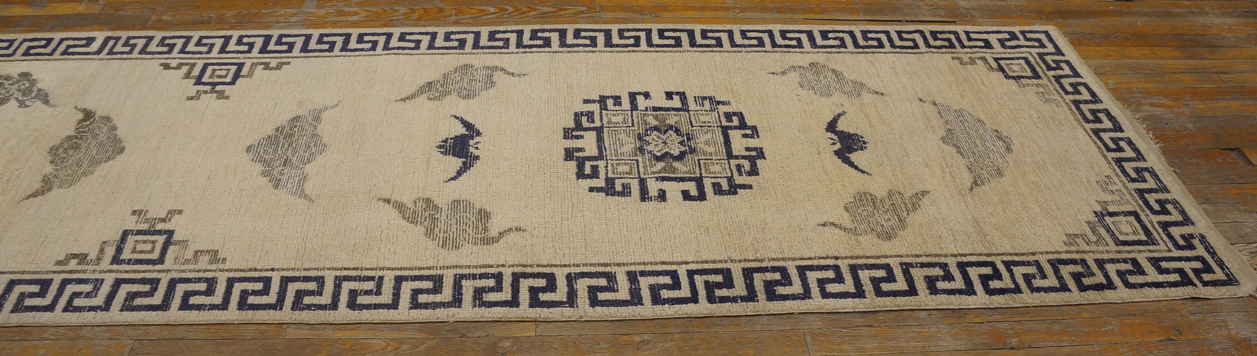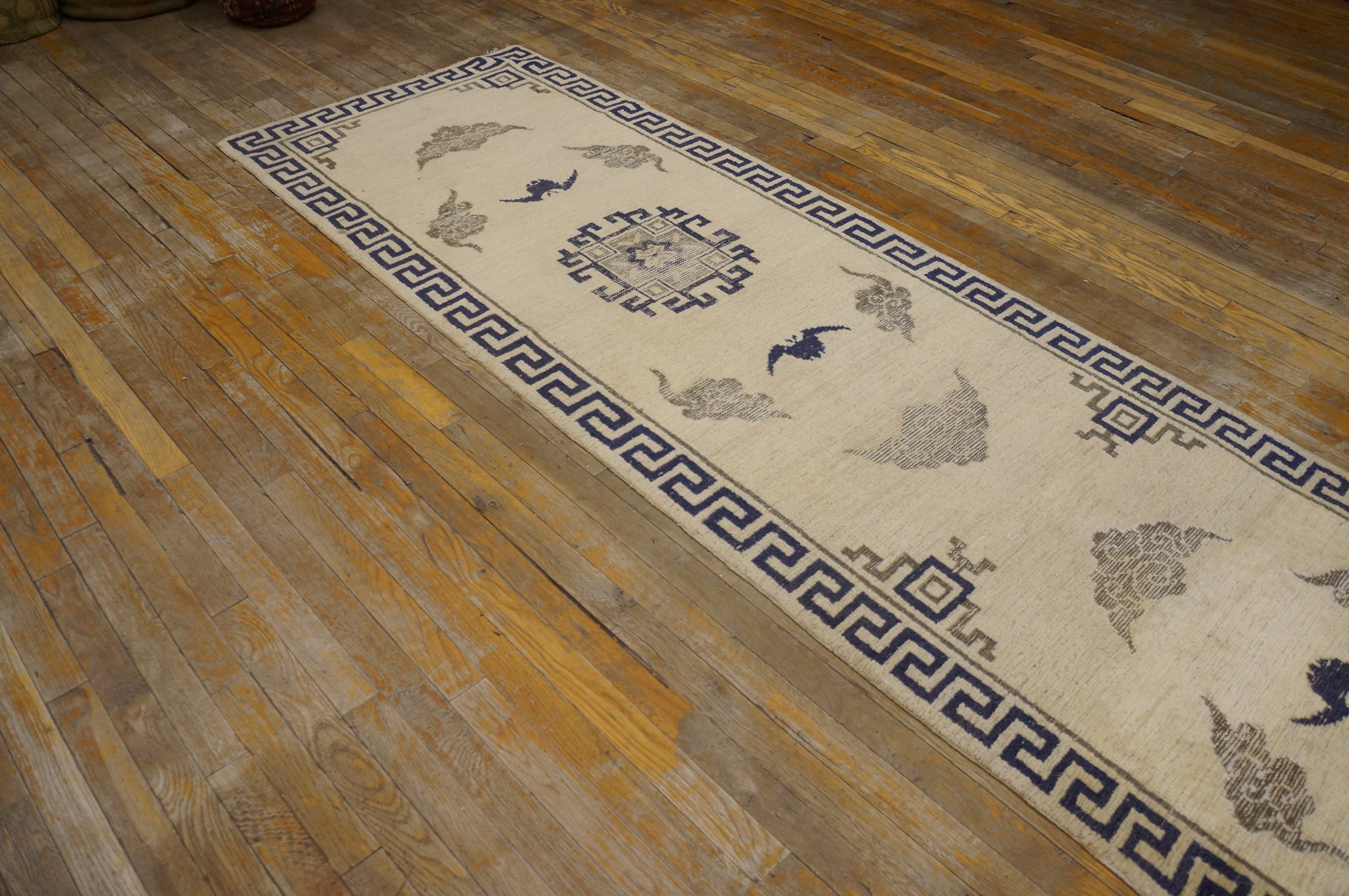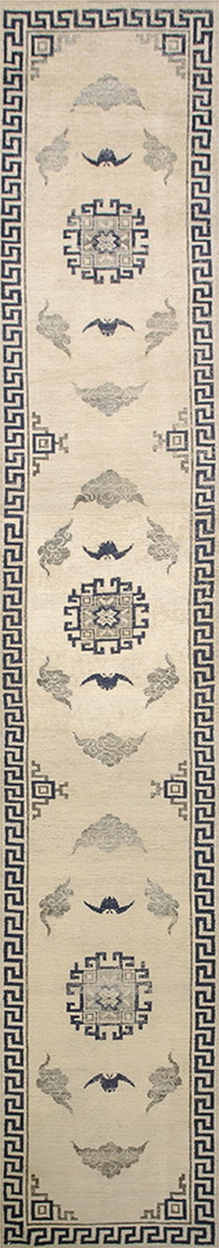 Hallway Runner Rugs (3ft x 17.1ft), Country of Origin: China, Circa Date: 1860s. This exceptional piece from the late Qing Dynasty exemplifies the refined aesthetic of Chinese rugs from this period. Its long, narrow format suggests it was likely commissioned for a specific imperial or wealthy domestic interior.