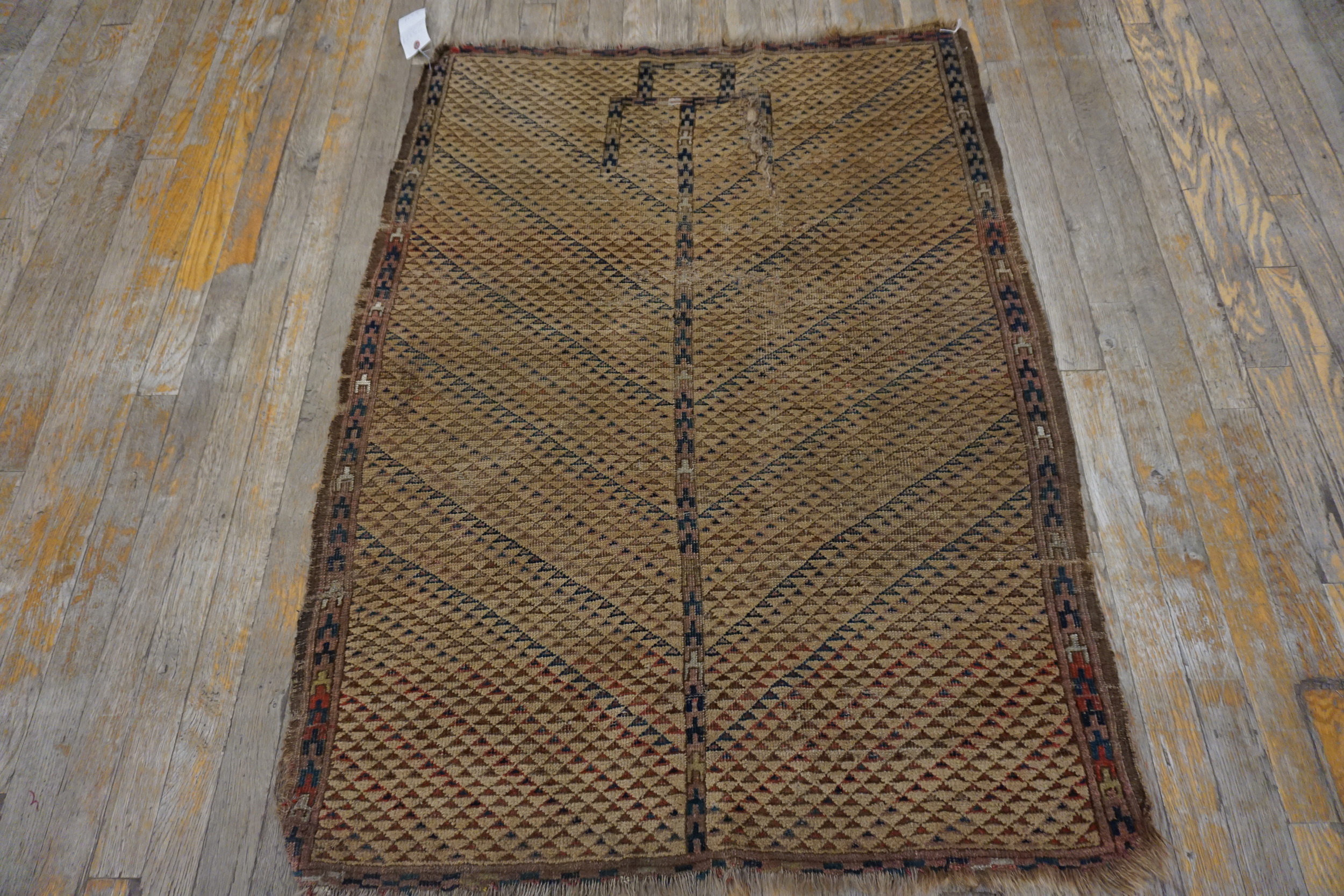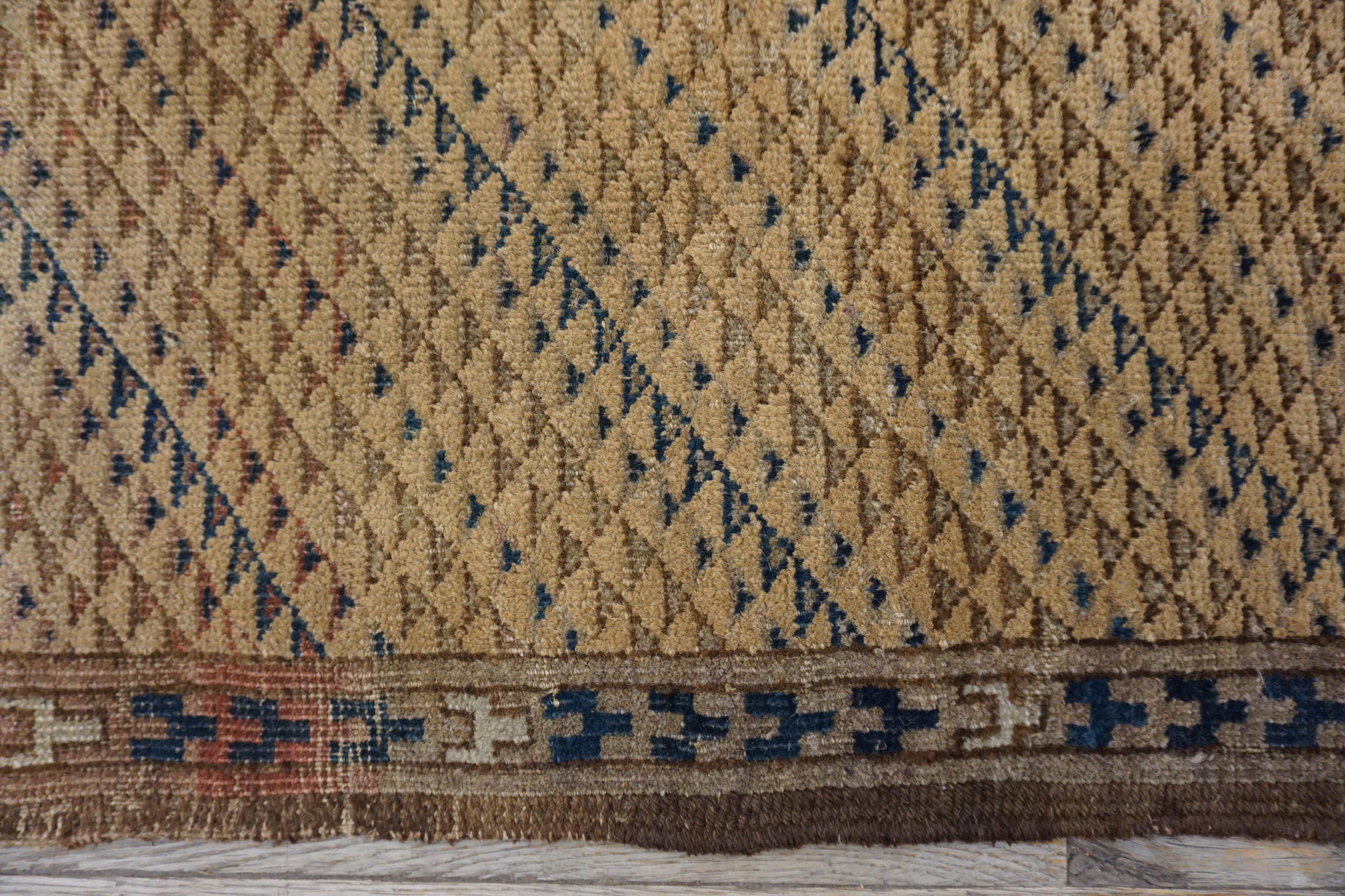 Woven originally as a functional item for the nomadic yurt, this textile is perfectly scaled as a small scatter size rugs. Its robust construction and sophisticated patina make it an ideal accent piece for contemporary or traditional interiors, providing subtle texture and historical depth.
