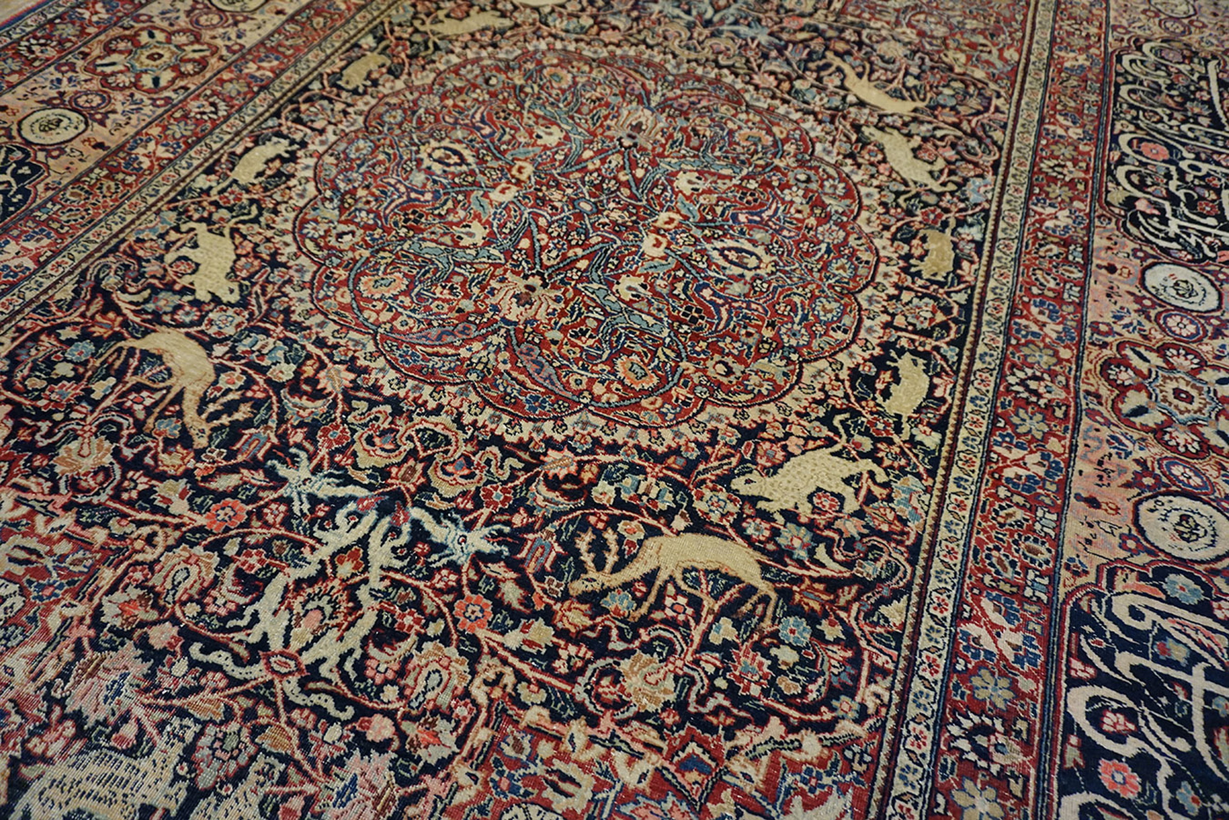 Woven during a period of artistic revival in Persia, this piece is more than merely a floor covering; it is a preserved textile artifact. Collectors seeking museum-quality antique rugs from the late 19th century will appreciate the exceptional knot density and pristine condition of this Moud scatter.