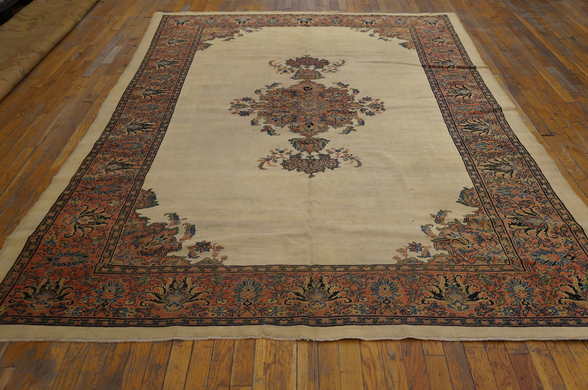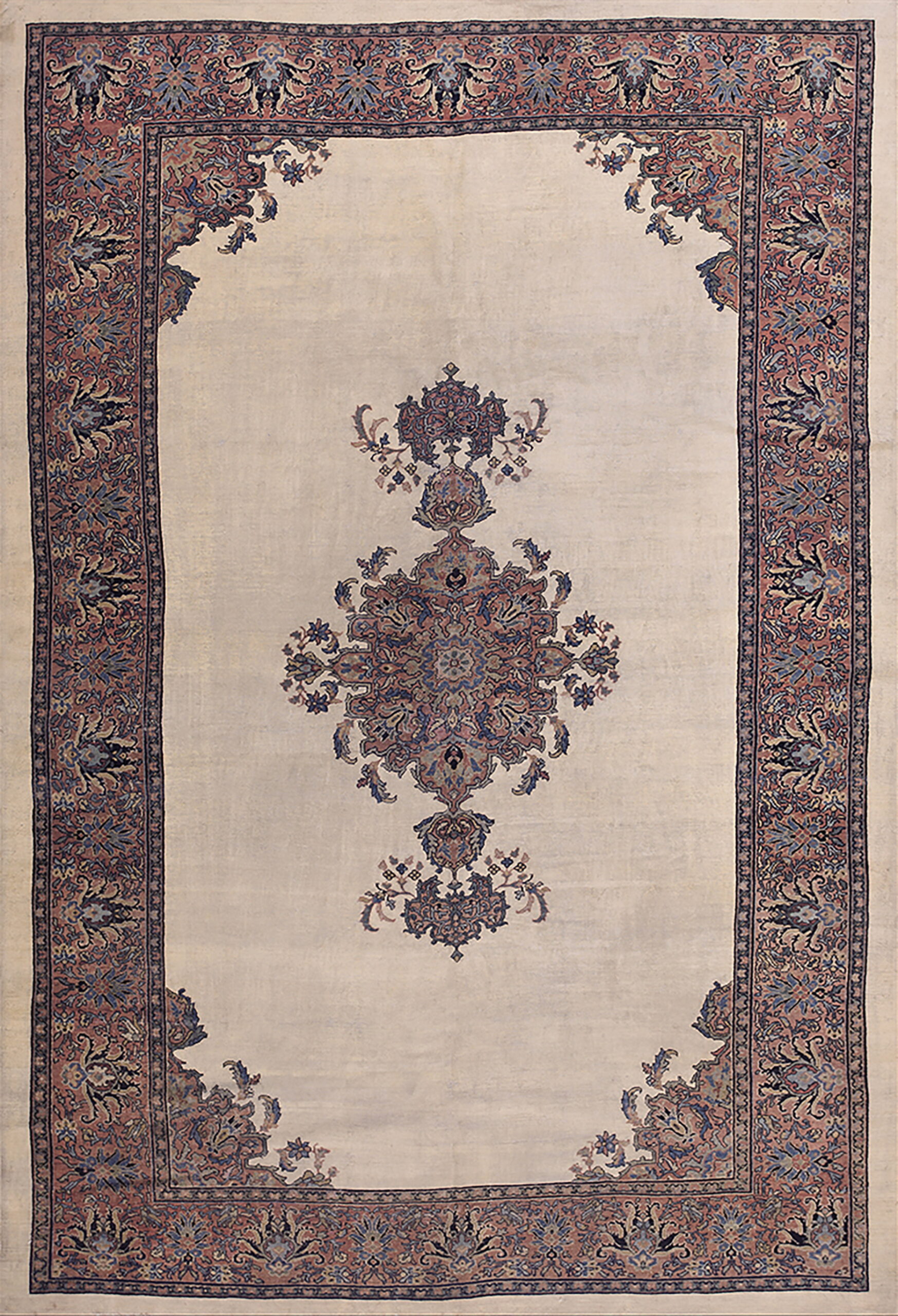 Dating to the 1870s, this rug represents a rare opportunity to acquire a piece of history where condition and artistry converge. The refined color palette and classical design ensure its timeless appeal, placing it among the most desirable antique rugs available today.