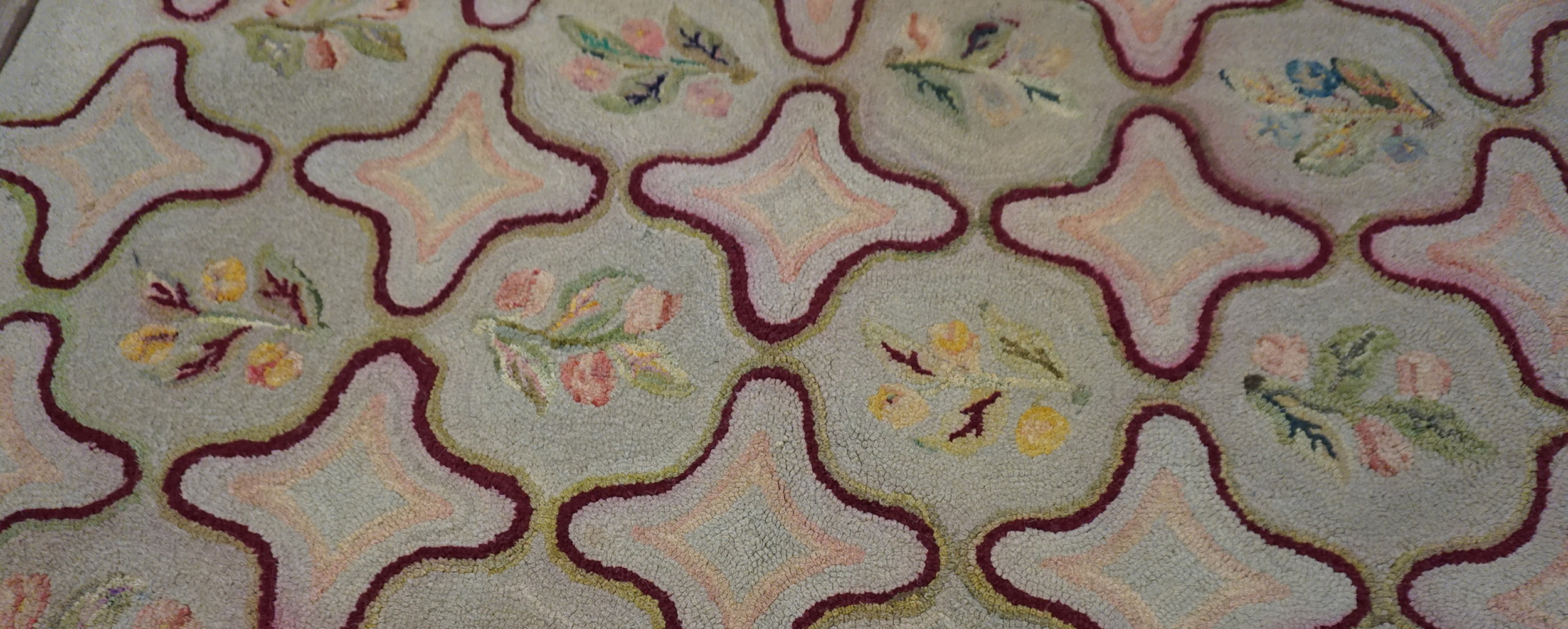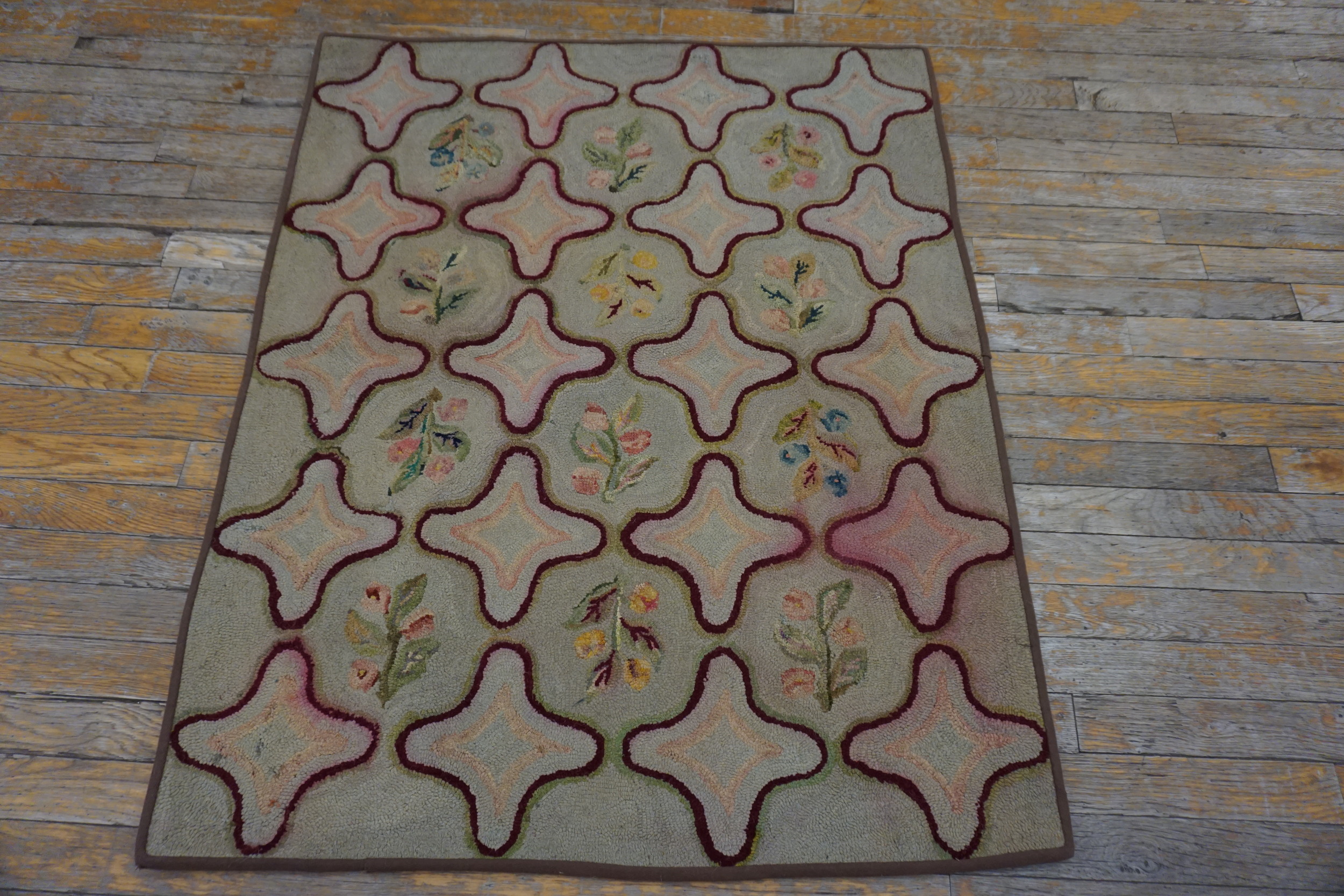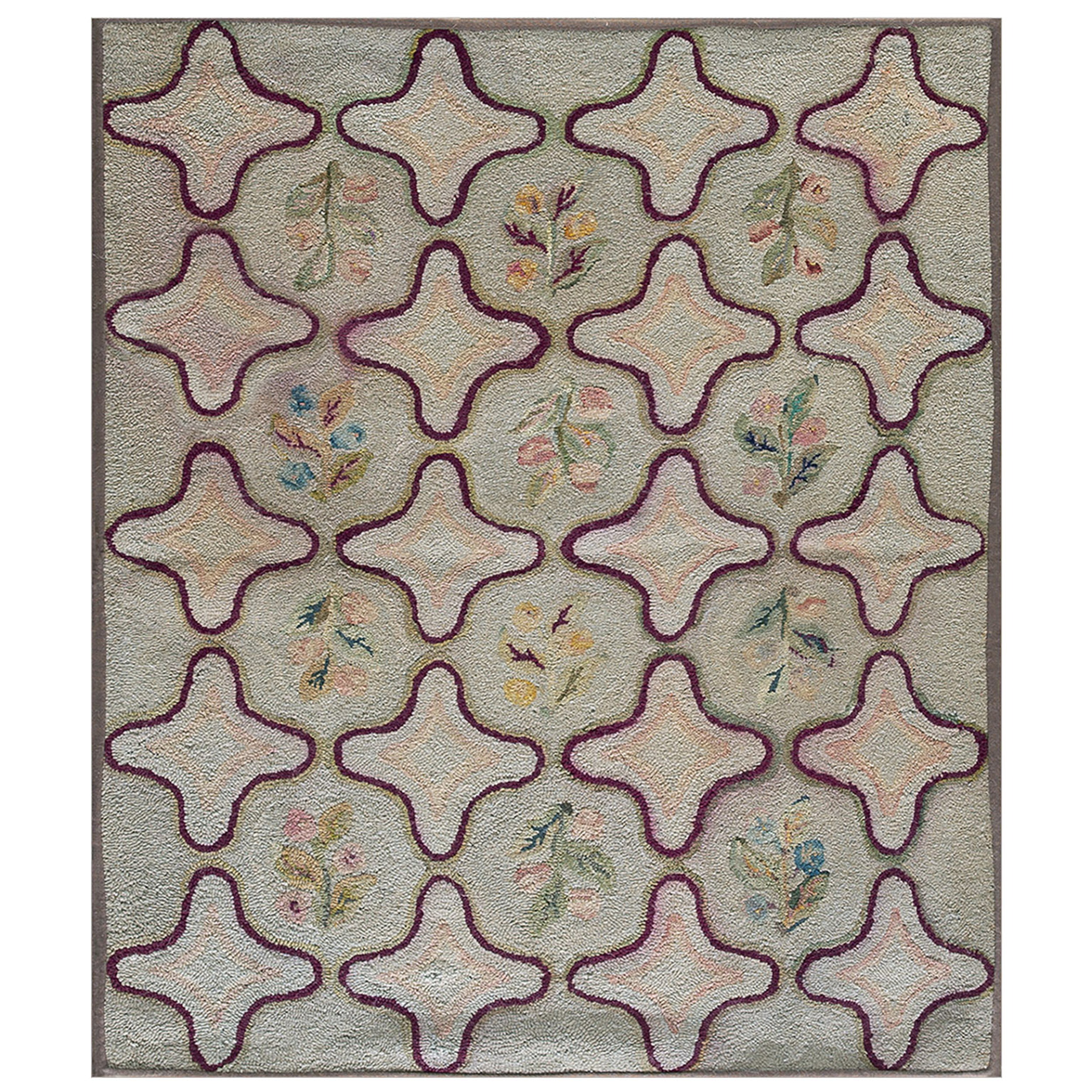 Antique American Hooked Rug American Gray 1935, Circa Date: 1935. This exceptional example of American folk artistry is a testament to the enduring appeal of domestic textile production. Hooked rugs represent a distinct category within the world of antique rugs, often showcasing unique regional interpretations and a charming, tactile quality derived from their construction.