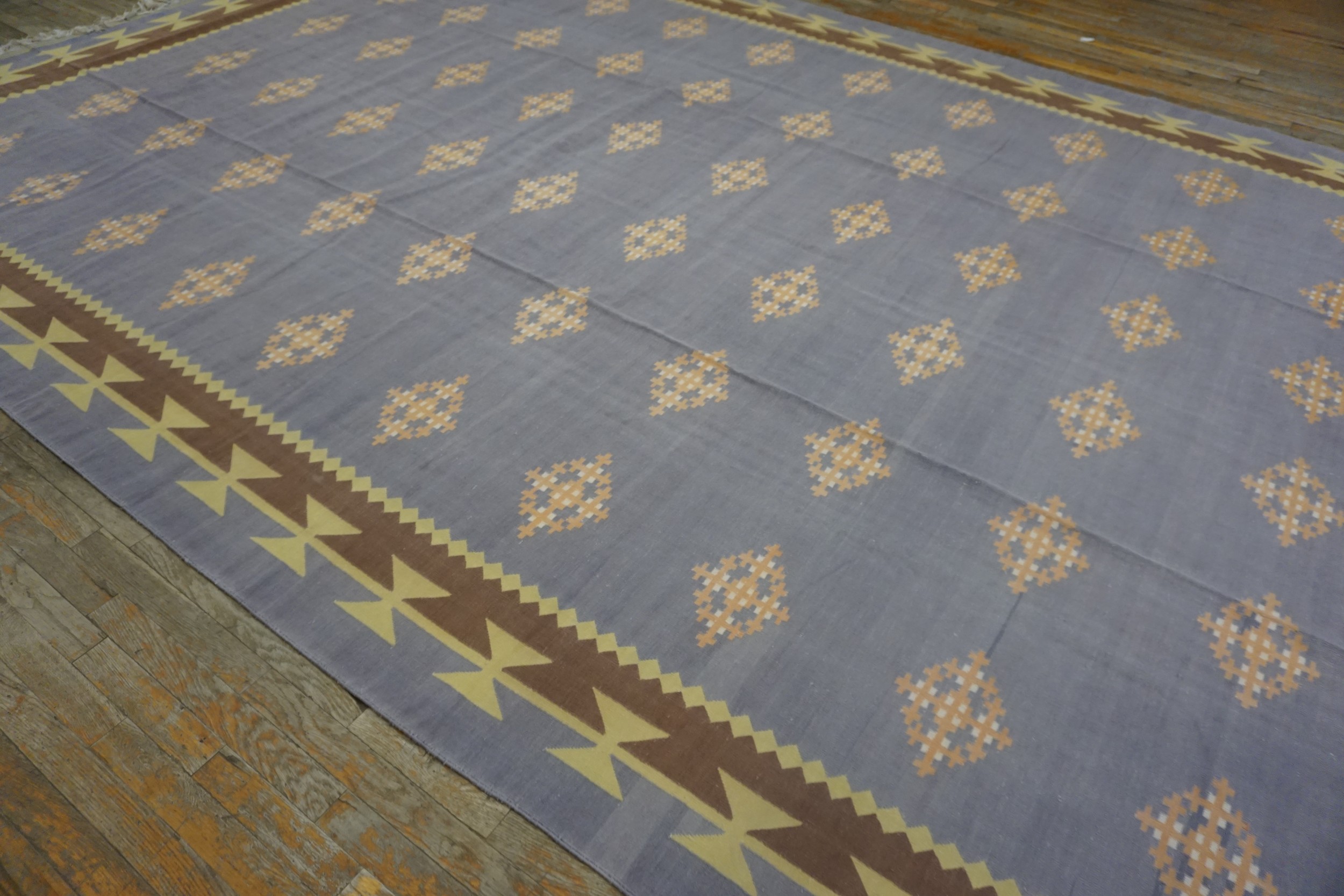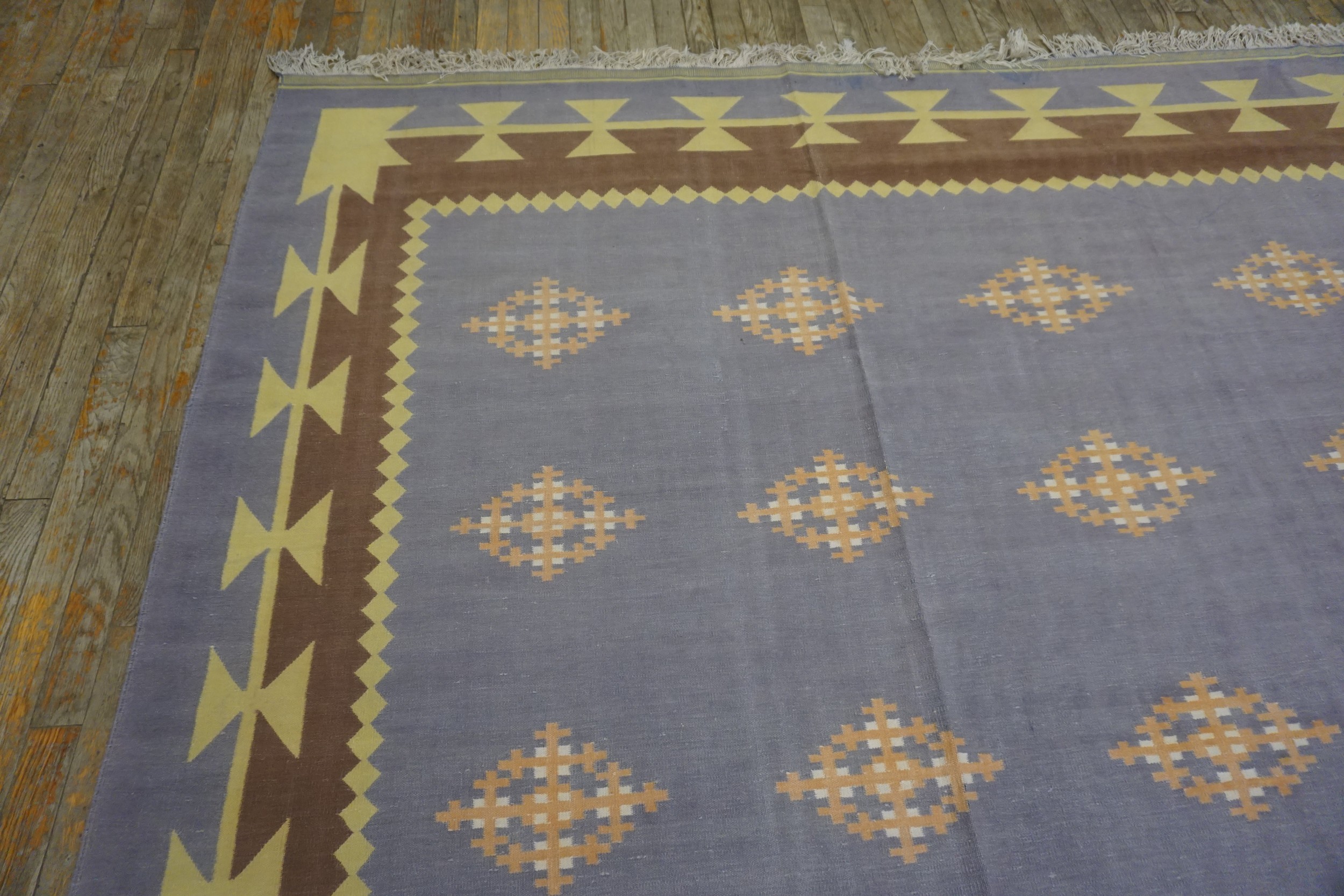 Dating to the mid-1930s, this Dhurrie rug captures the restrained elegance characteristic of the Art Deco era, offering a unique blend of traditional weaving techniques with early Modernist sensibilities. Its excellent condition and rare, minimalist design make it a highly desirable acquisition for collectors seeking exceptional antique rugs that transcend typical period styles.