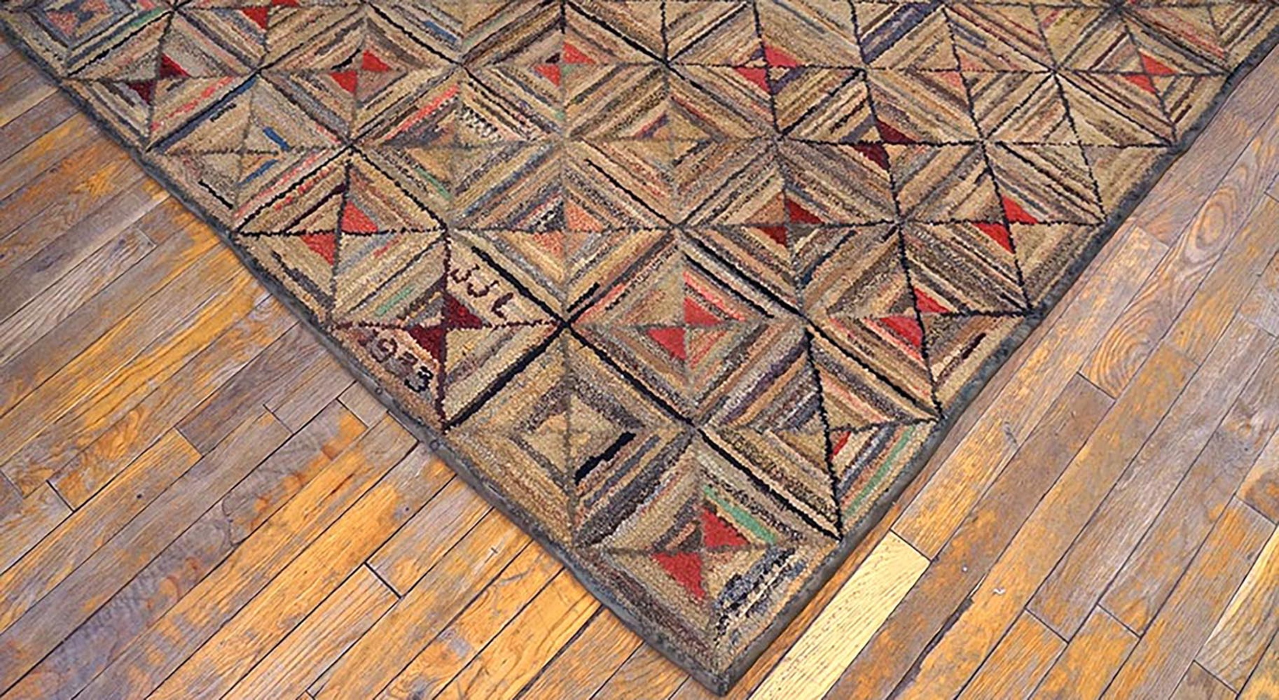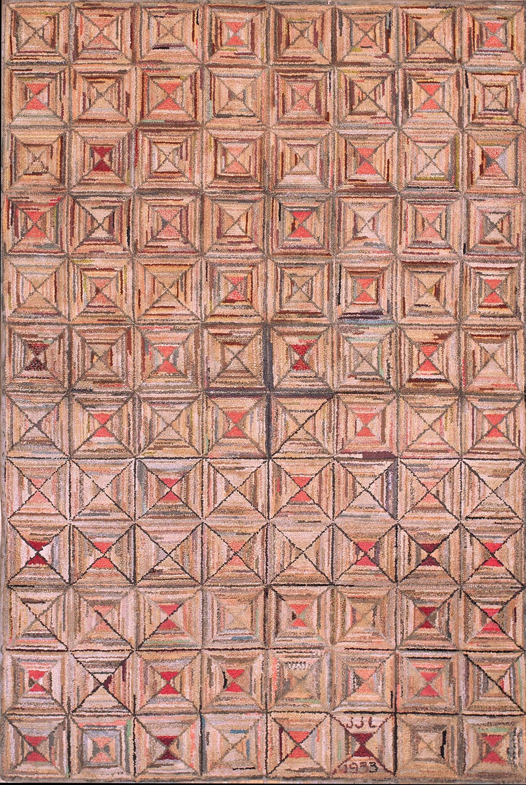 Designed specifically for transitional spaces, this piece is an ideal example among hallway runner rugs, offering both warmth and definition to long corridors or stair landings. As a genuine piece of textile history, it joins our curated collection of antique rugs, representing a charming and durable example of American folk art from the interwar period. Note: This item is described as a Small Scatter Size Rug (5.06ft x 8.0ft).