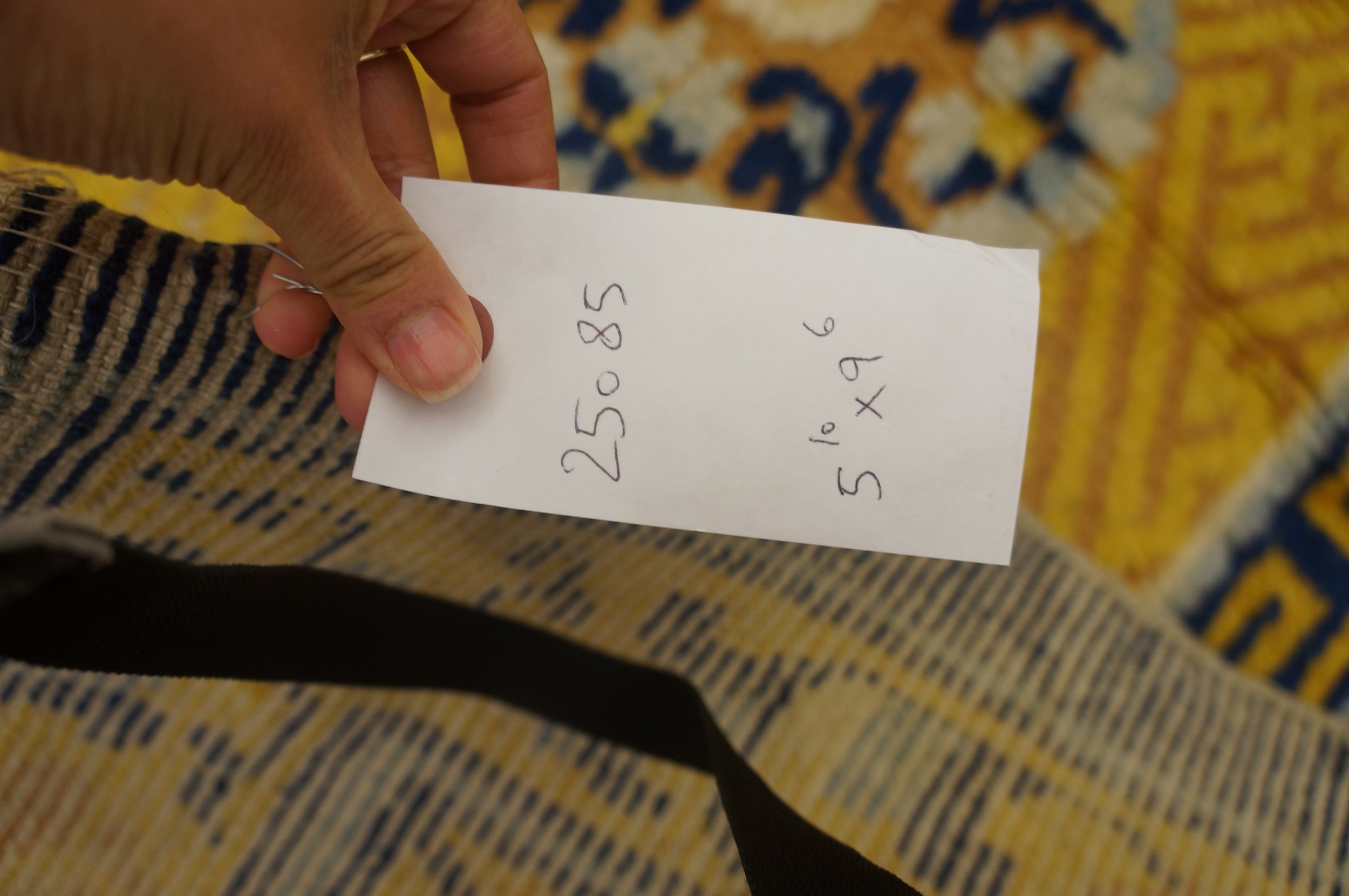 The expansive field is dominated by a rich, luminous saffron tone, a highly desirable hue that provides warmth and light to any interior space. This specific shade places it within the category of yellow color rugs that command attention. The surface is subtly textured by a faint, repeating diagonal lattice pattern, providing depth beneath the five centrally placed, contrasting medallions.