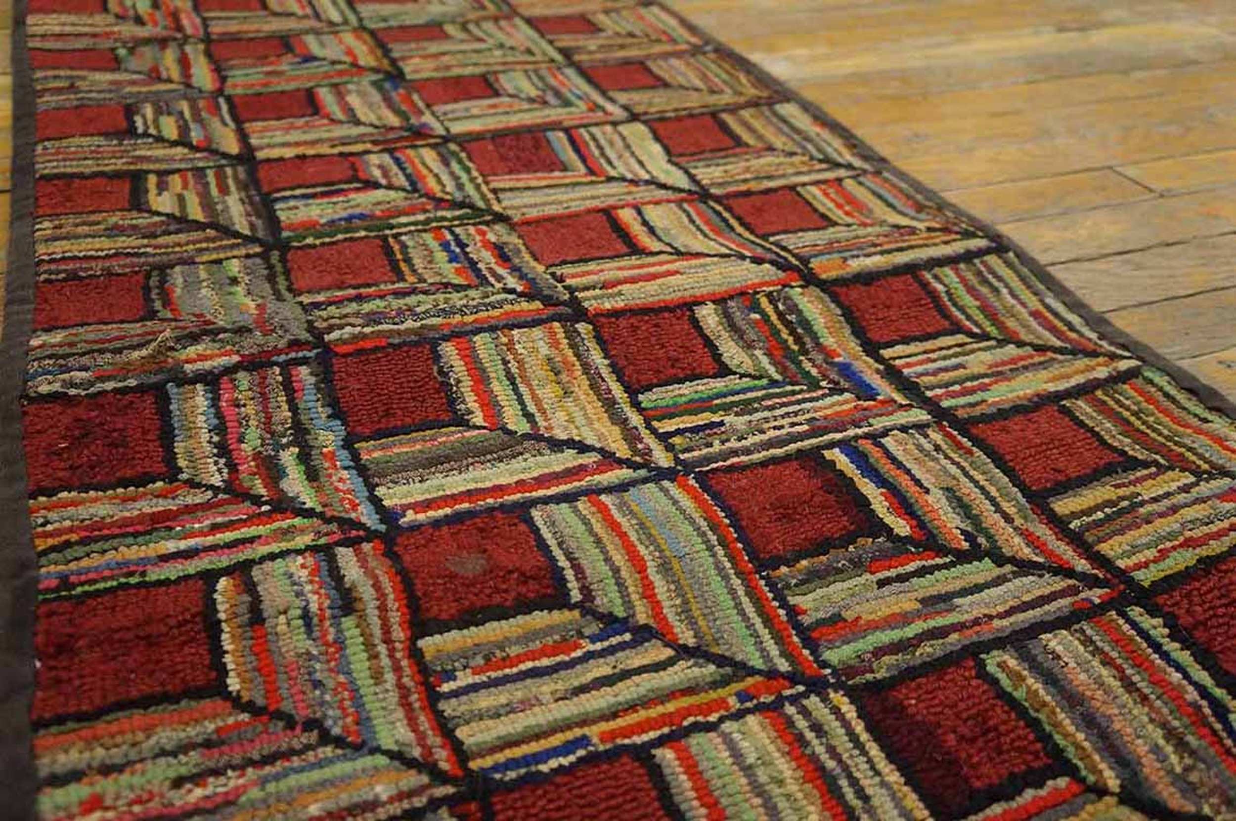 Hooked American 1930s Small Scatter Size Wool Antique Rug, Country of Origin: American USA Rugs, Circa Date: 1930s. This charming piece reflects the folk art tradition prevalent among American USA Rugs during the Depression era. The hooked technique utilizes strips of recycled fabric, creating a durable and highly textured surface ideal for domestic settings.