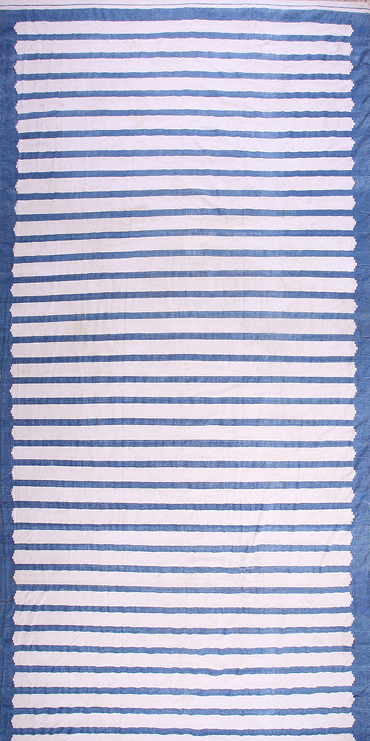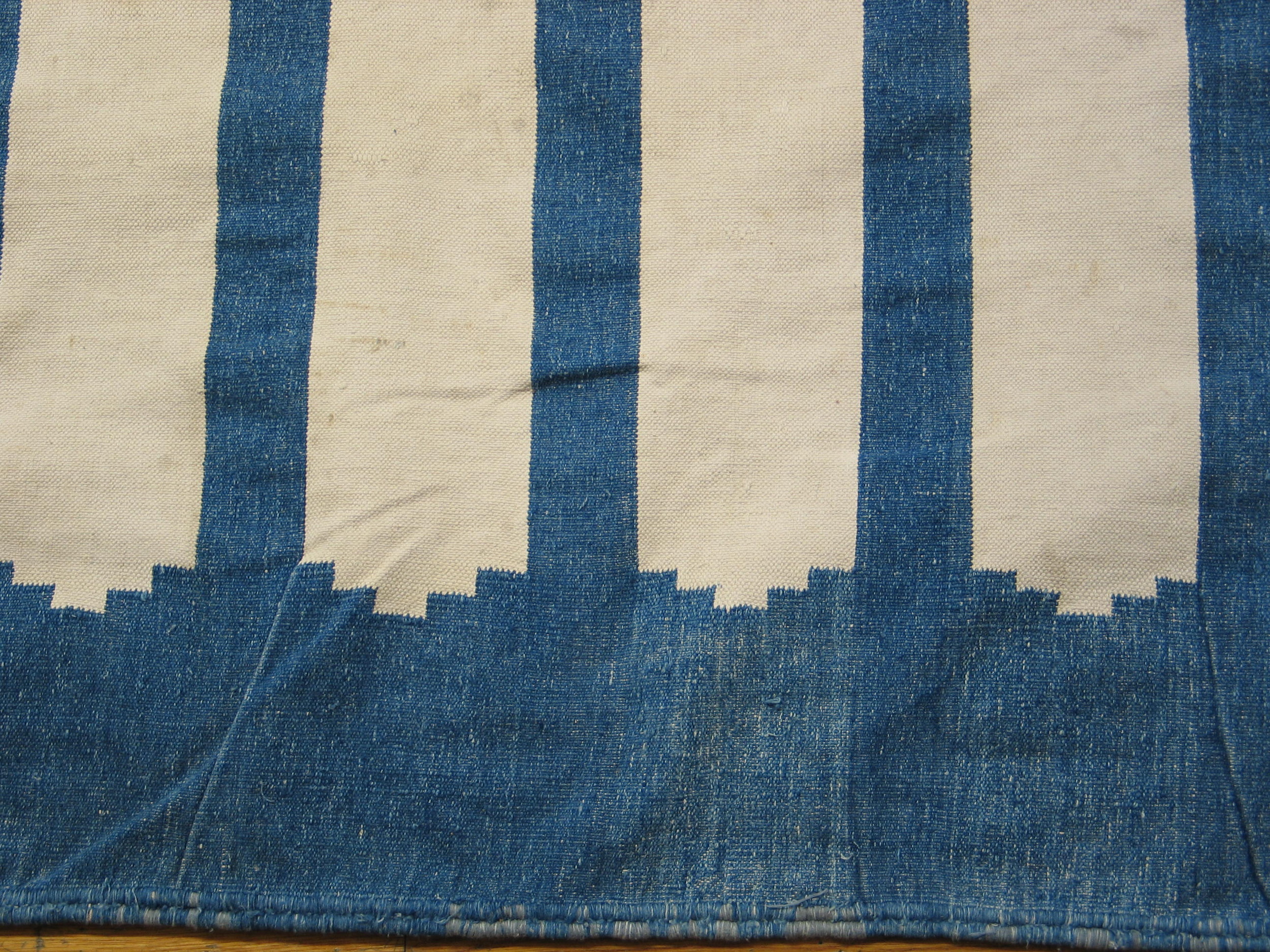 Antique Dhurrie Oversized Room Size Wool Blue Rug, Country of Origin: India, Circa Date: 1930s. This exceptional piece is a striking example of modern design sensibilities applied to traditional weaving techniques, offering a bold, graphic statement. As a highly desirable item among our collection of antique rugs, its visual impact is immediate and enduring.