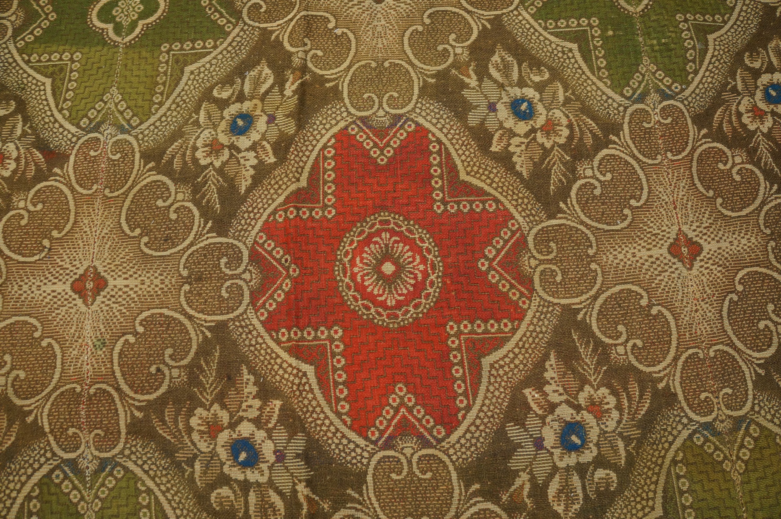 As a rare survival from the Antebellum period, this Ingrain carpet offers a fascinating glimpse into early American interior design. Its substantial size and robust construction confirm its status as a highly collectible piece among antique rugs of domestic origin.