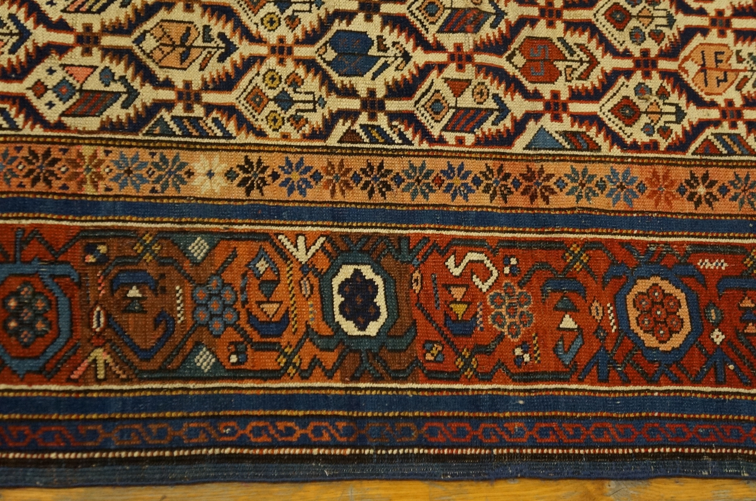 Antique Caucasian Ivory 1890s Rug, Circa Date: 1890s. This compelling example of Caucasian weaving captures the robust geometric artistry characteristic of the region’s late 19th-century output. The structure is tight, reflecting the high quality of nomadic production from the period.