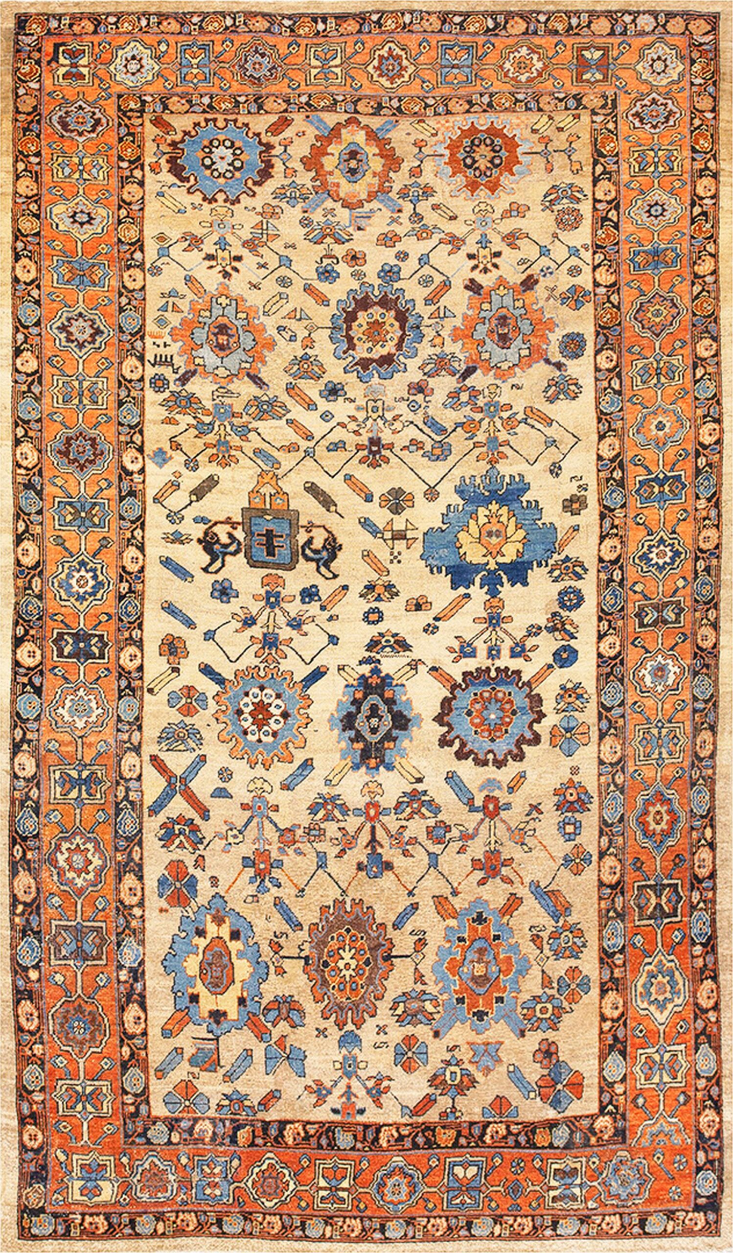 Antique Bakshaish Persian Floral Knotted Rug, Country of Origin: Iran / Persia, Circa Date: 1870s. This exceptional example of antique rugs from the late 19th century showcases the distinctive design vocabulary of the Bakshaish region, known for bridging tribal geometric abstraction with classical Persian motifs.