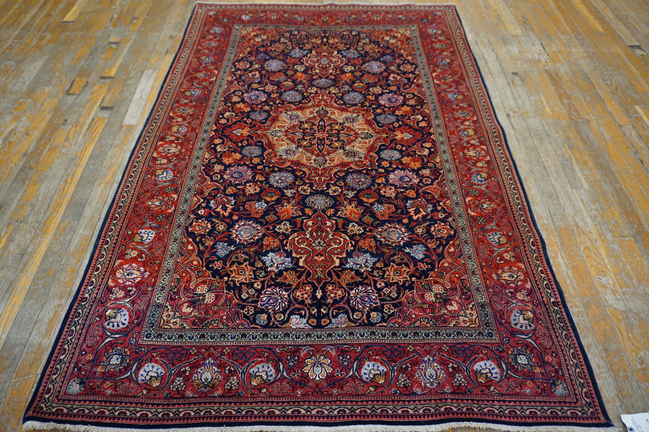 Antique Kashan Small Scatter Size Wool & Silk Blue Rug, Circa Date: 1925. This exquisite piece represents the zenith of early 20th-century Persian weaving, combining the durability of high-grade wool with the subtle sheen of silk highlights. It stands as a superb example among our collection of antique rugs, showcasing the technical mastery inherent to the Kashan workshops.