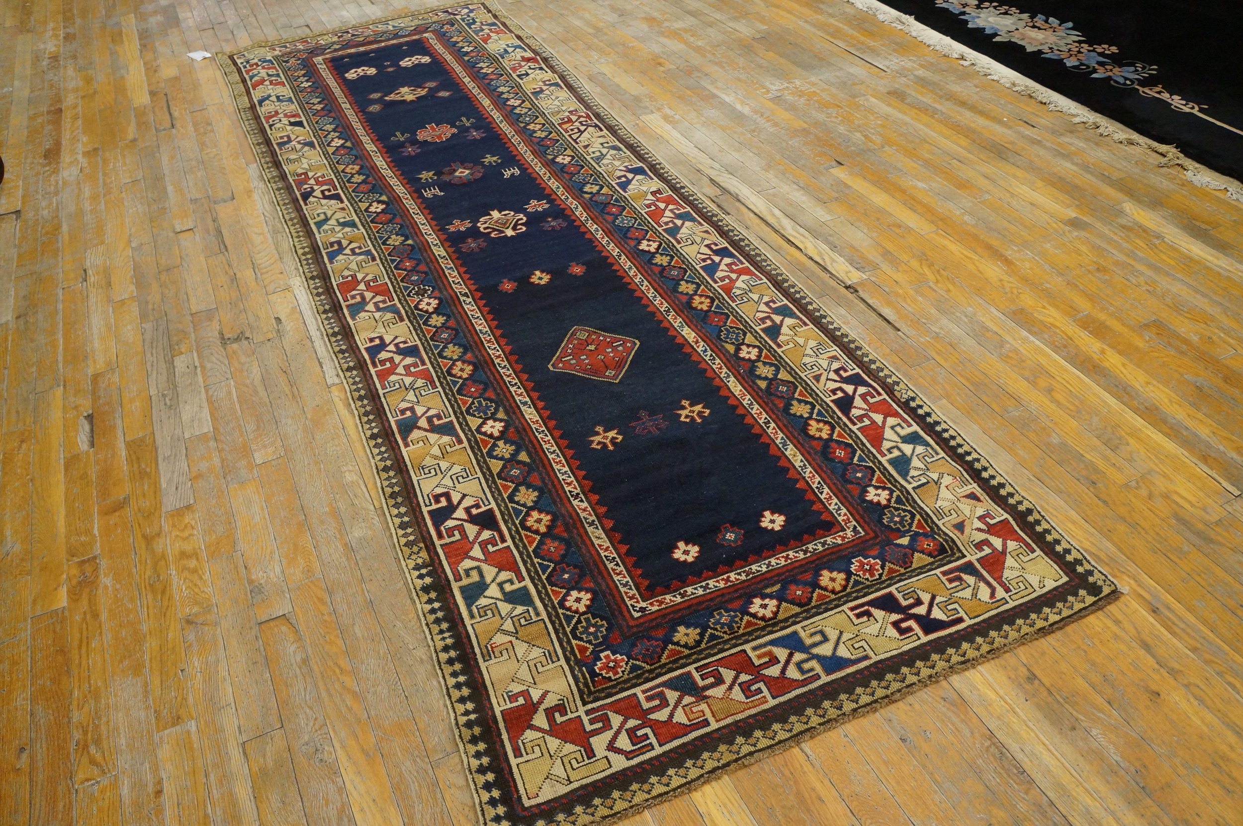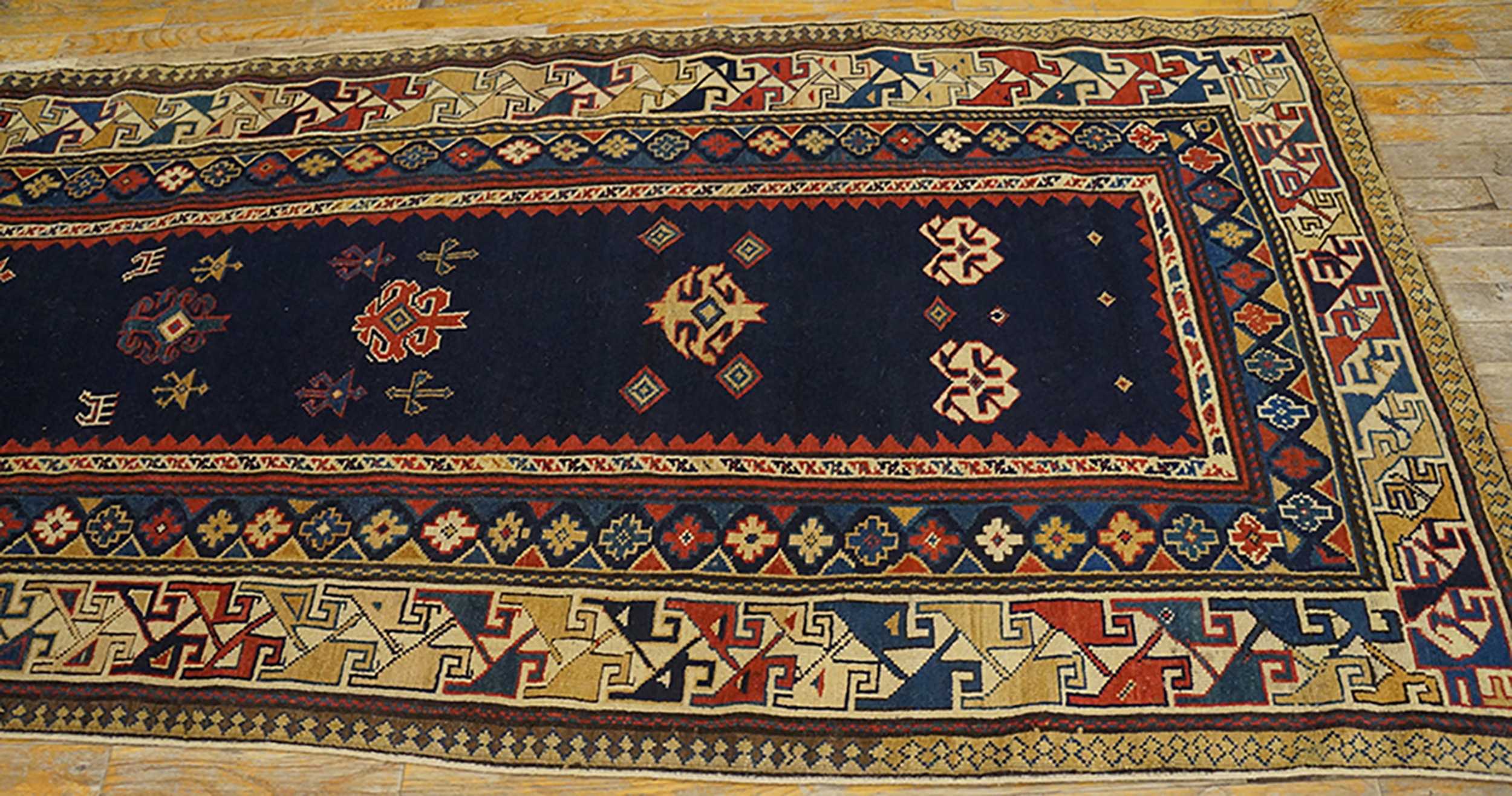 Antique Kazak Caucasian Blue 1880s Rug, Circa Date: 1880s. This exceptional piece represents the finest weaving traditions of the southern Caucasus, characterized by its robust construction and powerful tribal iconography. Such authentic examples, woven with hand-spun wool and natural dyes, are highly sought after by collectors of antique rugs.