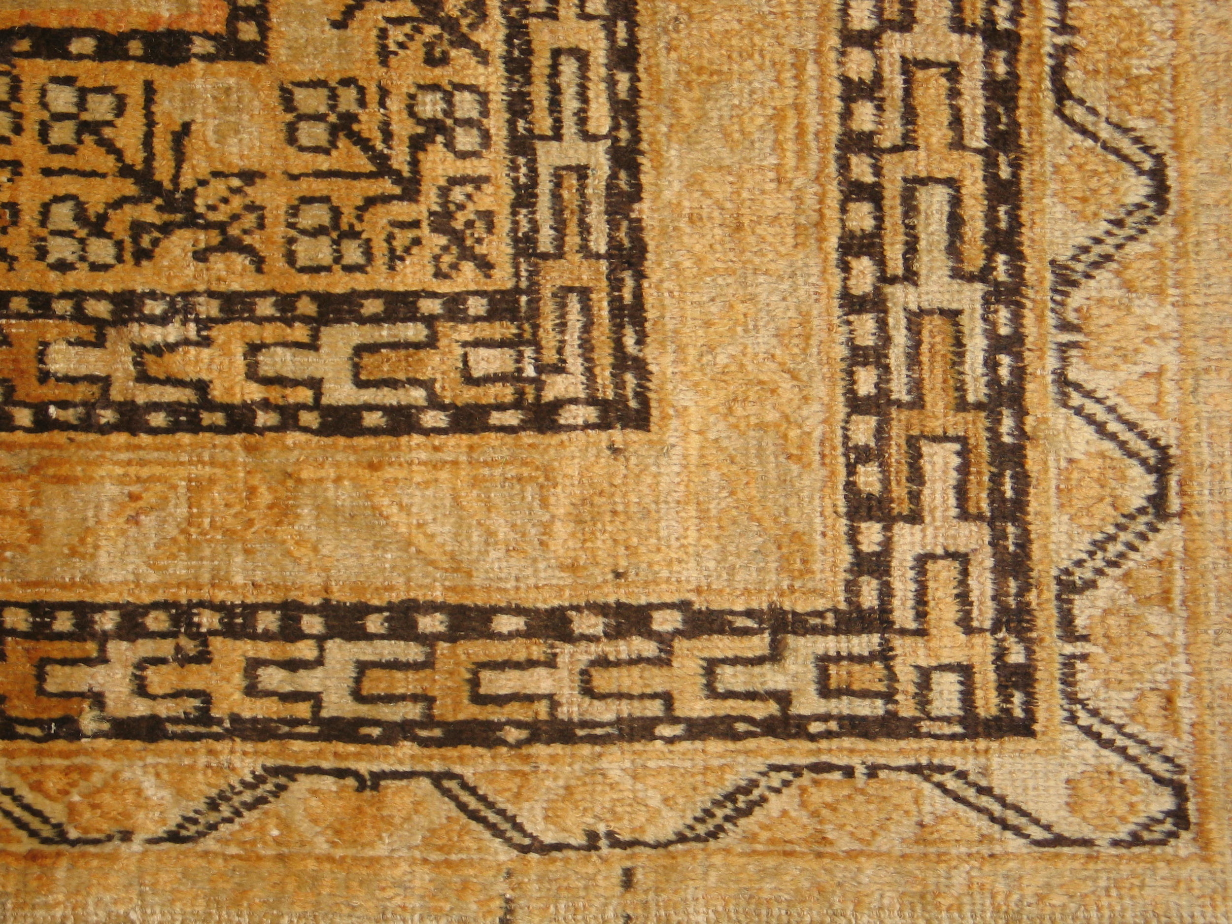 Antique Khotan Room Size Wool Gray Rug, Country of Origin: East Turkestan, Circa Date: 1930s. This exceptional textile belongs to the distinctive category of khotan rugs, renowned for their unique blend of Central Asian geometry and subtle Chinese aesthetic influences. The provenance places it within the broader tradition of East Turkestan rugs.