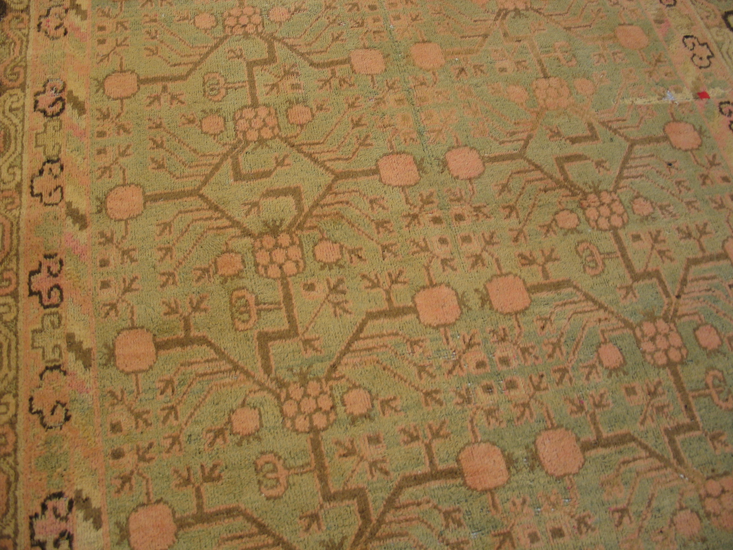 Antique Khotan East Turkestan Wool Ivory Beige Cream White Hand Knotted Pile Rug, Circa Date: 1930s. This exceptional piece belongs to our curated collection of antique rugs, showcasing the distinctive aesthetic of Central Asia. Originating from the region historically known for khotan rugs, this runner embodies the sophisticated blend of Chinese, Persian, and indigenous Turkic design elements characteristic of the Silk Road trade.