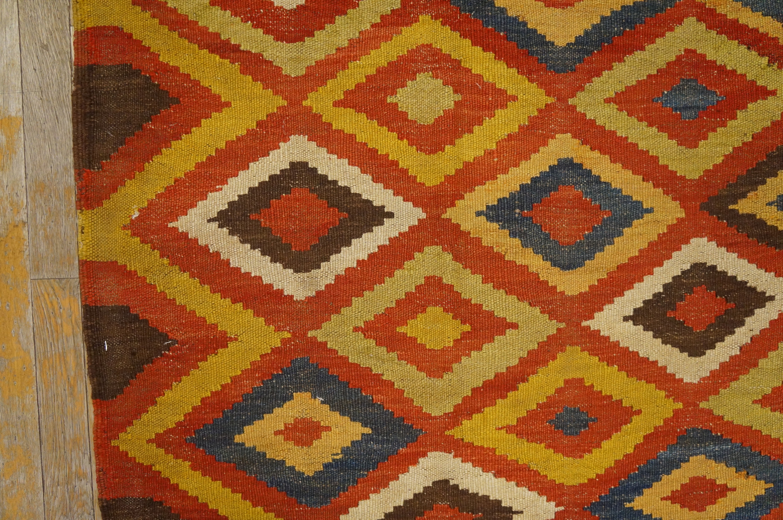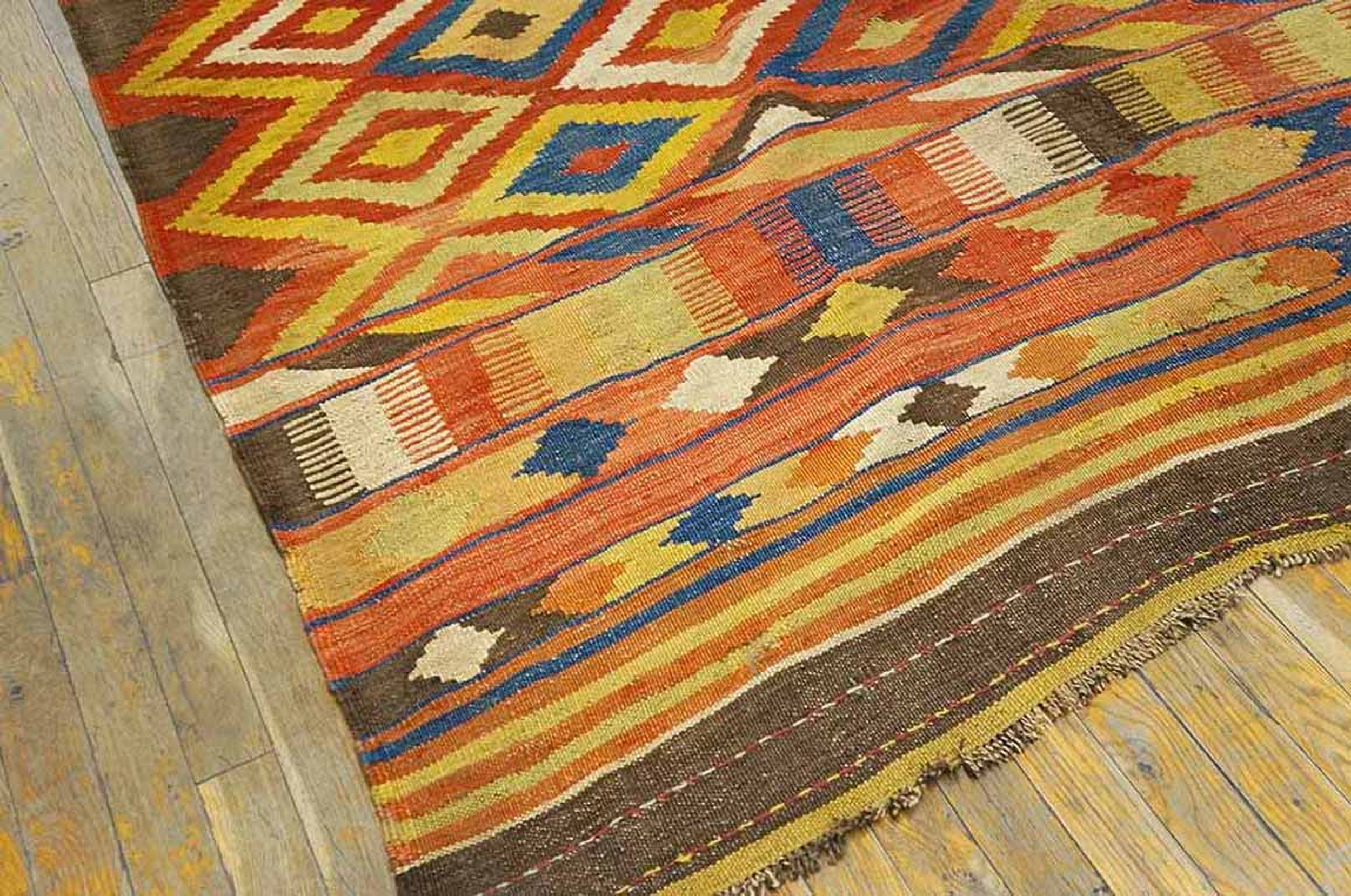 Antique Kilim Afghanistan Flat Weave Rug, Circa Date: 1890s. This exceptional example of nomadic weaving artistry represents the finest traditions of antique rugs from Central Asia. Its flat-weave construction, utilizing the slit-tapestry technique, provides a durable yet lightweight textile that speaks to the functional needs of tribal life in the late 19th century.