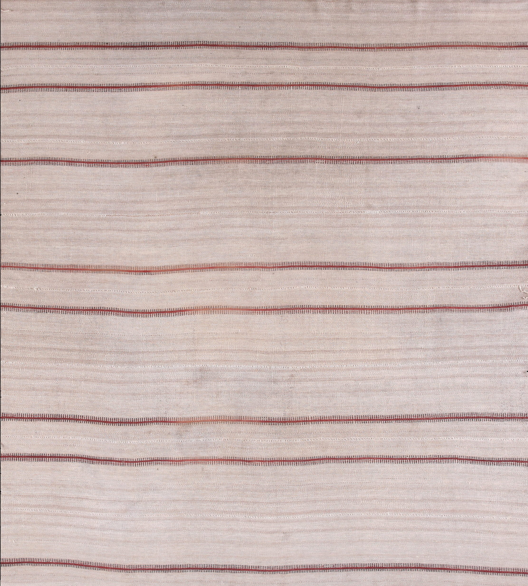 While many traditional pieces rely on complex medallions, this rug employs a restrained, almost minimalist aesthetic. The subtle horizontal banding and textural shifts contribute to an elegant allover design, reflecting the burgeoning interest in modern simplicity during the mid-20th century.