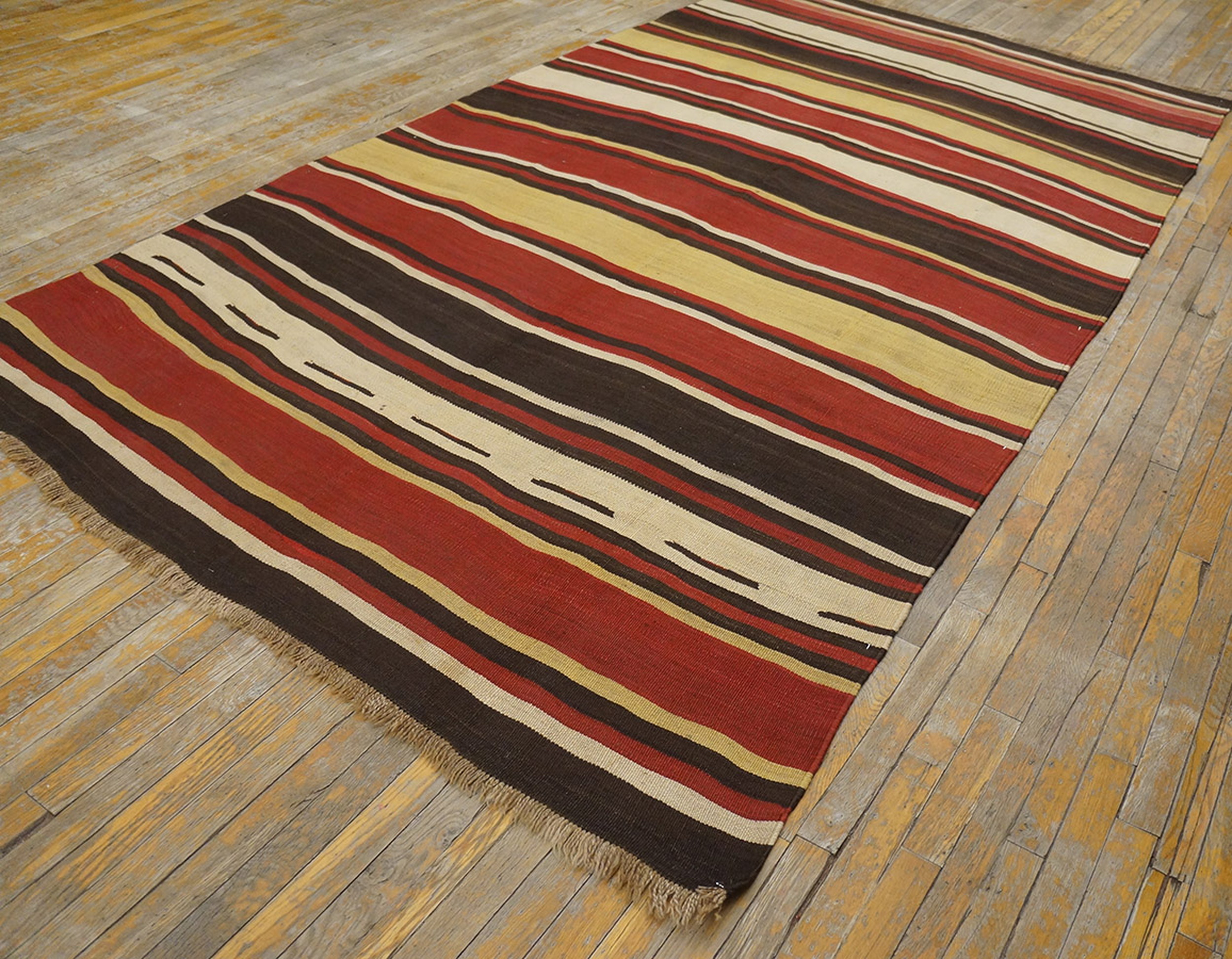 Antique Kilim – N.W. Persian Persian Knotted Rug, Country of Origin: Persia, Circa Date: 1900s. This striking example of a flat-woven kilim exhibits the powerful simplicity typical of nomadic weaving traditions. Its design relies entirely on the interplay of color and texture rather than complex figural motifs, offering a minimalist aesthetic that remains highly sought after today.