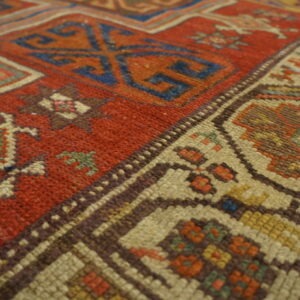 Antique Konya Hallway Runner Wool Coral Rug, Country of Origin: Turkey, Circa Date: 1850s. This exceptional example of antique rugs from Anatolia showcases the robust, graphic aesthetic characteristic of 19th-century village production. Woven entirely from high-quality wool, the textile’s structure speaks to the enduring heritage of Turkish weaving traditions.