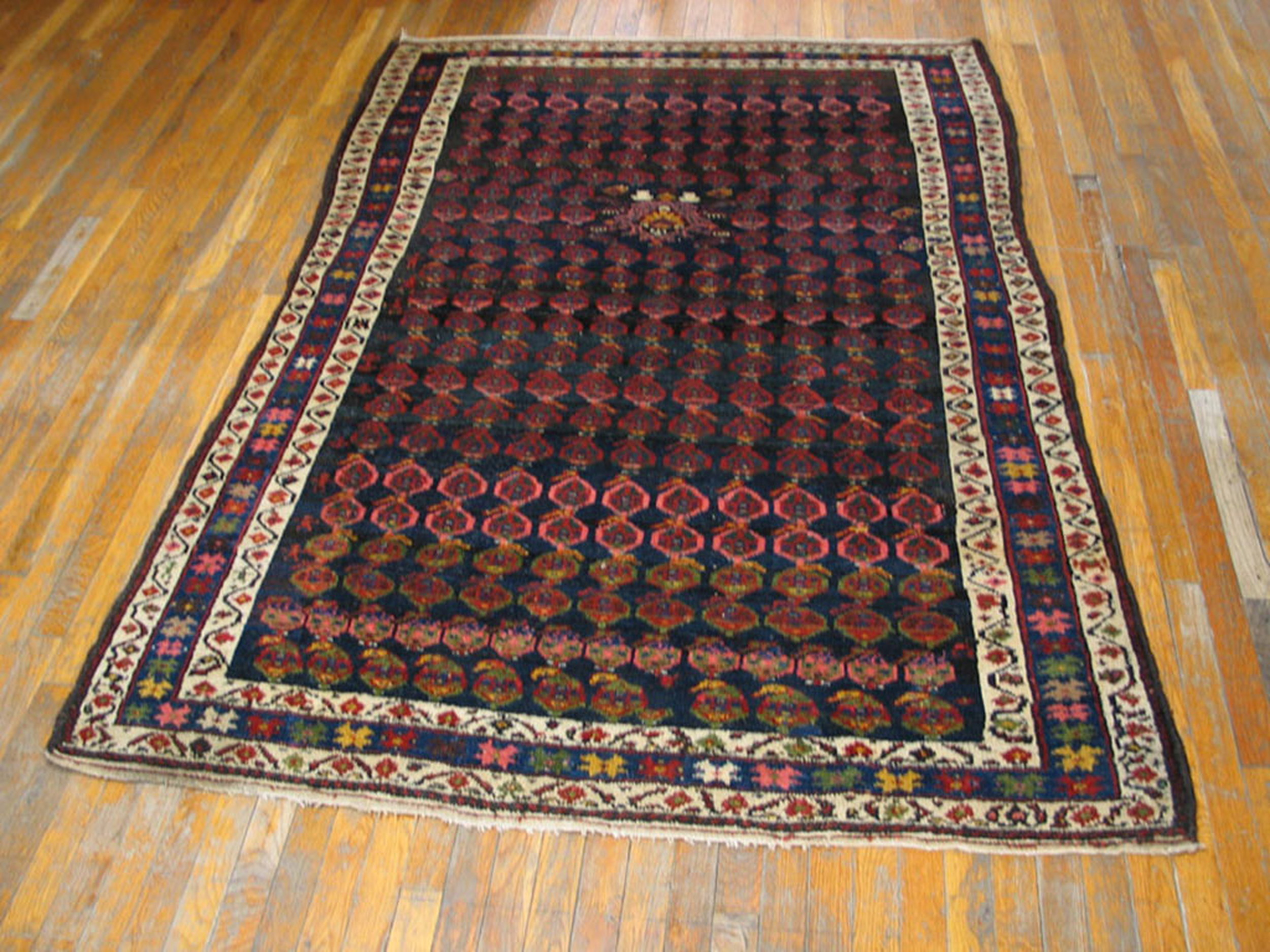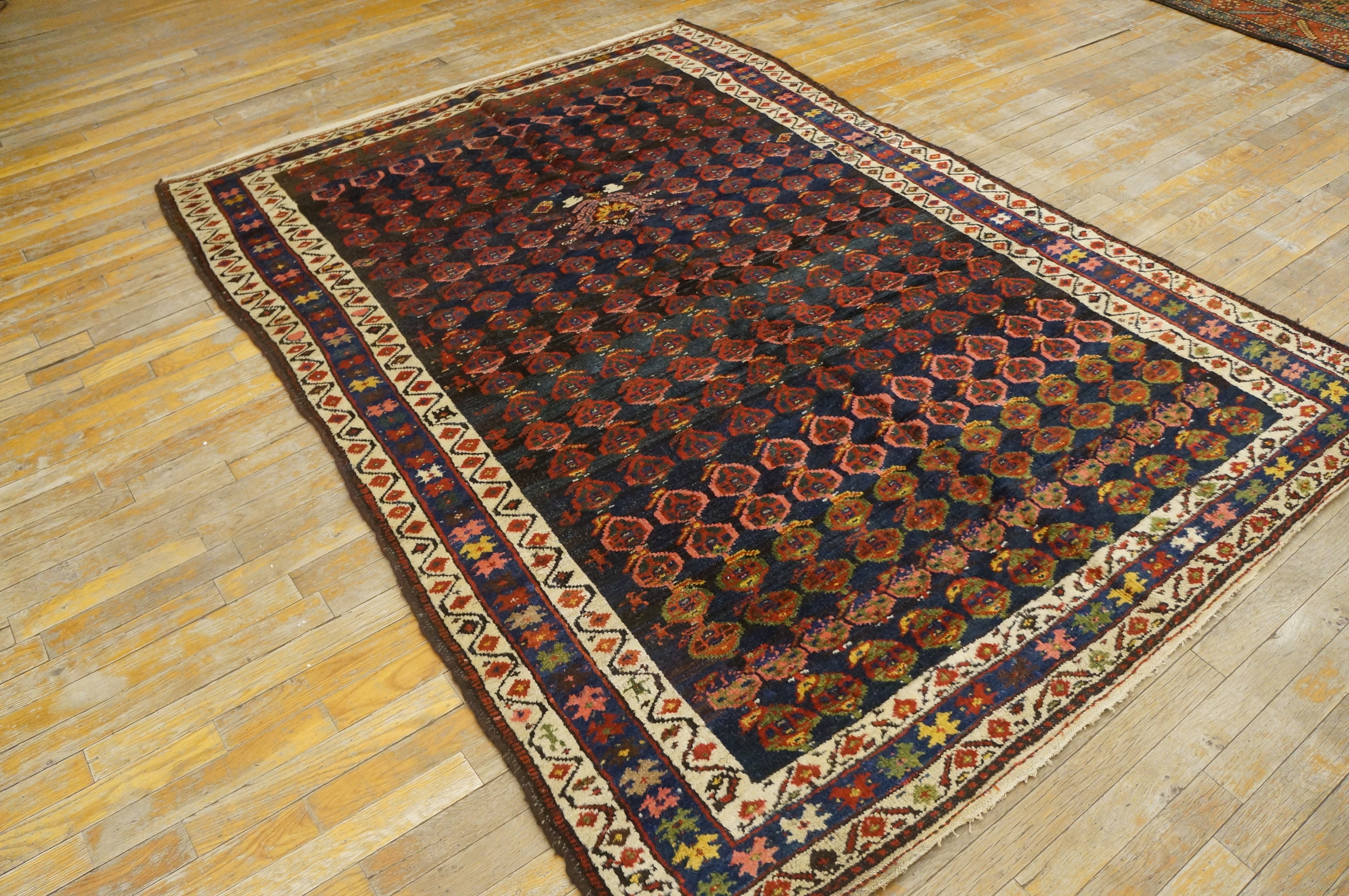 Antique Kurdish Allover Geometric Hand Knotted Pile Rug, Circa Date: 1890s. This exceptional piece is a compelling example of late 19th-century kurdish weaving, characterized by robust wool and deeply saturated, organic dyes that speak to its tribal origins.