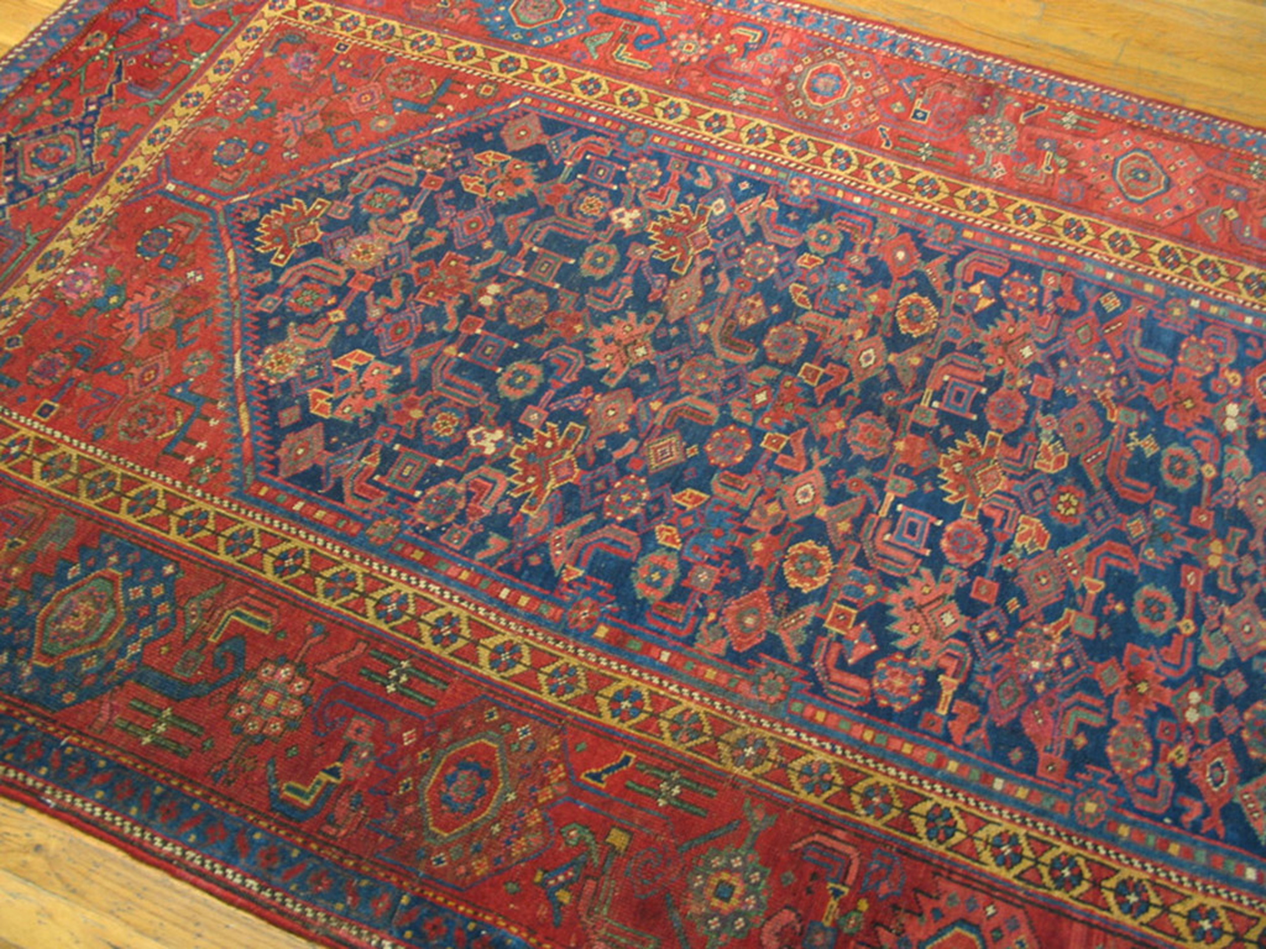 The robust wool foundation and high knot density speak to the enduring quality of these nomadic textiles. Representing a significant piece of textile history, this example belongs among the finest antique rugs available today. Its distinctive tribal geometry and rich patina are hallmarks of authentic kurdish rugs, offering a rare opportunity for collectors seeking genuine provenance.