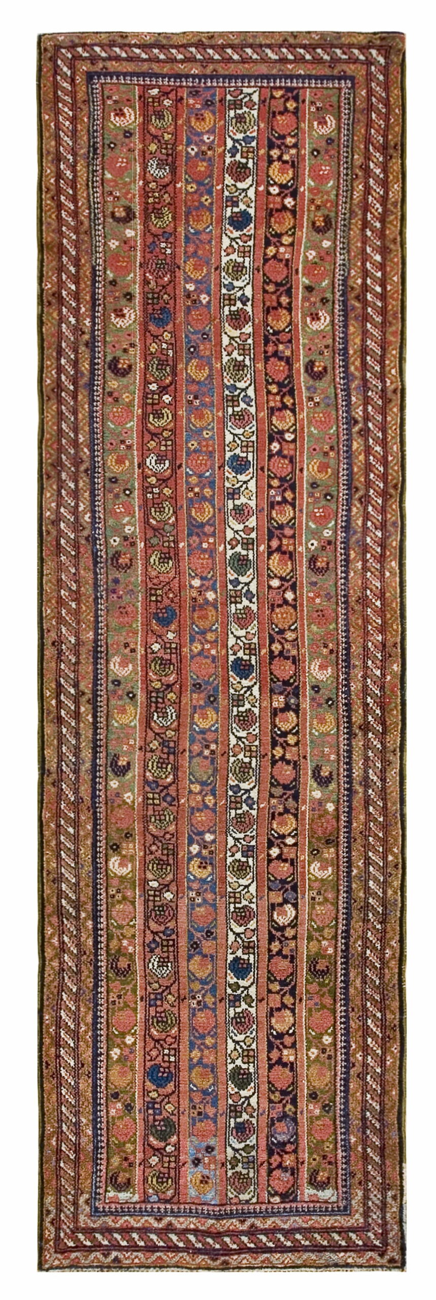 Antique Kurdish Hallway Runner Wool Multicolor Rug, Circa Date: 1900s. This exceptional piece of textile history originates from the Kurdish weaving traditions of the early 20th century, showcasing the robust structure and vibrant, nomadic artistry characteristic of antique rugs.