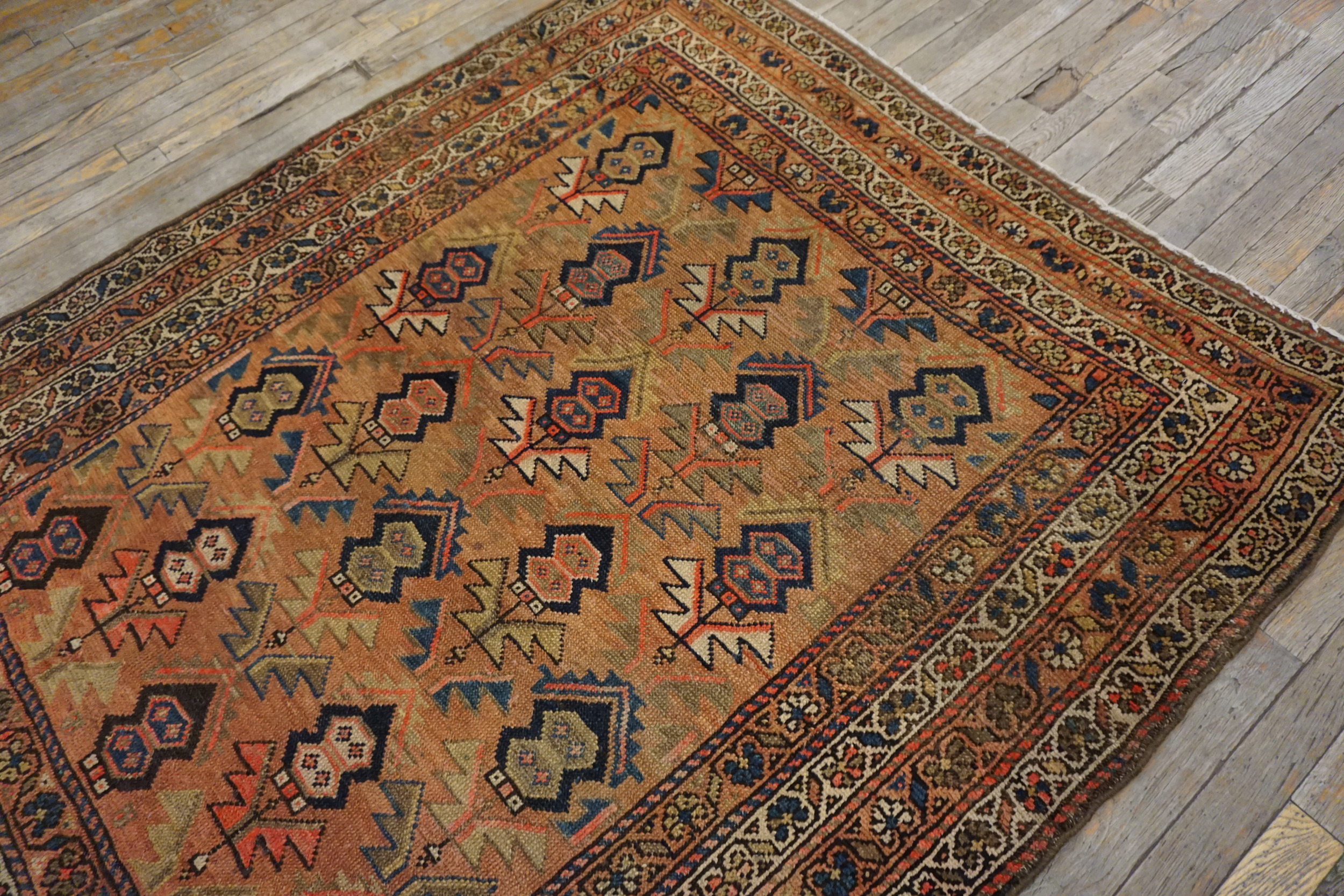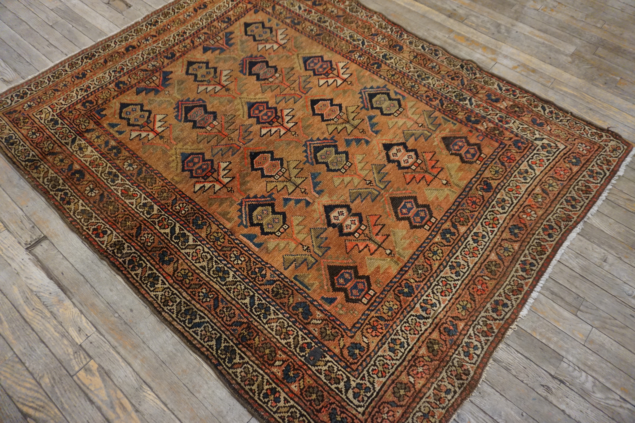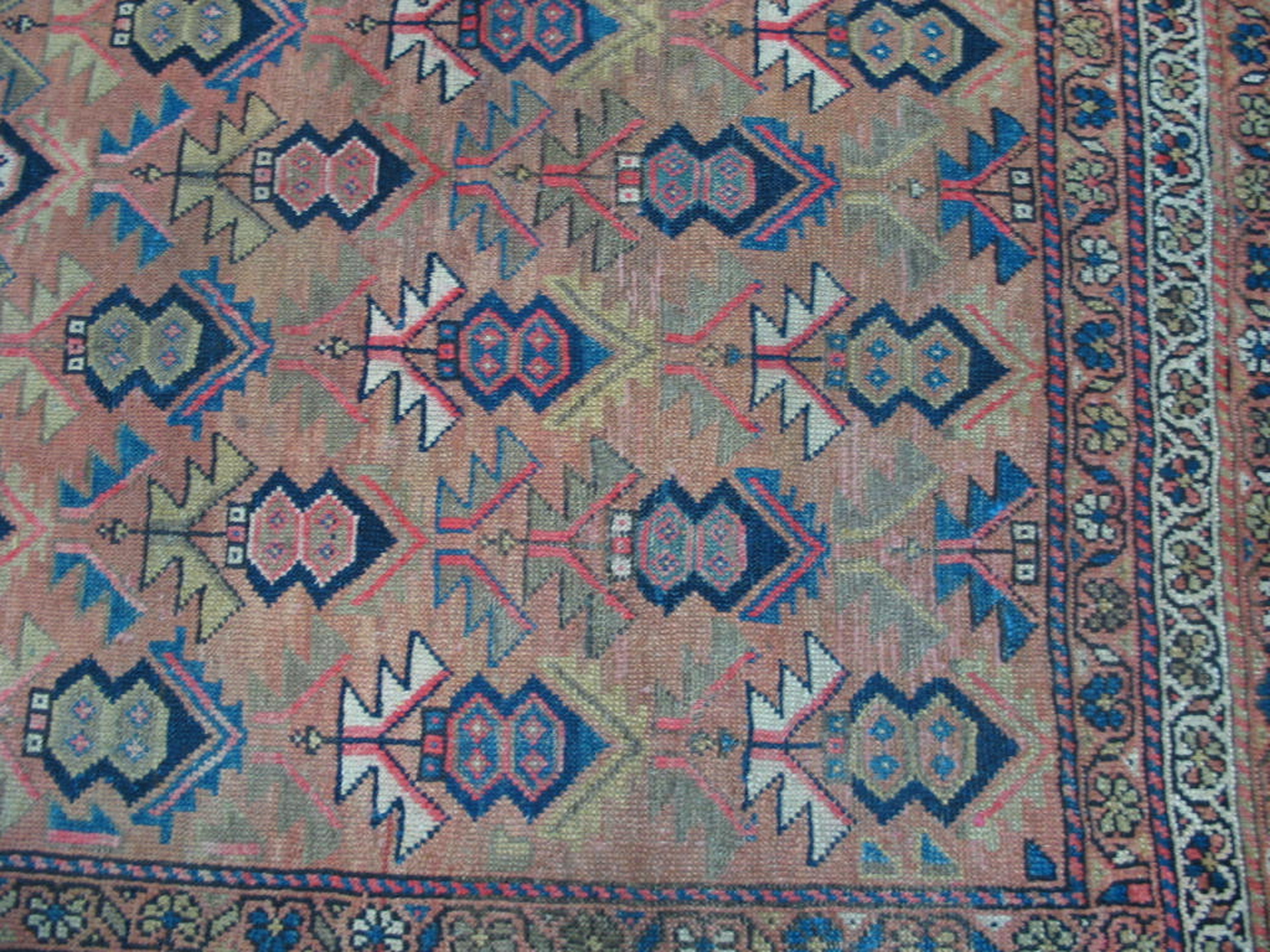 Antique Kurdish Small Scatter Size Wool Coral Rug, Circa Date: 1930s. This exquisite example of antique rugs showcases the robust, deeply saturated wool characteristic of nomadic Kurdish weaving traditions. The dense knotting and resilient structure confirm its enduring quality, typical of pieces woven in the mountainous regions of Persia.