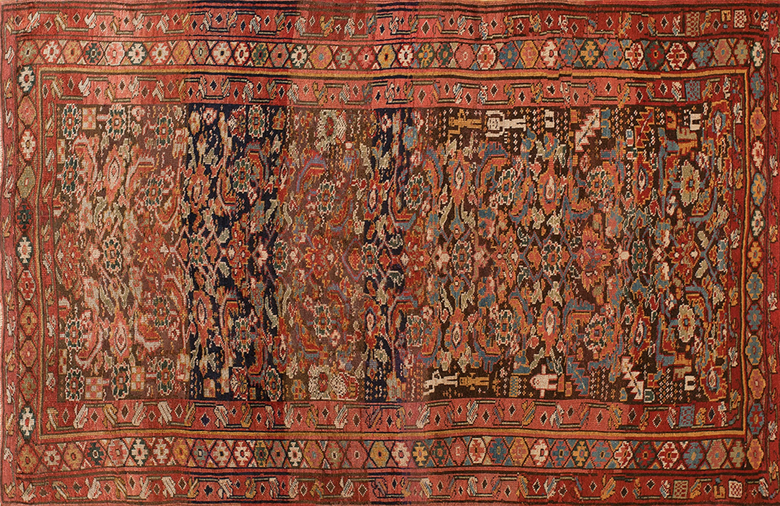Closer inspection reveals a highly personalized design vocabulary. Interspersed within the repeating medallions and stylized palmettes are small, charmingly rendered zoomorphic and anthropomorphic figures. These primitive, stylized people designs rugs are often hidden signatures of the weaver, imbuing the textile with profound cultural significance and narrative depth unique to tribal pieces.