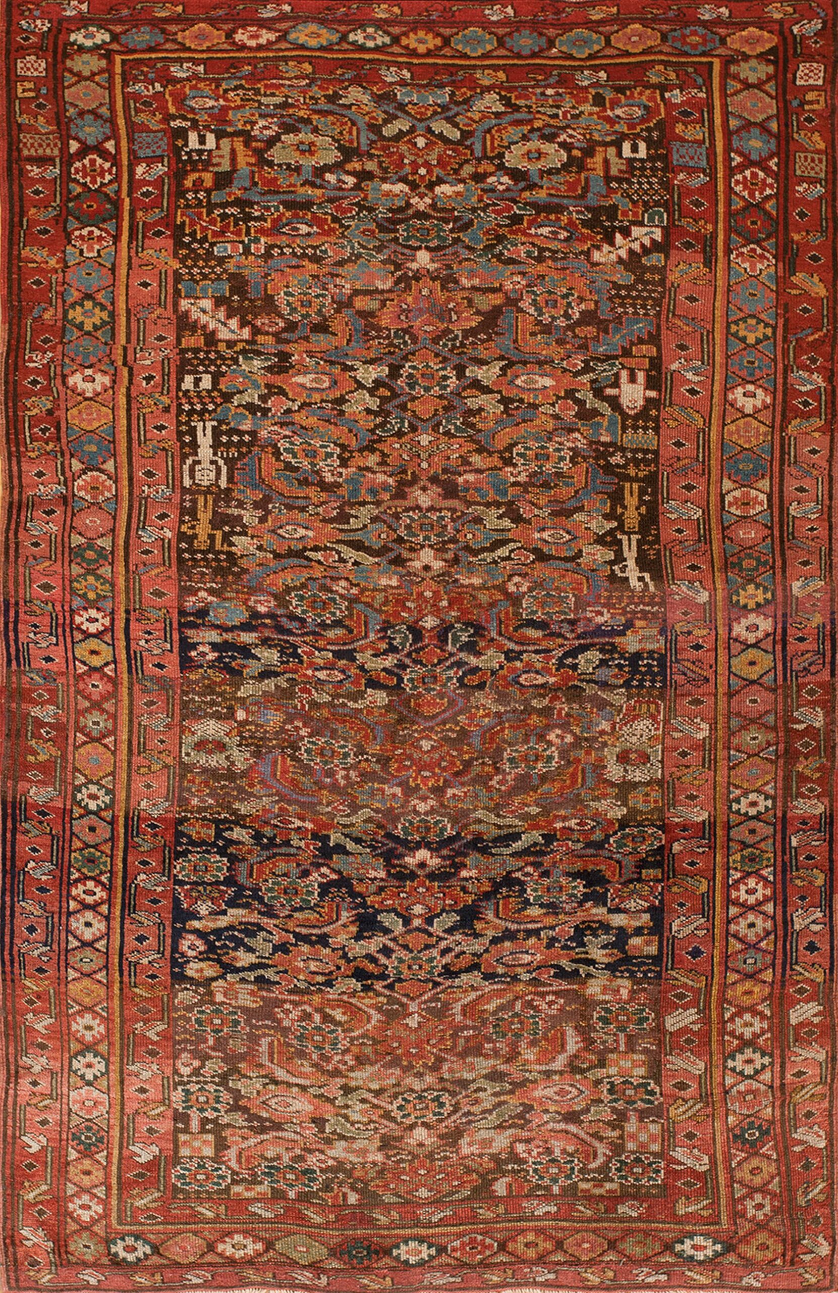 Antique Kurdish Carpet Wool Brown Rug, Circa Date: 1850s. This exceptional piece is a superb example of nomadic weaving from the mid-19th century, showcasing the raw, powerful aesthetic characteristic of antique rugs produced by Kurdish tribes. The dense, durable wool pile speaks to its utilitarian origins and enduring quality, having survived over 170 years in remarkable condition.