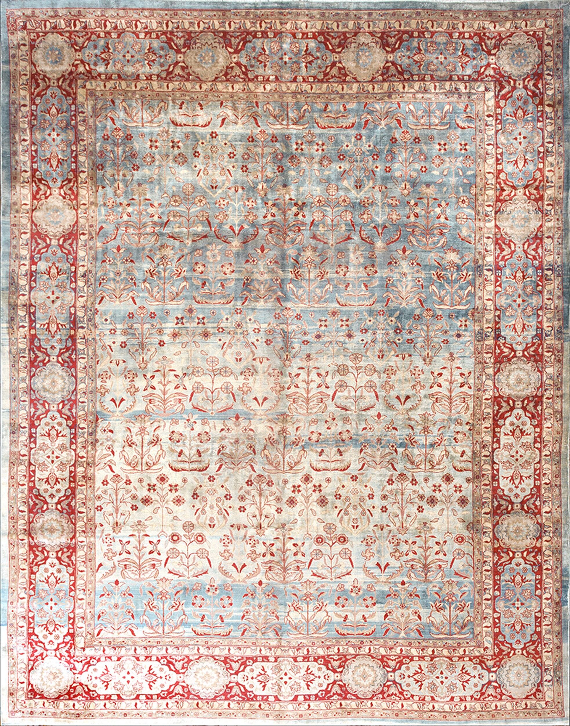 Antique Lahore Indian Knotted Rug, Circa Date: 1900s. This exceptional example of Indian weaving artistry represents the sophisticated revival of classical Mughal design that characterized the early 20th century. As one of our premier antique rugs, this piece showcases the meticulous craftsmanship and dedication to botanical complexity for which Lahore workshops were renowned.