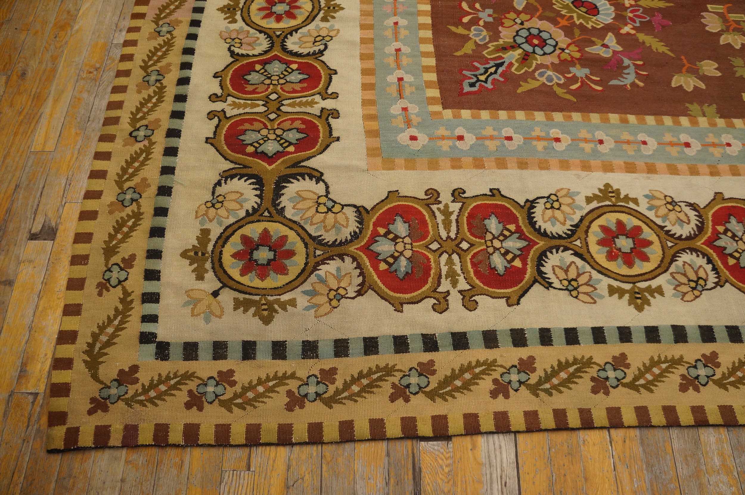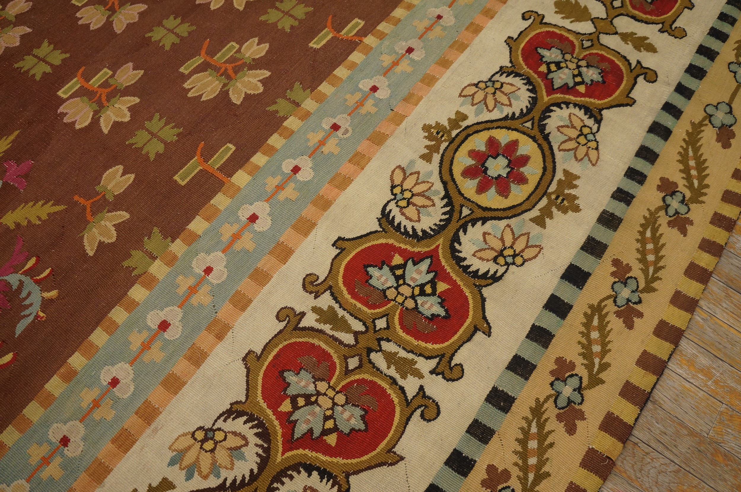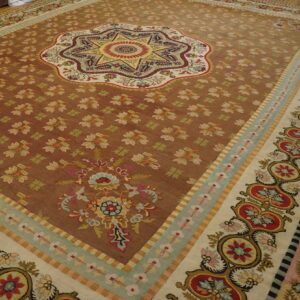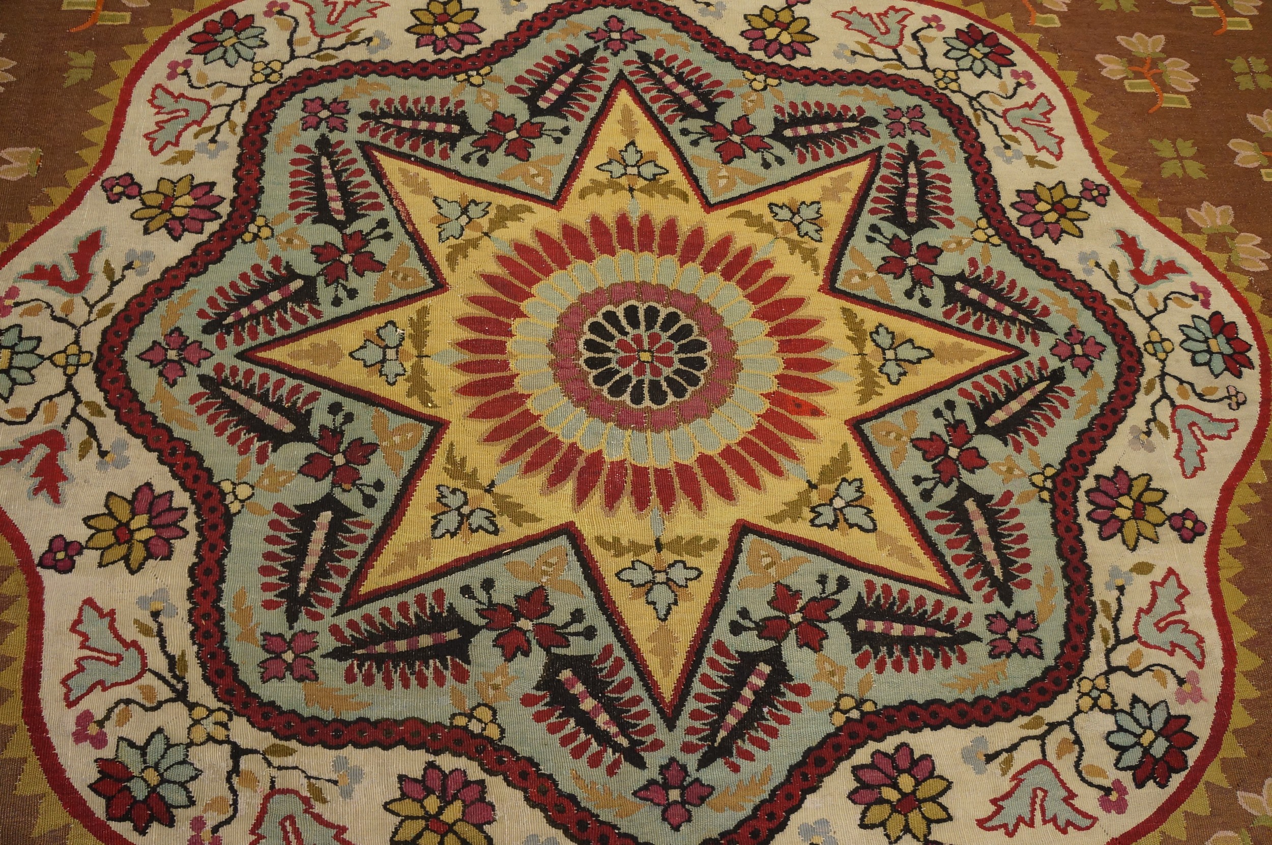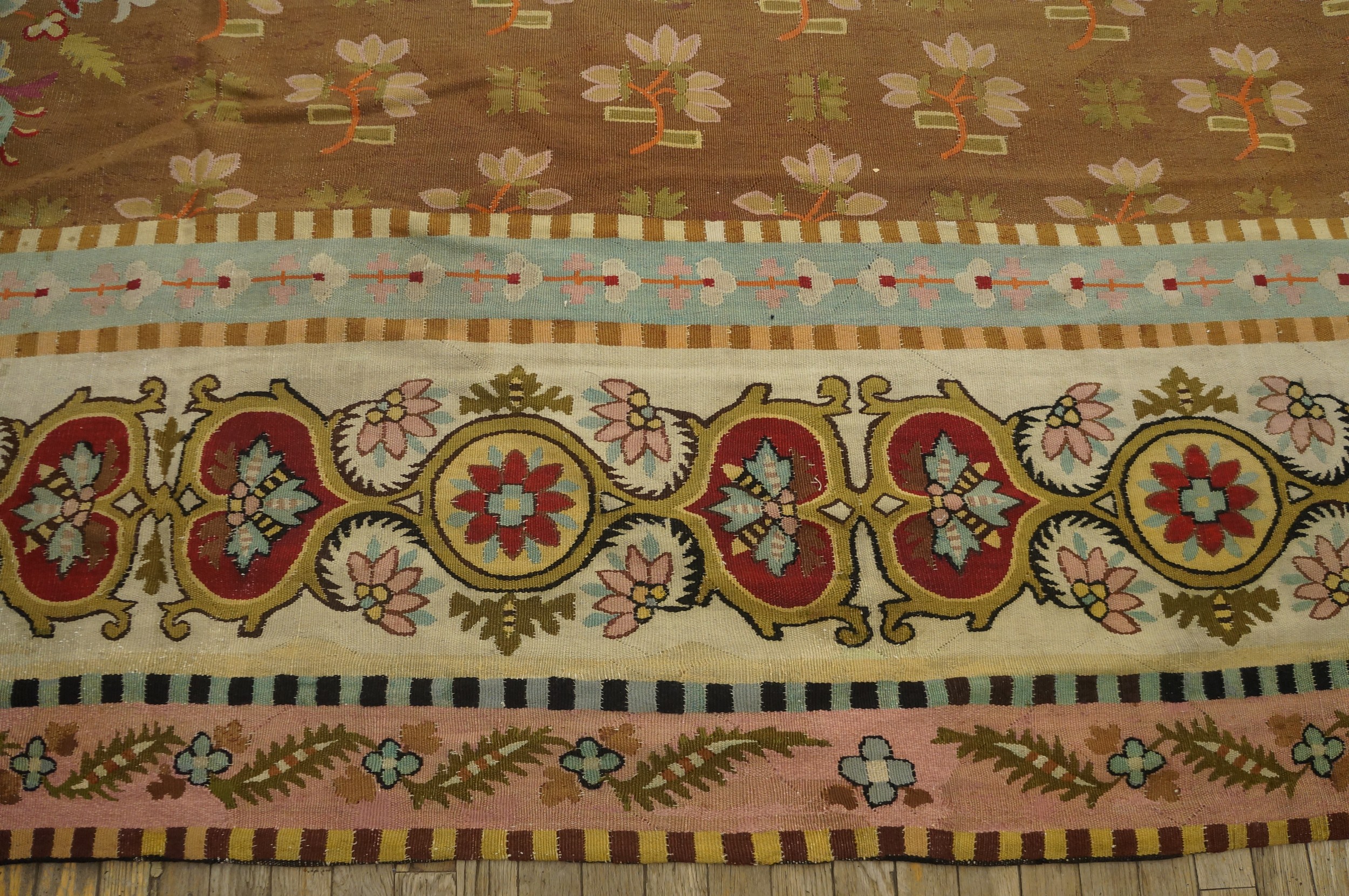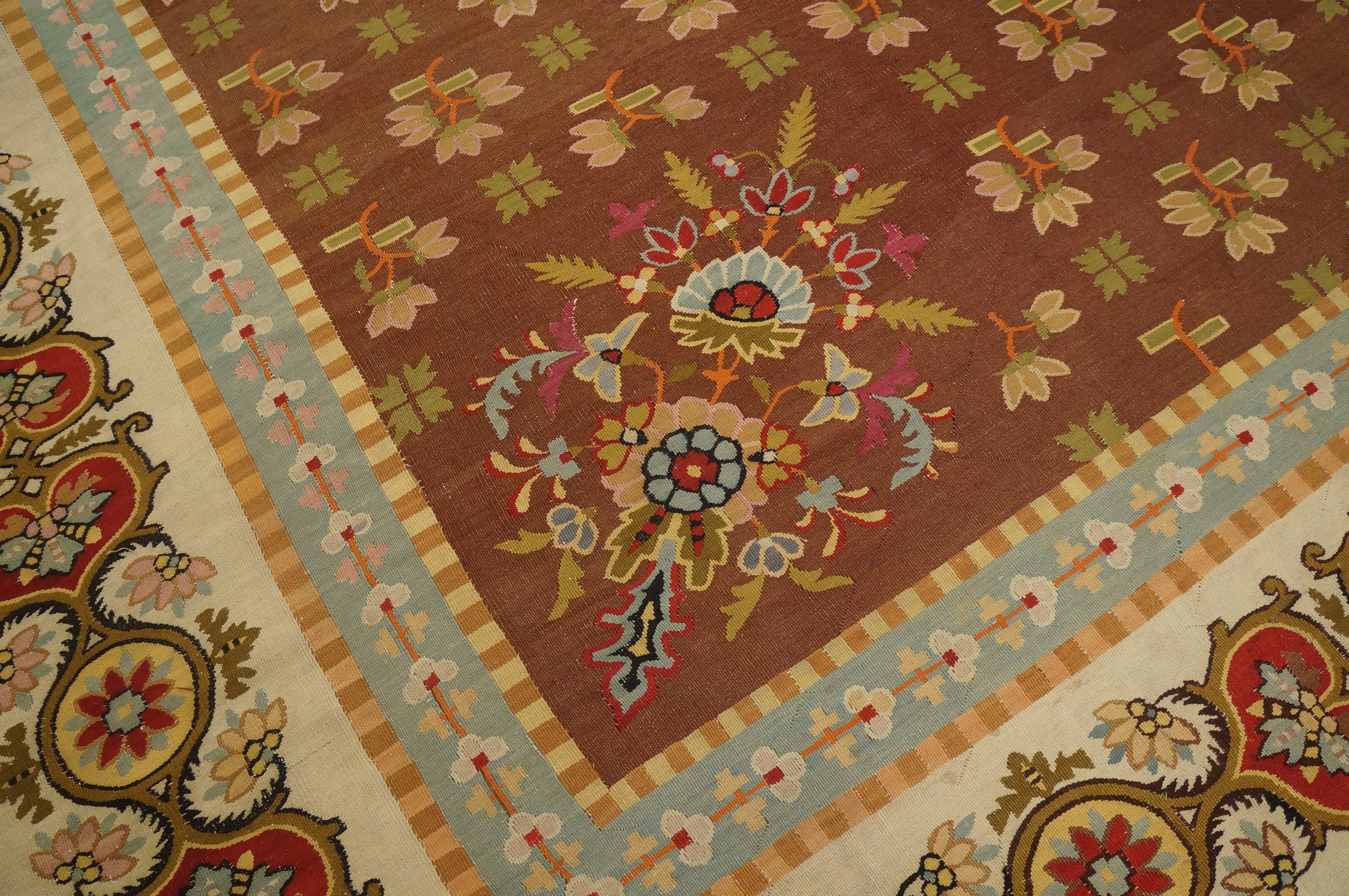 As a rare example of early 19th-century European weaving, this antique rugs piece offers both aesthetic beauty and historical significance. The flat-weave technique, characteristic of Aubusson production, ensures durability while maintaining the light, airy aesthetic favored by French designers following the Napoleonic era.