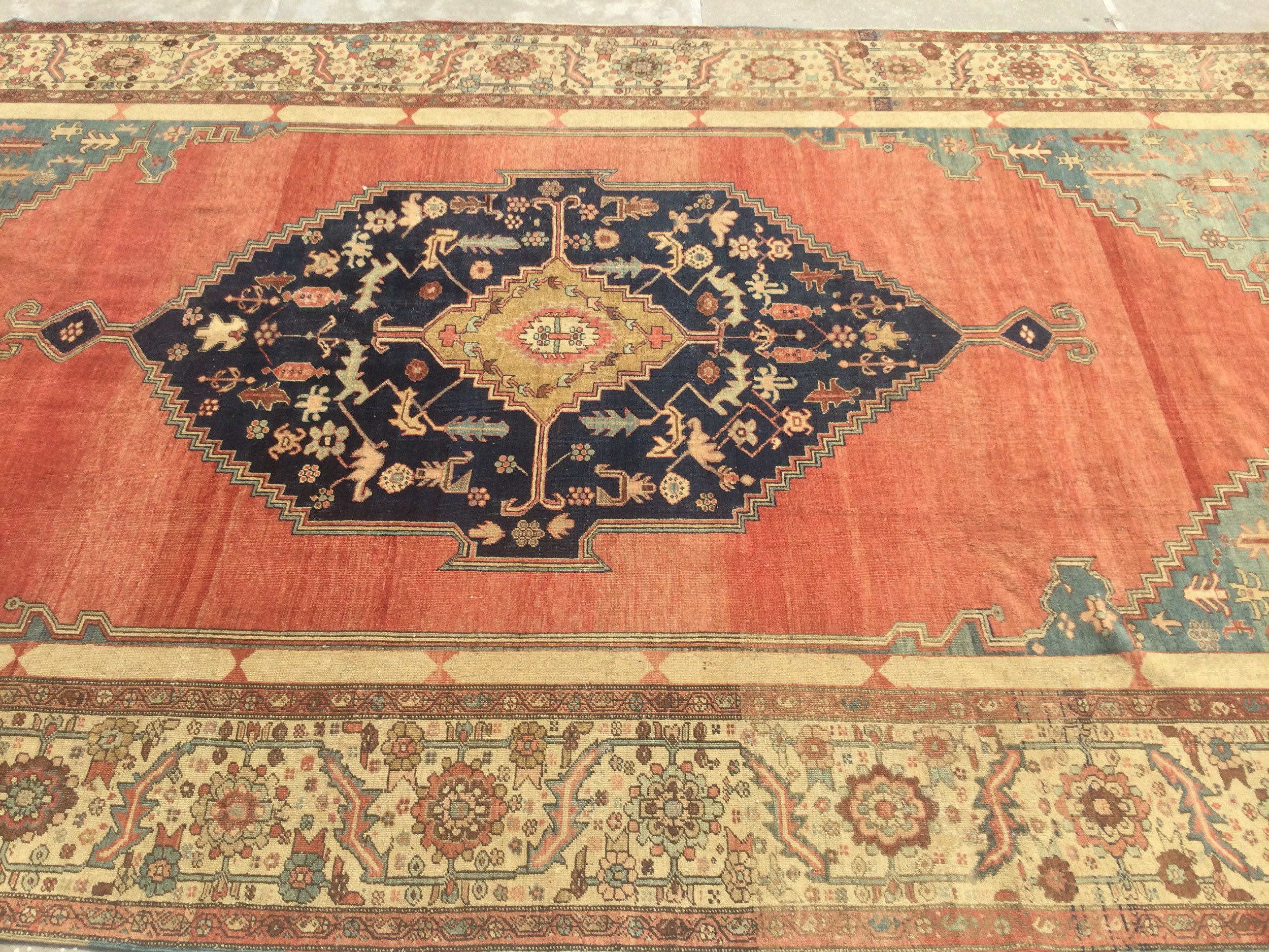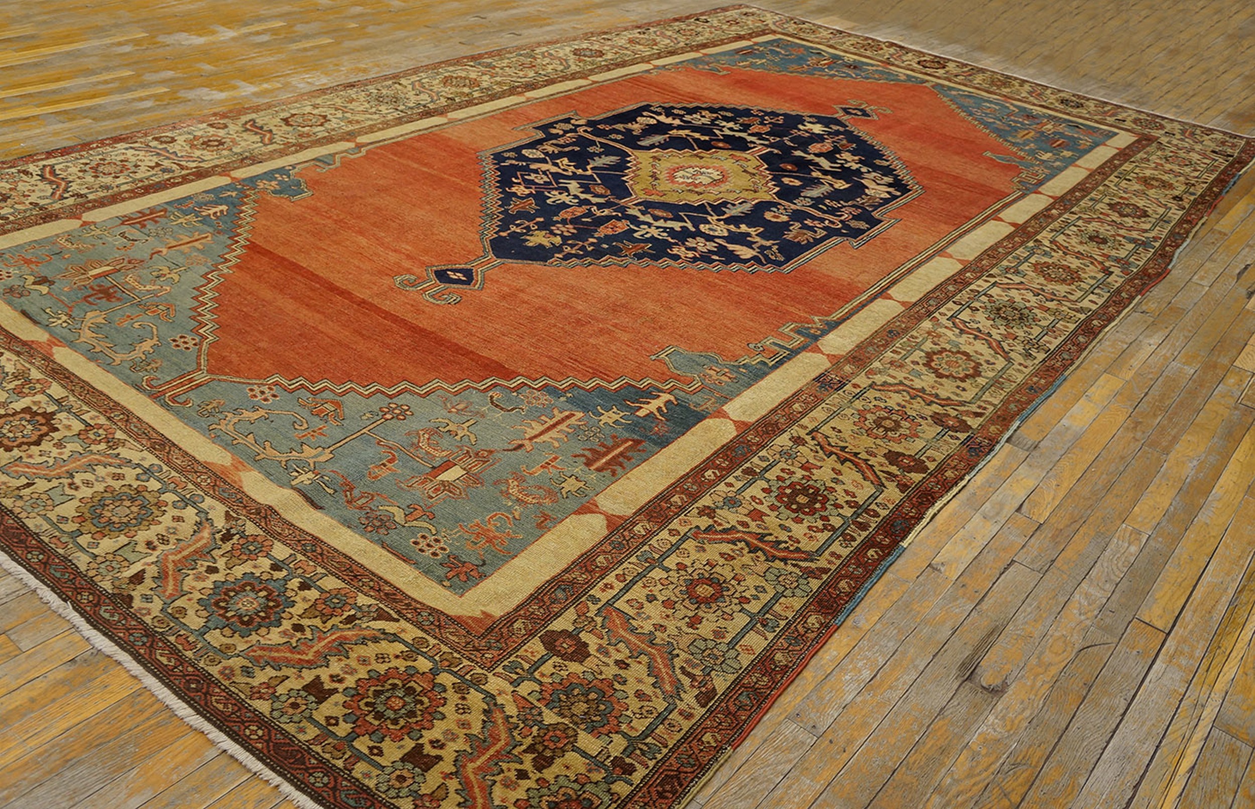 Antique Large Bakshaish Persian Medallion Knotted Rug, Country of Origin: Iran / Persia, Circa Date: 1870s. This exceptional example of weaving from the Heriz region represents the finest geometric and tribal interpretations found among 19th-century antique rugs. Its substantial scale and robust construction confirm its status as a foundational piece of textile history.