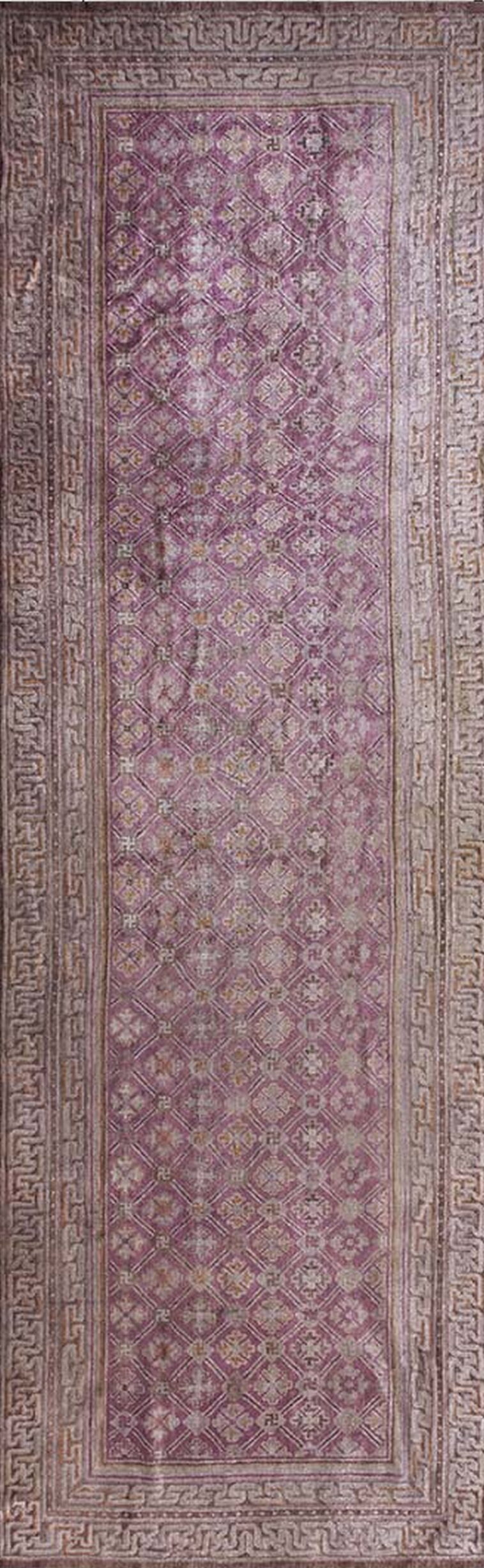 Antique Large Chinese – Baotou Knotted Rug, Circa Date: 1900s. This exceptional Chinese runner, originating from the Baotou region, showcases the refined aesthetic typical of early 20th-century weaving. It is a striking example of the enduring quality found in antique rugs from this period, characterized by its dense knotting and sophisticated use of traditional motifs.